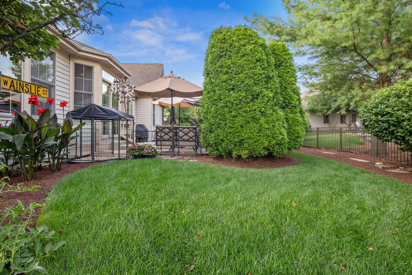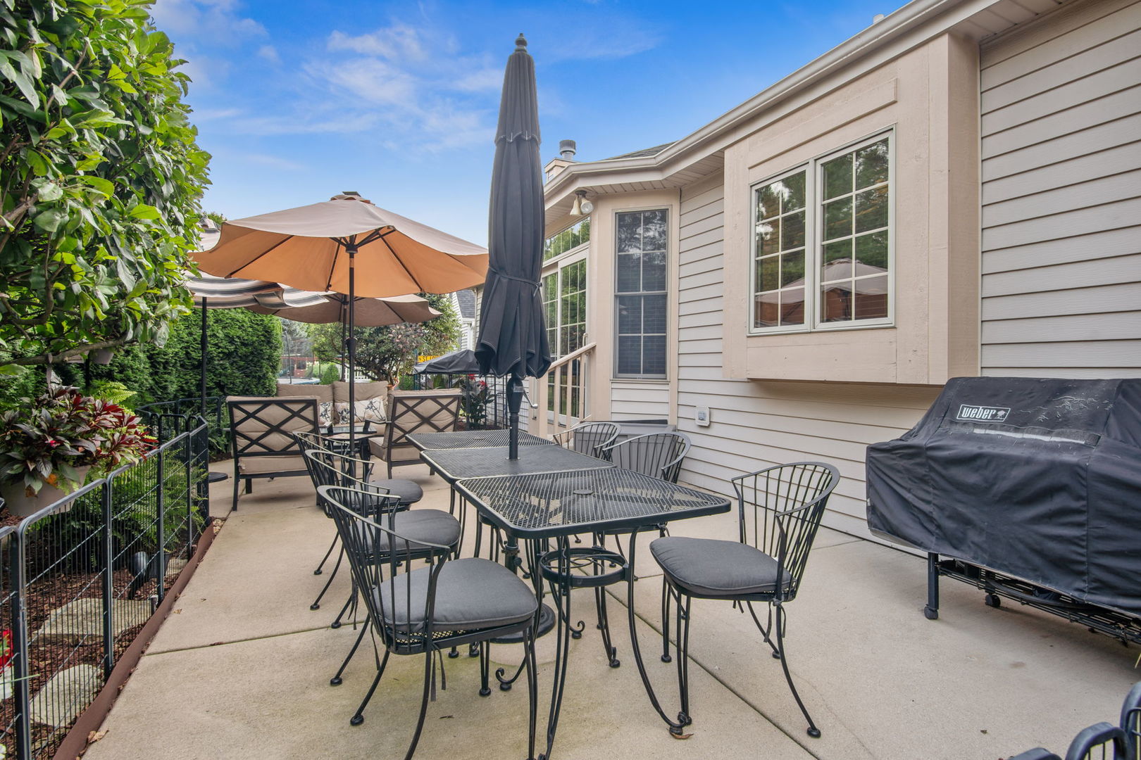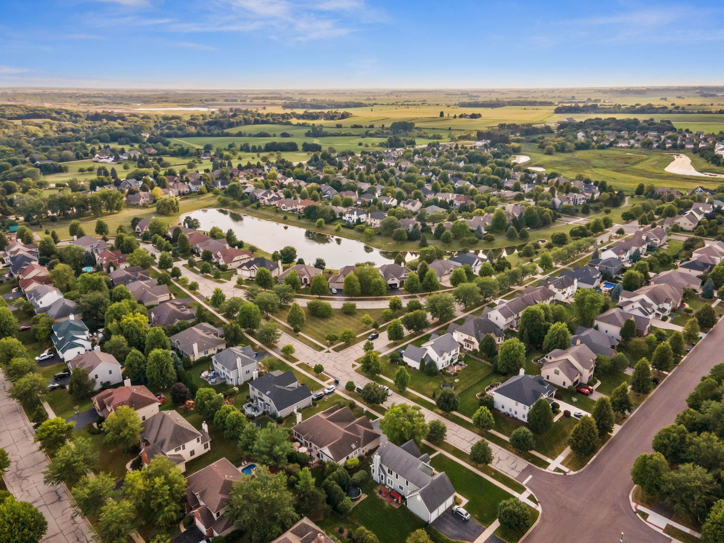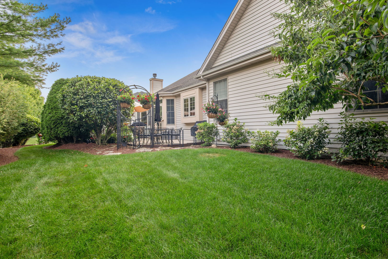 Welcome to this Bellefleur-built custom ranch in Elburn’s sought-after Blackberry Creek neighborhood. Set on a professionally landscaped and hardscaped lot, this home boasts fantastic curb appeal, a 3-car attached heated garage, and a backyard patio perfect for relaxing or entertaining. Inside, you’ll find hardwood flooring and volume ceilings throughout, plus a dedicated home office ideal for today’s remote lifestyle. The eat-in kitchen features an island with breakfast bar, granite countertops, stainless steel appliances, tile backsplash, and table space, opening to a cozy family room with a floor-to-ceiling stone gas-log fireplace flanked by custom bookcases. The formal dining room offers elegance and a niche for your hutch. Generous bedrooms include a spacious primary suite with a deluxe private bath featuring double vanities, a steam shower, and a skylight. Two walk in showers for ease of entrance. The full deep-pour basement provides endless potential, and with parks and a golf course just a short walk away-plus a new HVAC system in 2022-this move-in-ready home is the perfect blend of comfort, style, and convenience.