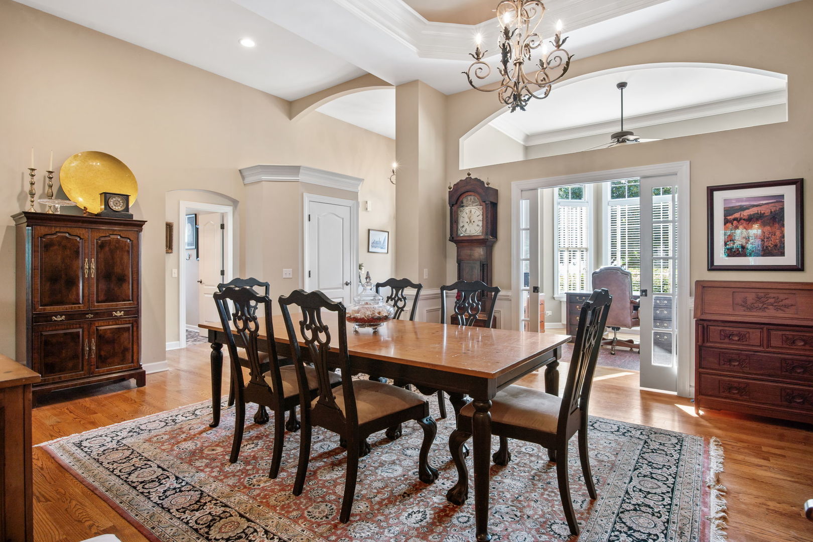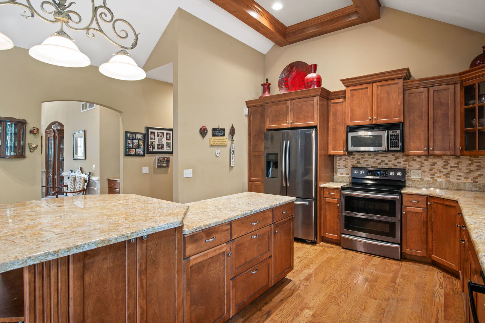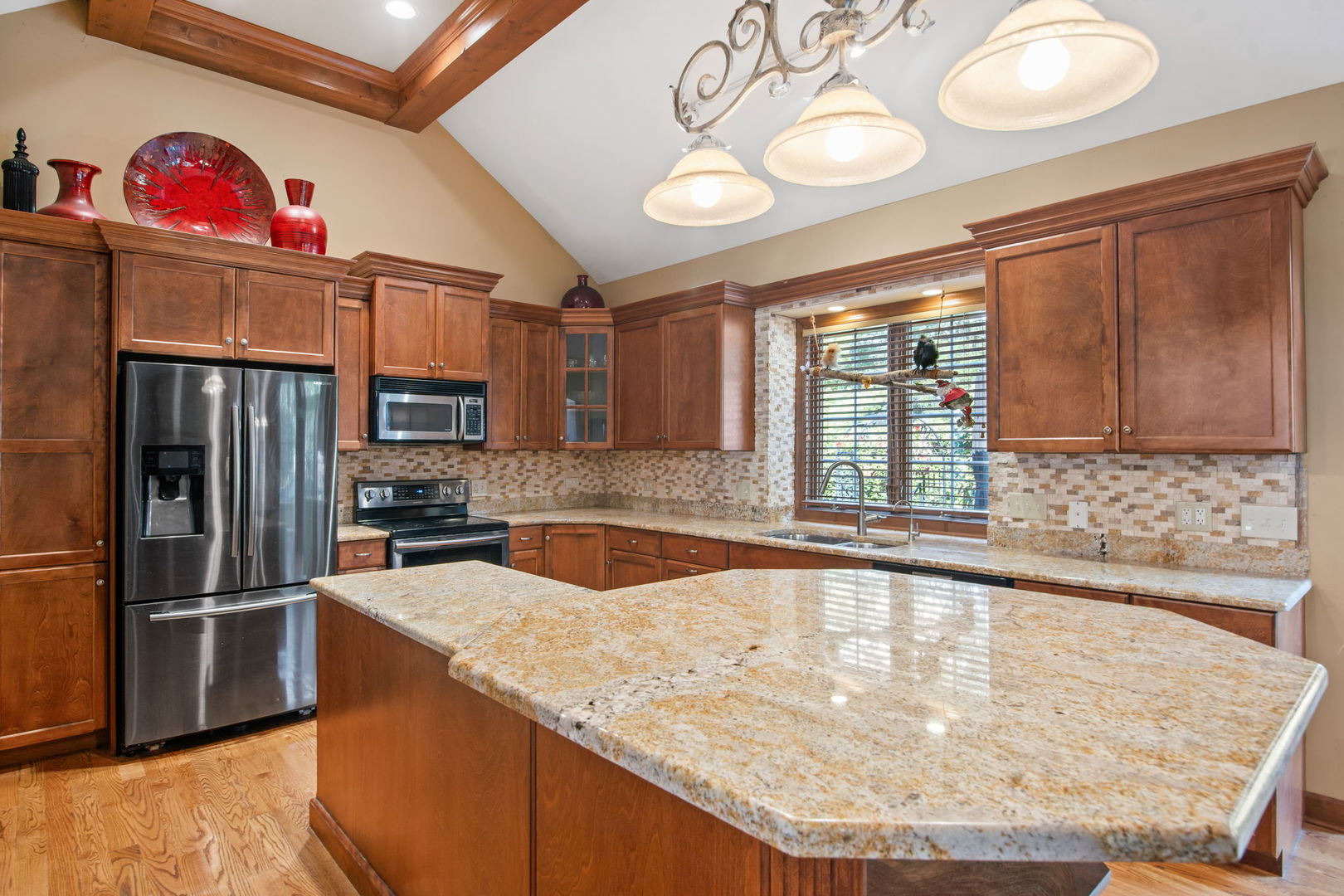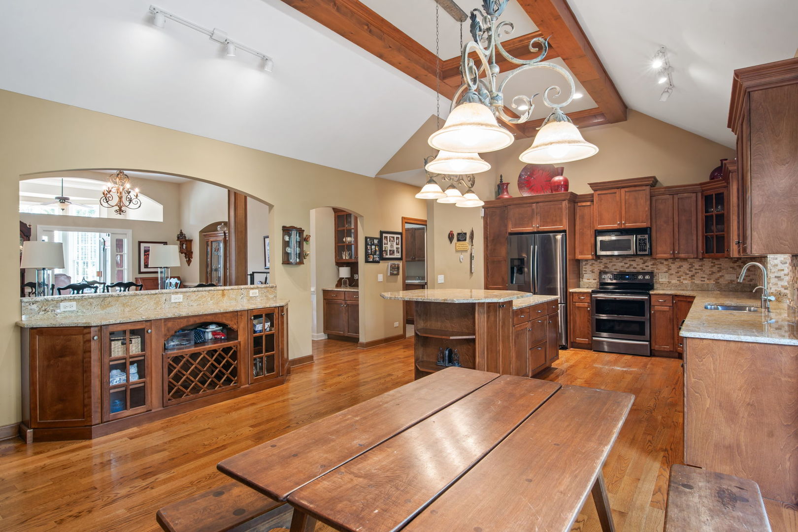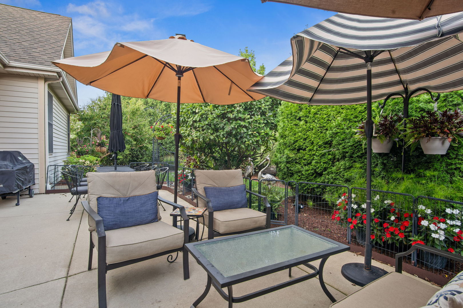 Welcome to this Bellefleur-built custom ranch in Elburn’s sought-after Blackberry Creek neighborhood. Set on a professionally landscaped and hardscaped lot, this home boasts fantastic curb appeal, a 3-car attached heated garage, and a backyard patio perfect for relaxing or entertaining. Inside, you’ll find hardwood flooring and volume ceilings throughout, plus a dedicated home office ideal for today’s remote lifestyle. The eat-in kitchen features an island with breakfast bar, granite countertops, stainless steel appliances, tile backsplash, and table space, opening to a cozy family room with a floor-to-ceiling stone gas-log fireplace flanked by custom bookcases. The formal dining room offers elegance and a niche for your hutch. Generous bedrooms include a spacious primary suite with a deluxe private bath featuring double vanities, a steam shower, and a skylight. Two walk in showers for ease of entrance. The full deep-pour basement provides endless potential, and with parks and a golf course just a short walk away-plus a new HVAC system in 2022-this move-in-ready home is the perfect blend of comfort, style, and convenience.