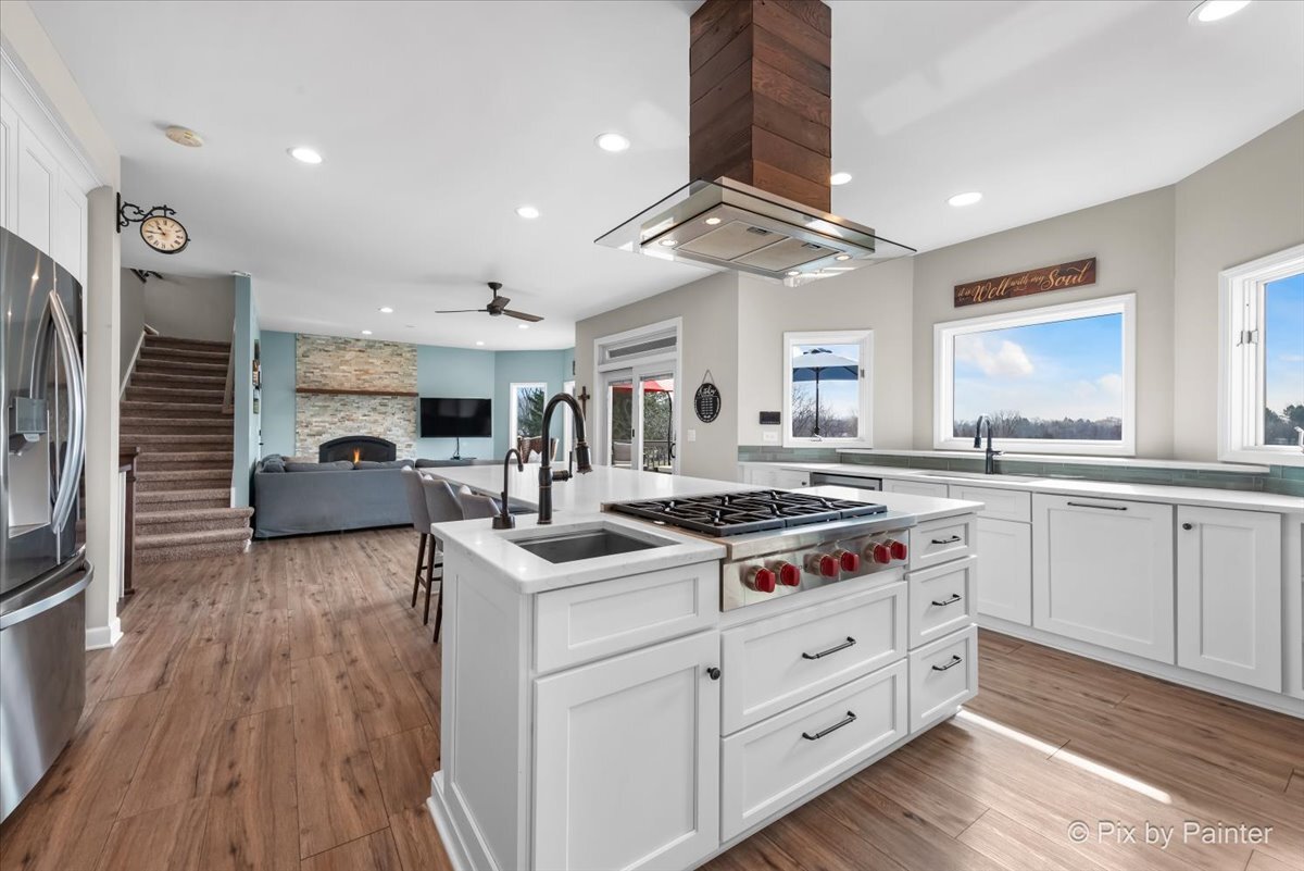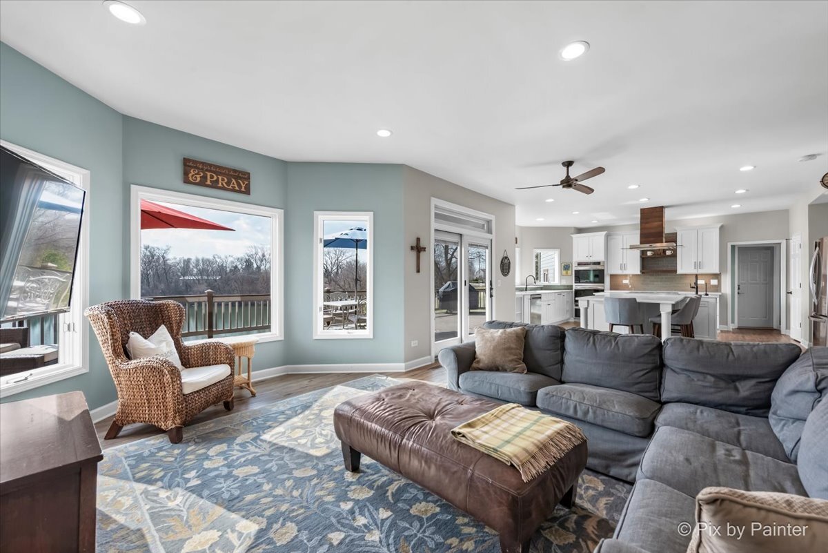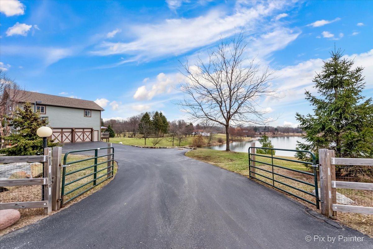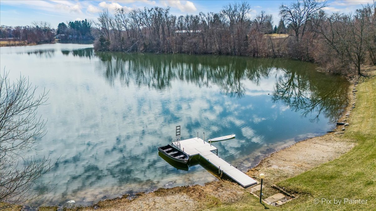 You’ll fall in love with this spectacular private 22 acre (20 feet deep) lake location! If you love the outdoors this is the home for you: fishing in the stocked lake, paddle boarding, swimming, sledding and ice skating. Small motor watercraft are permitted along with kayaking and canoeing. Every room is gorgeous including the 2021 remodeled first floor with gourmet kitchen, WOLF range and double oven, dining room with coffee bar, and first floor den. Second floor remodels 2016 & 2018 with large laundry room, walk in closet with safe, expanded bedrooms and remodeled hall bathroom. TWO kitchens and TWO fireplaces, huge deck and patio open to the rolling lawn down to the lake with your private pier. The basement also includes heated floors, a wine cellar, safe room, bedroom with full bath and access to the lower garage with home gym. Geothermal HVAC system, garage heating equipment on-site too. This property is home to your own apple orchard, walnut trees, mulberry trees, with a 1940’2 two-horse barn to store your gardening tools. The current owner has hosted weddings, family football, barbeques and more, making this a one-of-a-kind dream home! Imagine living with all of this just 4.8 miles from I-90!