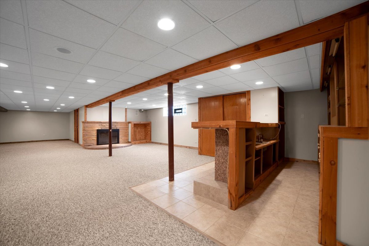 Welcome to this stunning custom 2164 sq.ft. gem ranch on impressive large corner lot. Massive porch, new sidewalks and lush flowerbeds is the perfect welcome to this amazing home. Open spacious living/dine area is bathed in natural light w/three 9-ft. windows and features custom rich brown wood shutters matching the hardwood floors. A natural stone wood-burning updated fireplace w/Italy porcelain tile hearth ties these rooms together beautifully. Three spacious bedrooms have natural oak hardwood floors; two feature newer windows. The huge stylish galley kitchen includes a black granite dual sink, sleek black appliances, ample cabinets and built-in-desk. The kitchen/dine windows view the expansive fenced yard w/large wood deck and storage shed. A flexible room off the kitchen offers a potential 4th bedroom/family room/office. The finished basement w/Berber carpet offers a potential 5th bedroom attached to a full bath w/’Jacuzzi’ jet-tub/shower. Also featured is a wet bar, 2nd stone fireplace w/copper slate hearth, two dual sliding closets, cedar closet, large laundry and storage/office area, NEW forced air handler/humidifier/Rheem air cond., boiler heats all bath floors and basement floor, 2 sump pumps, attic stairs provides floor storage above garage, property accommodates 12 vehicles!