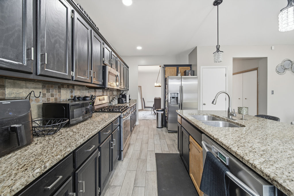 • Appliances: Range,Microwave,Dishwasher,Refrigerator,Washer,Dryer,Stainless Steel Appliance(s)