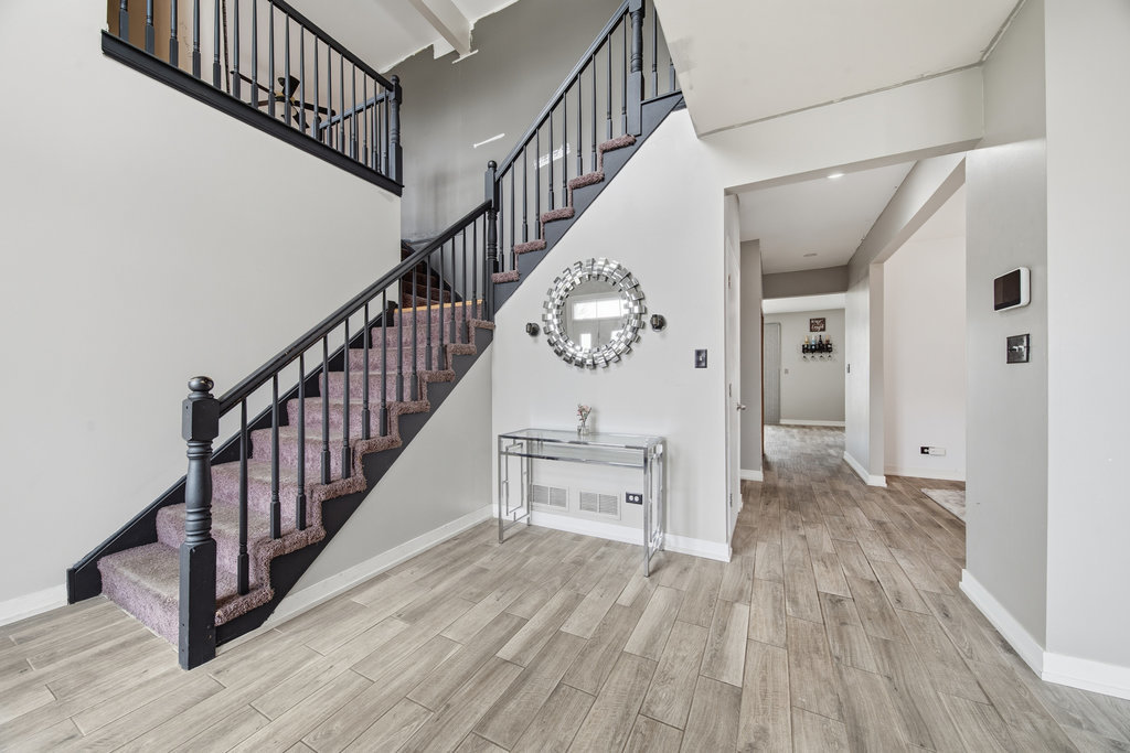 Welcome home to this beautiful two-story brick residence offering 4 bedrooms, 2.5 baths, and an abundance of space inside and out. Situated on a corner, level lot with a fenced-in backyard, this home also features a 2-car garage and solar panels for added energy efficiency. Step inside to a bright two-story foyer and an inviting main level showcasing ceramic tile flooring and recessed lighting throughout the main living areas. The layout includes a separate dining room plus an additional breakfast area just off the kitchen-perfect for everyday meals. The well-appointed kitchen boasts black oak cabinets, granite countertops, stainless steel appliances, and a kitchen island overlooking the family room, making entertaining a breeze. Upstairs, the spacious primary suite is a true retreat, featuring its own fireplace and access to a loft ideal for an office, lounge, or flex space. The primary bath includes a double sink vanity, separate garden tub, and shower. Three additional bedrooms and another full bath complete the upper level, offering plenty of room for family or guests. With its thoughtful layout, modern amenities, and charming curb appeal, this home is ready for its next owner. Don’t miss your chance to make it yours!