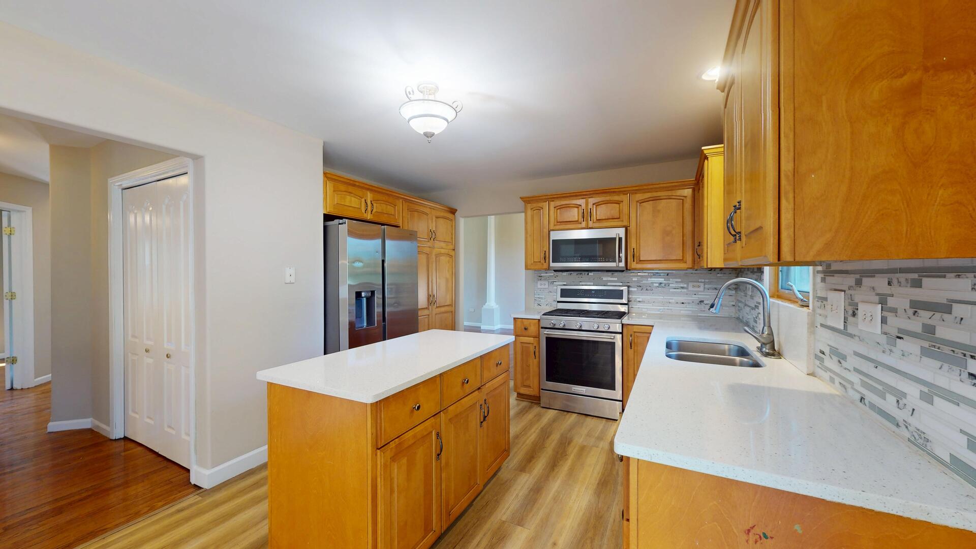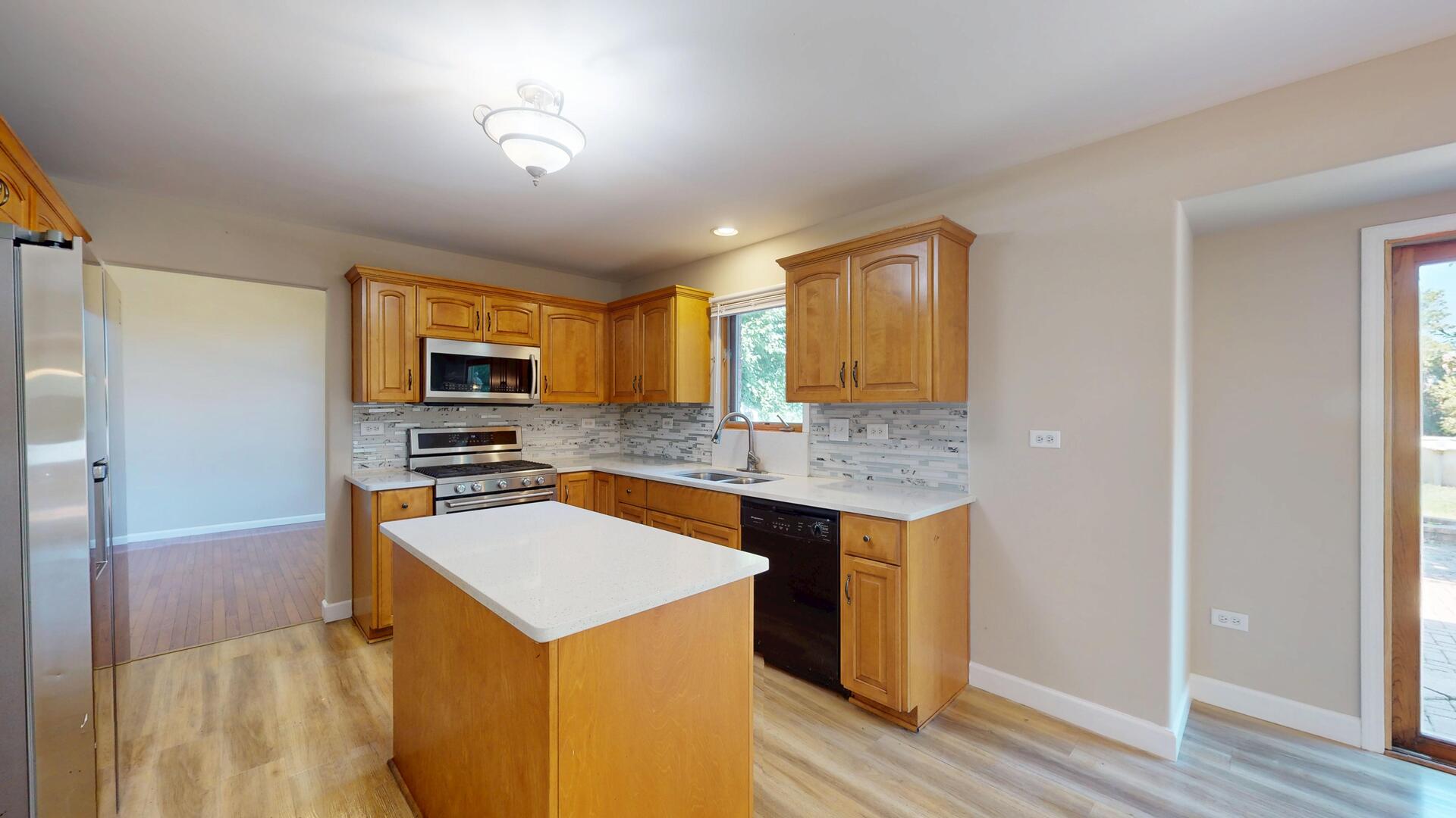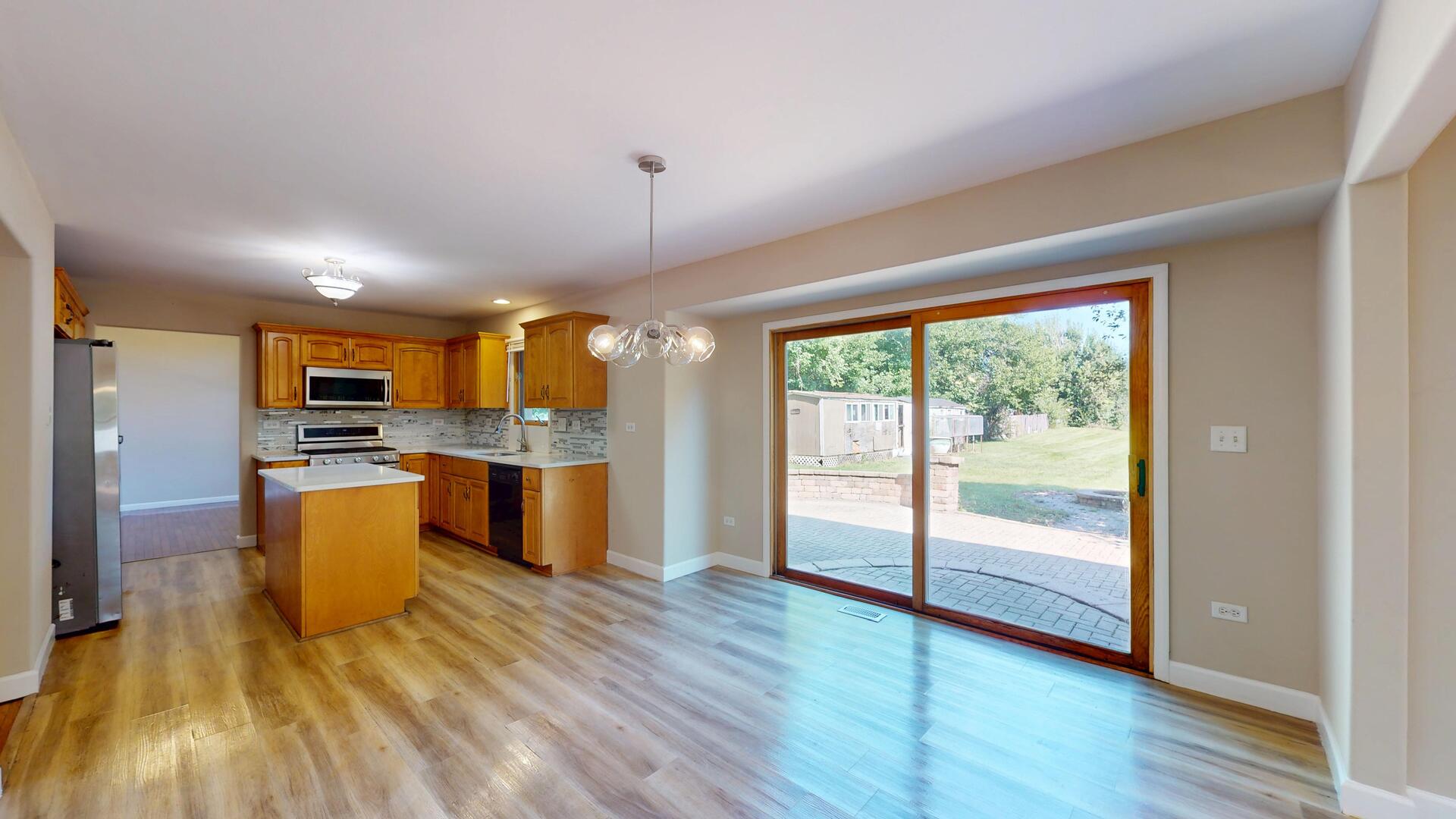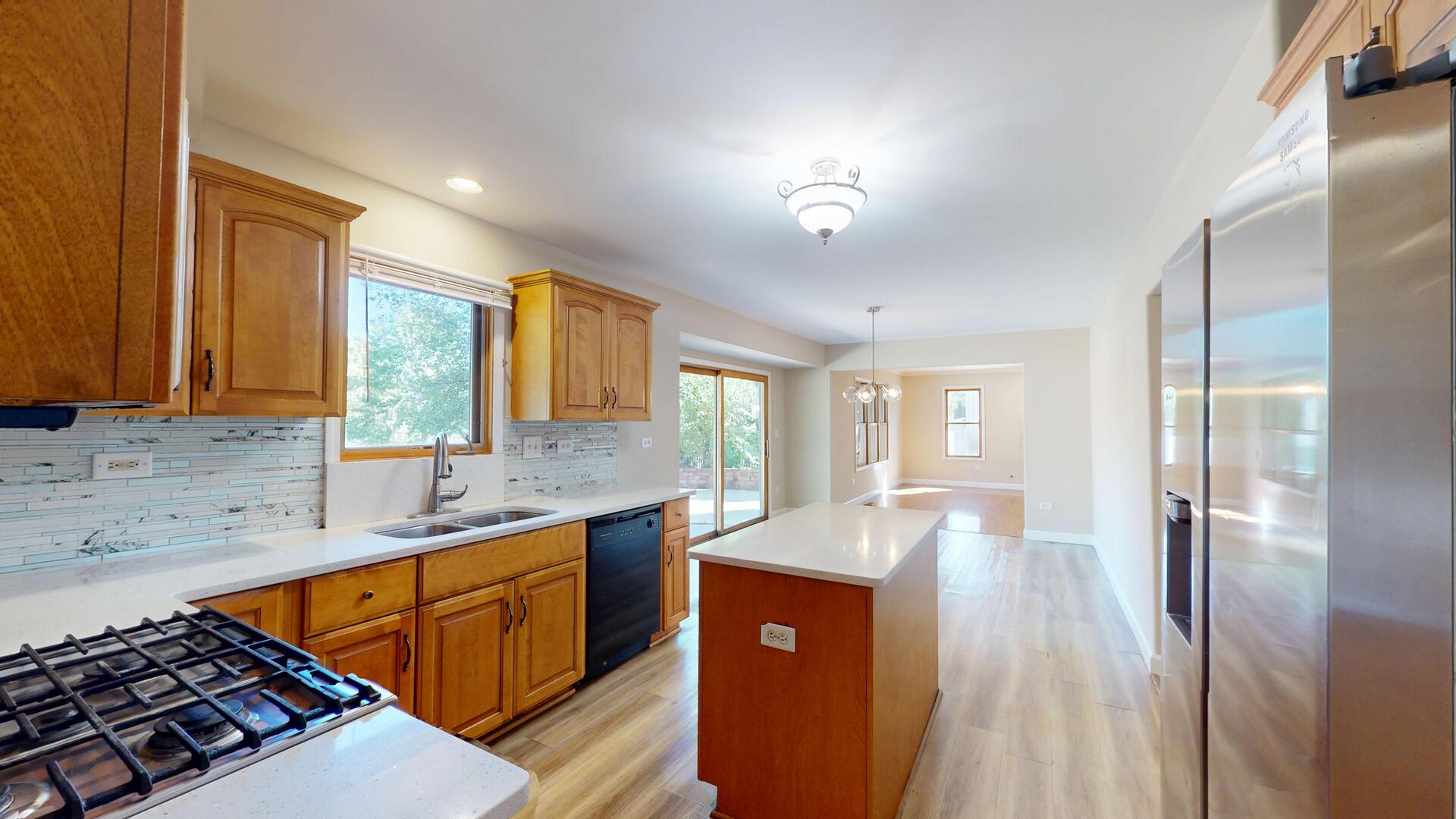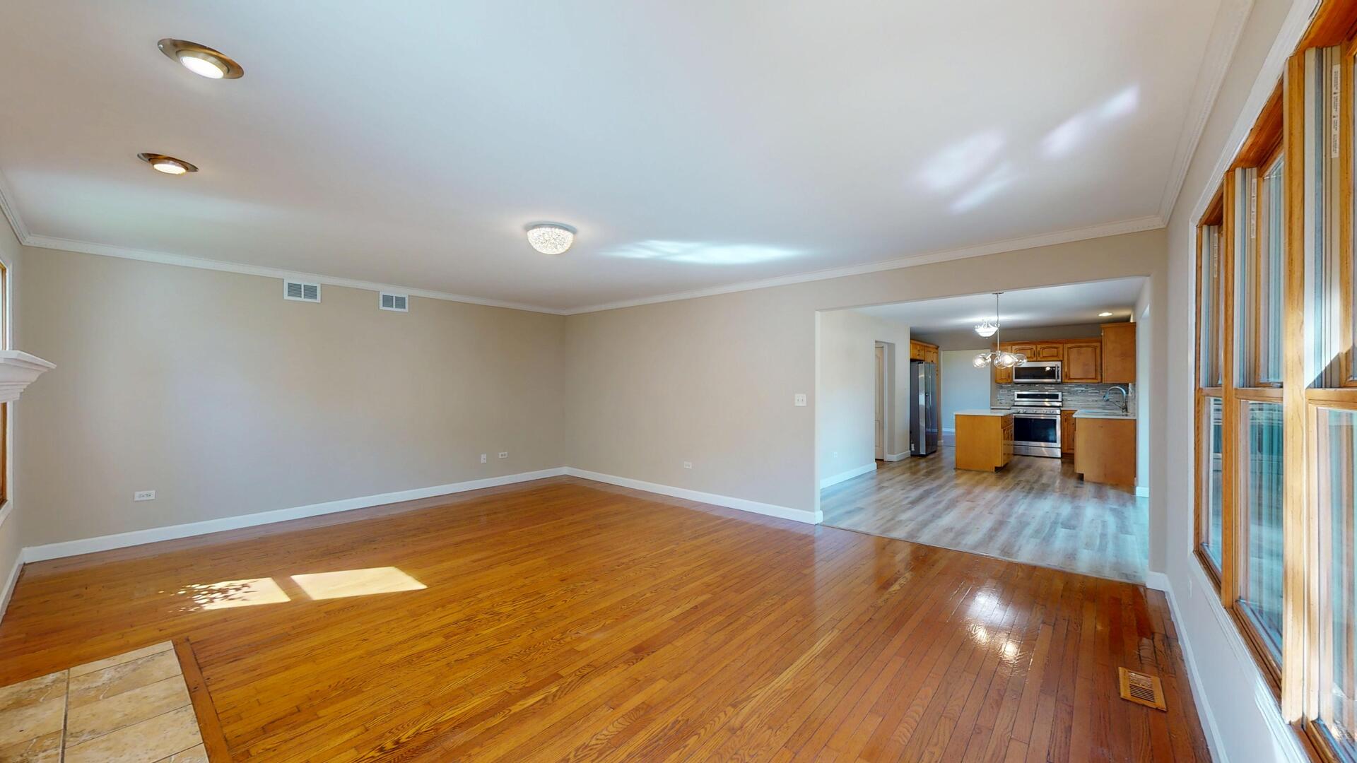 This Joliet stunner truly has it all: space, style, and updates galore, with over 4,000 sq. ft. of finished living space across 5 bedrooms, 3.1 bathrooms, first floor office, and a full finished basement. From the moment you arrive, the curb appeal shines with a welcoming covered porch, sparkling new light fixture, and refreshed concrete steps. Step inside to the two-story foyer with vaulted ceilings and a dazzling new chandelier. The front living room features gleaming hardwood floors, soaring ceilings, and oversized windows that fill the home with natural light. Just beyond, the formal dining room makes a statement with elegant pillars and a modern light fixture. The updated kitchen is a dream, complete with granite countertops, a large island, pantry, and sunny breakfast area with a stylish fixture and sliding glass doors leading to the backyard. Gather in the cozy family room, where a gas-start, wood-burning fireplace anchors the space, complemented by crisp hardwood floors. Comfortably work from home in the main level office with excellent natural light and French doors. The main level also includes a half bath, mudroom with laundry hookup, and access to the refreshed 2-car garage featuring epoxy floors. Upstairs, retreat to the extra-large primary suite with tray ceilings, a walk-in closet, and a spa-like bathroom offering a soaker tub, separate shower, double sinks, and a private water closet. Three additional spacious bedrooms share a full hall bath with double sinks. The finished basement is the ultimate bonus space, perfect for an in-law arrangement or extended living, with a 5th bedroom, huge recreation area, storage closet with shelving, under-the-stairs storage, full bathroom with stand-up shower, and even a second kitchen (ready to be finished to your liking!). A second laundry room with cabinetry and countertops makes chores a breeze. Outside, the backyard is built for entertaining and everyday fun, offering over half an acre of fenced space, a massive paver patio, peach & cherry trees, and plenty of room for hobbies, pets, or play. All this in a spectacular location, just steps from Pershing Elementary, down the street from Joliet West High School, and minutes to Jewel Osco, St. Joseph Hospital, Rt. 52, and major shopping. BRAND NEW ROOF 2025, Hot water heater 2024, 1305 Campbell is the whole package, move-in ready, updated, and spacious enough for every lifestyle. Don’t miss it!