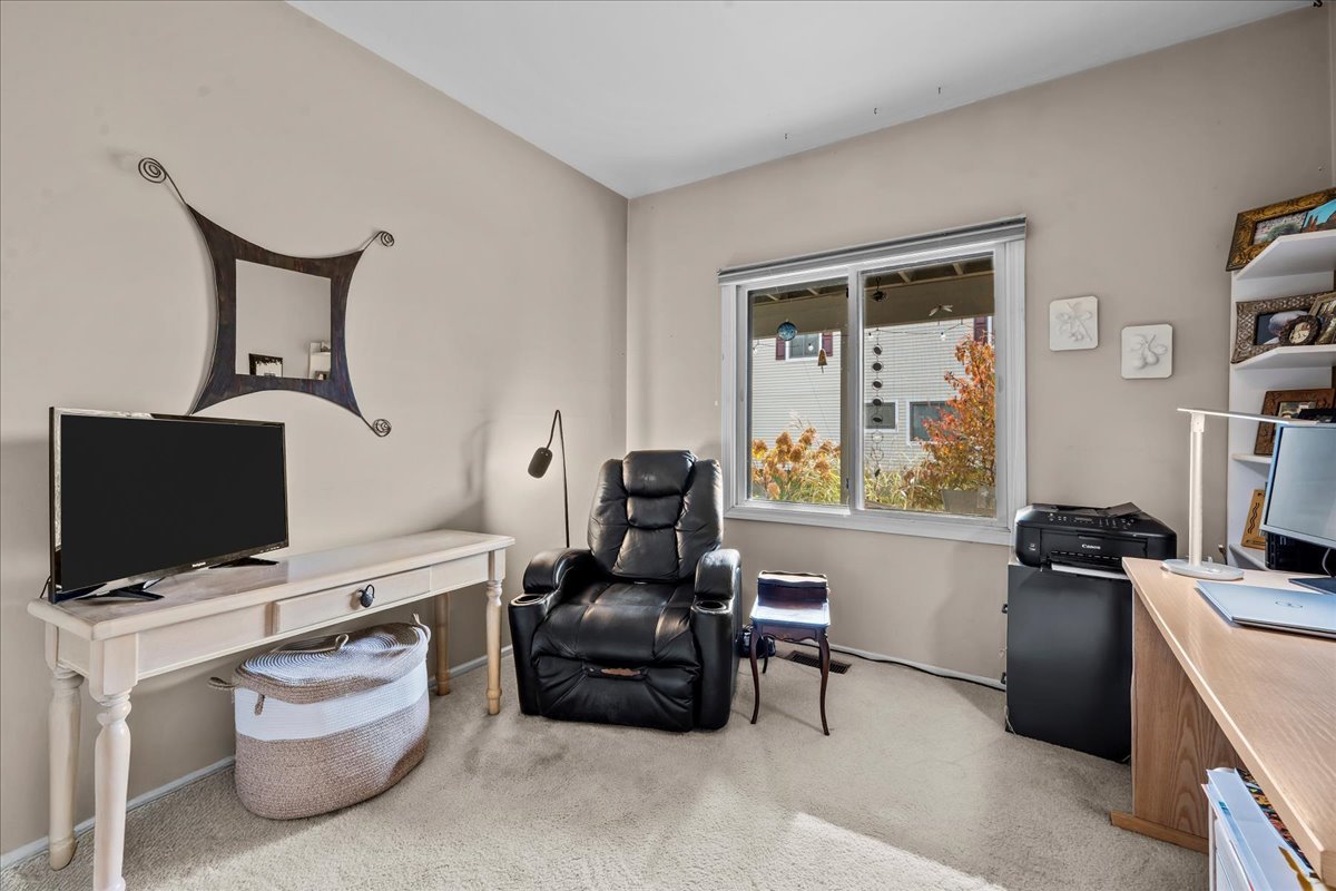 Ground level ranch style living in the most sought after model in Hidden Lake Village. Wonderful 2 bedroom, 2 full bathrooms with attached garage! Enjoy the private courtyard entry with beautiful perennials, or the direct entrance to your unit from the attached one car garage! Walk in to an expansive, light bright living room and combination dining room; a great entertaining space replete with a custom built bar that adds extra serving space, work space and storage that guests and family will enjoy. Sliding glass doors from the living room open to a private newer patio space that has ample room for patio furniture and is a great way to enjoy the three outdoor seasons. The kitchen overlooks the private front courtyard and offers a laundry and utility room between it and the garage entrance. A large primary bedroom has two banks of closets and a private bath with double sinks. The second bedroom, currently used as an office, is across the hall from the second full bathroom! This unit should not be missed!