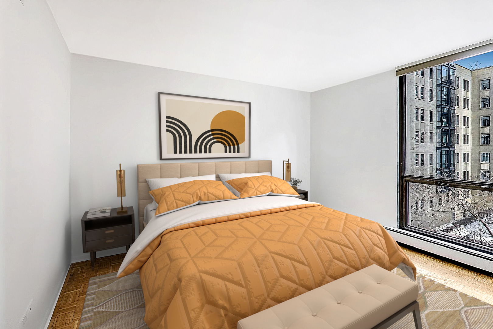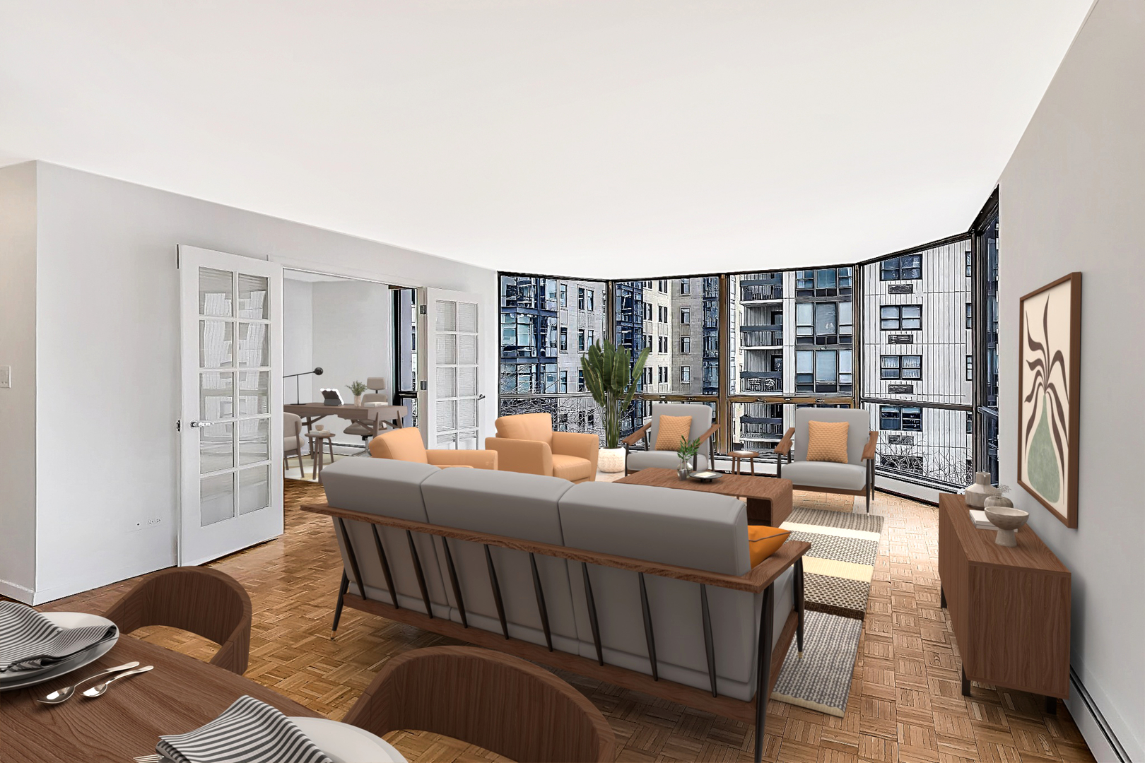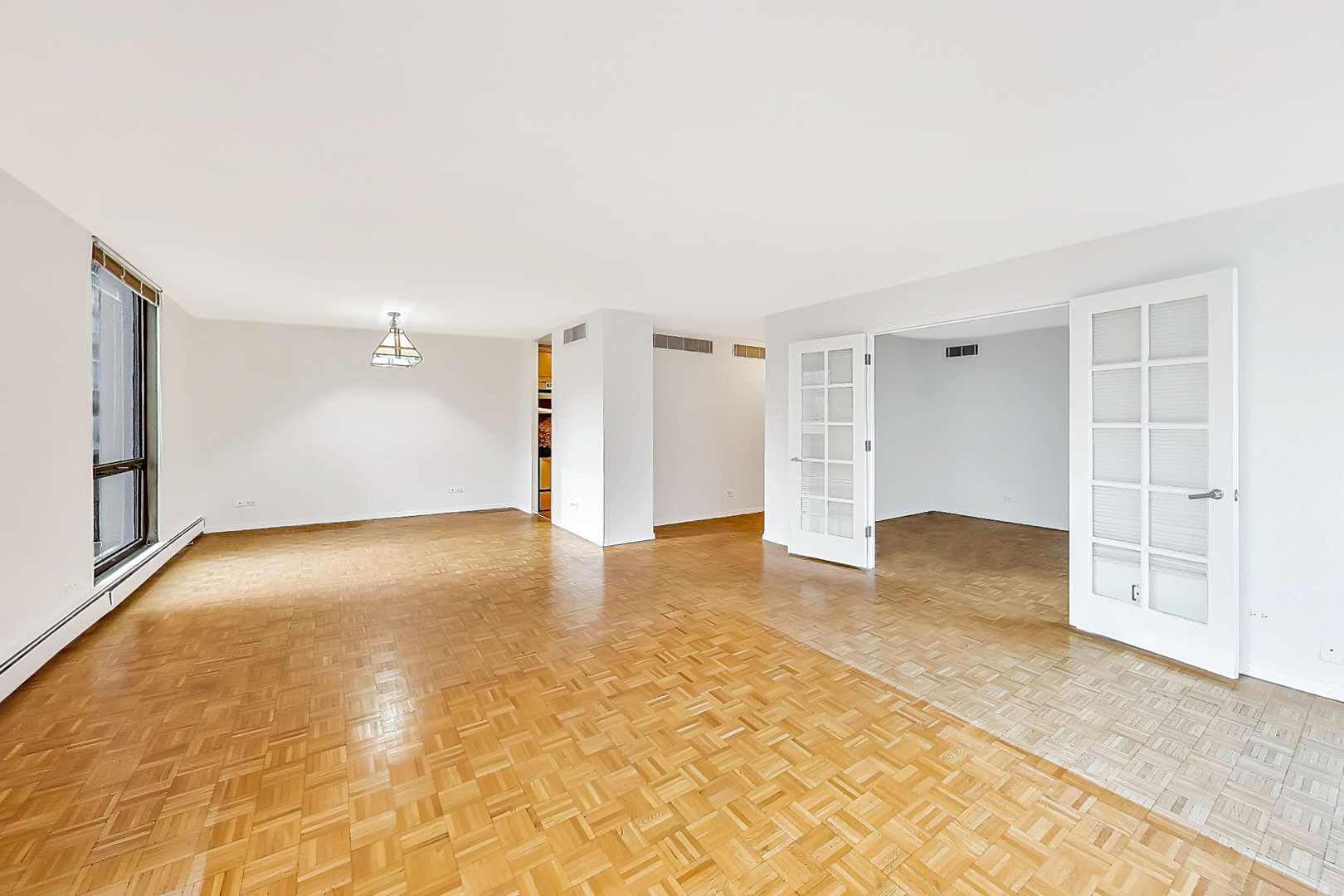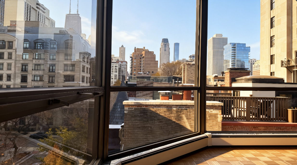 Located in the heart of Chicago’s Gold Coast, this spacious corner condo at Ritchie Tower offers a versatile layout featuring two bedrooms, two bathrooms, and a dedicated office or third bedroom. Unit 5C is bathed in natural afternoon sunlight through floor-to-ceiling windows that showcase sweeping skyline views. The home retains its original hardwood parquet floors, offering a perfect opportunity for a simple restoration to their mid-century modern splendor. Perched just above the treeline, the residence provides a tranquil atmosphere with city views from the living areas and pocket views of Lake Michigan from both east-facing bedrooms. The functional floor plan includes a galley-style kitchen with pantry, a spacious separate dining room and an extra-large living area, and a suited primary bedroom with large walk-in closet. Residents of Ritchie Tower enjoy: Wonderful 24-hour door staff and on-site management, a fitness room and a third-level outdoor pool and sundeck. Convenience: Attached valet parking available for a low monthly fee of $215. Prime Location: Situated on a quiet street just a half-block from Inner Lake Shore Drive, steps from the Lakefront Bike Trail, Goudy Square Playlot, and world-class dining and shopping. This is an estate sale. Monthly assessments are inclusive of all utilities and amenities except electricity.