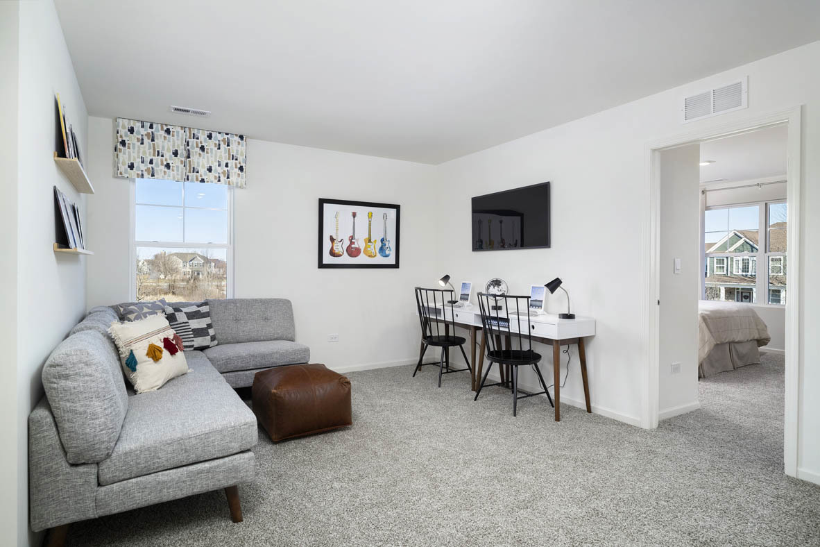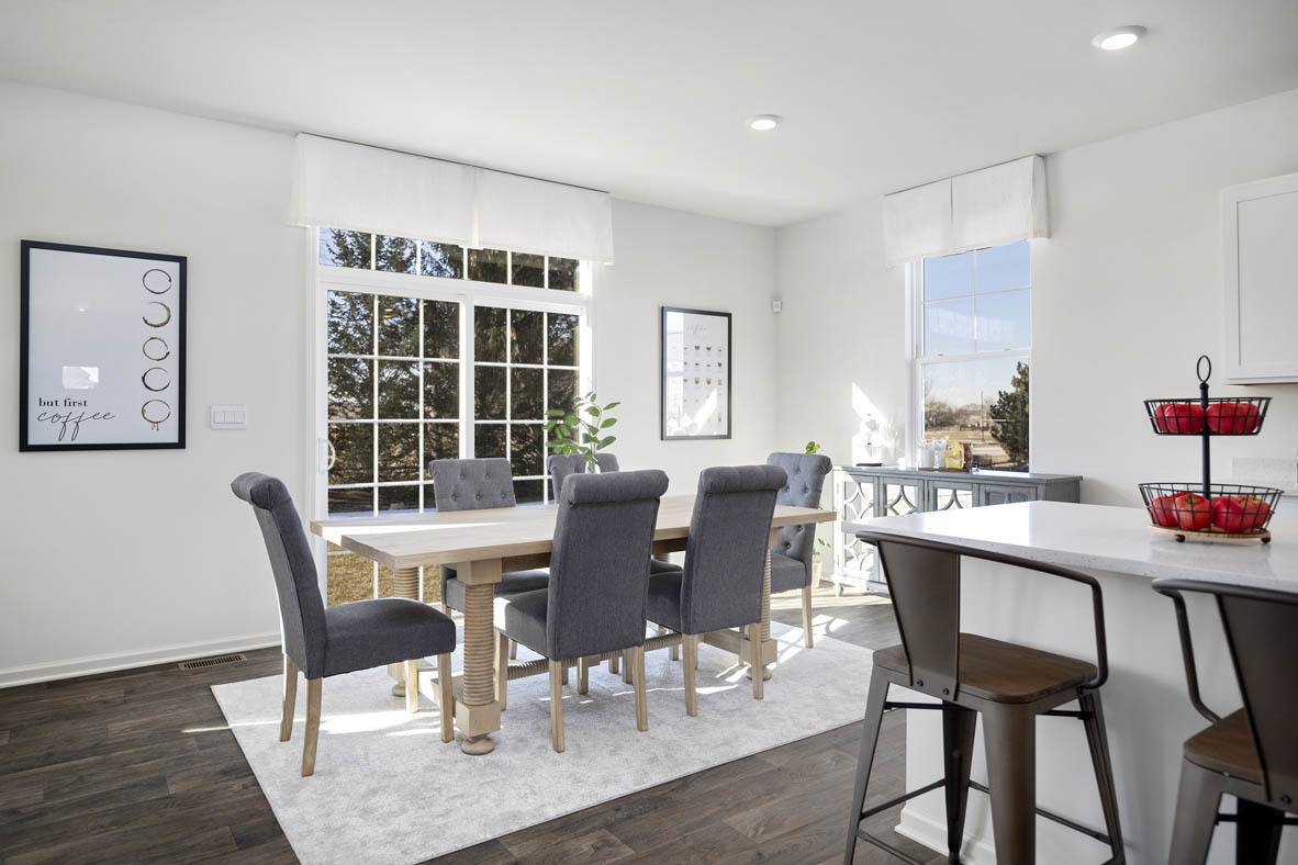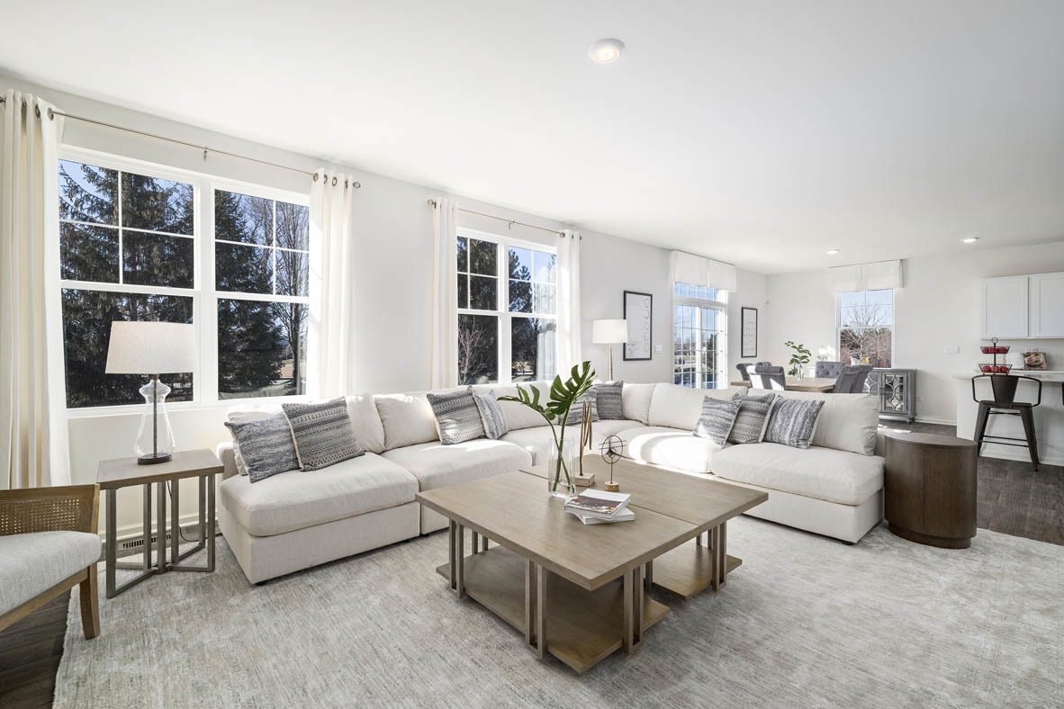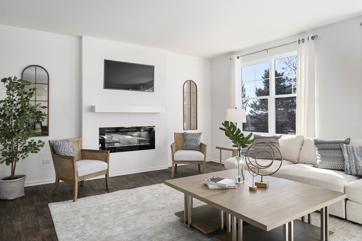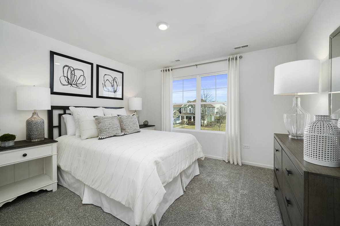 Discover yourself at 1310 Wake Robin Lane in Bartlett, IL, a beautiful new home in The Grasslands community. This home will be ready for Spring! Homesite includes fully sodded yard, landscape package, a deck, and spacious back yard. This Coventry plan offers 2, 836 square feet of living space with a flex room, 4 bedrooms, 2.5 baths, 9-foot ceilings on the first floor, and full walk-out basement. Entertaining will be easy in this open-concept kitchen and family room layout with a large kitchen island with an overhang for stools, 42-inch designer cabinetry with crown molding and soft close drawers. Additionally, the kitchen features a butler’s pantry, modern stainless-steel appliances, quartz countertops, and easy-to-maintain luxury vinyl plank flooring. More flexible space is waiting upstairs with the second-floor loft, offering unlimited potential to suit your needs. Enjoy your private getaway with your large primary bedroom and en suite. The primary bath includes a raised height dual sink, quartz top vanity, and walk-in shower with clear glass shower doors. Convenient walk-in laundry room, 3 additional bedrooms with a full second bath, and a linen closet compete the second floor. All Chicago homes include our America’s Smart Home Technology. Photos are of similar home and model home. Actual home built may vary.