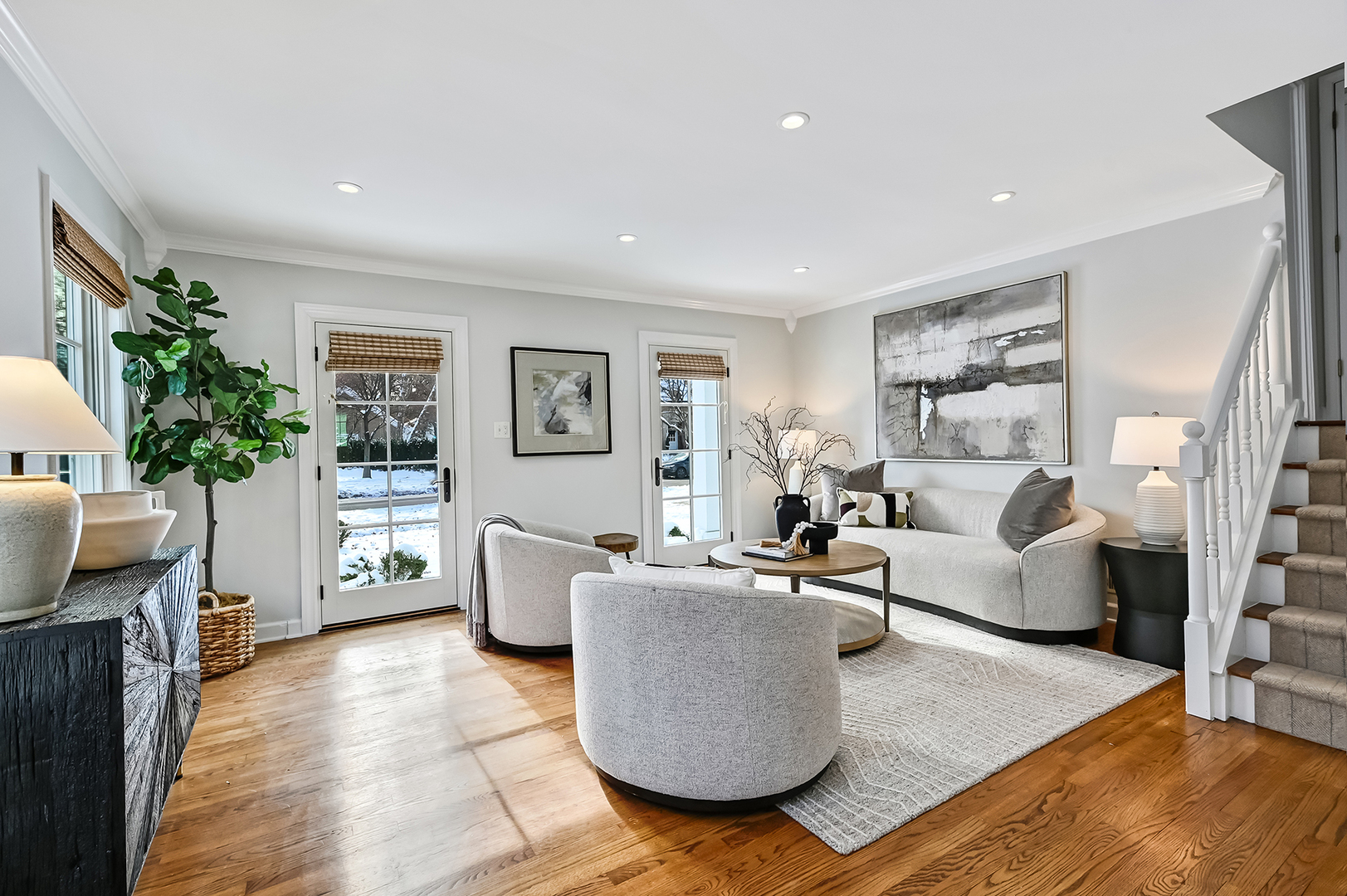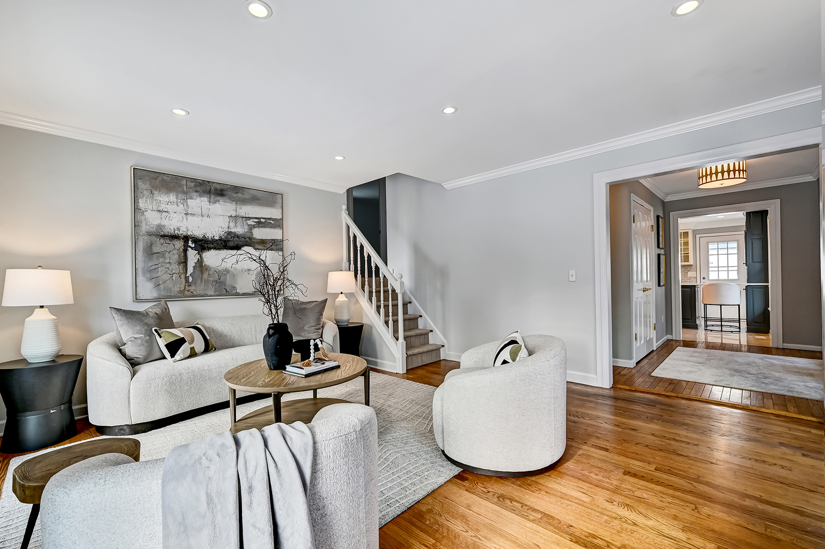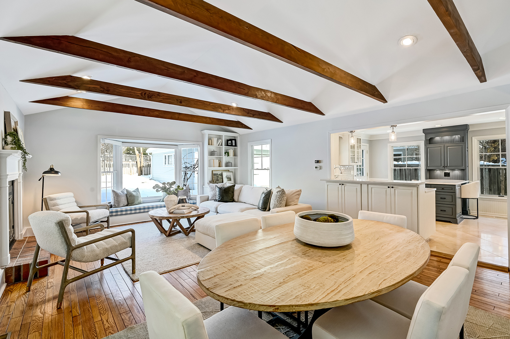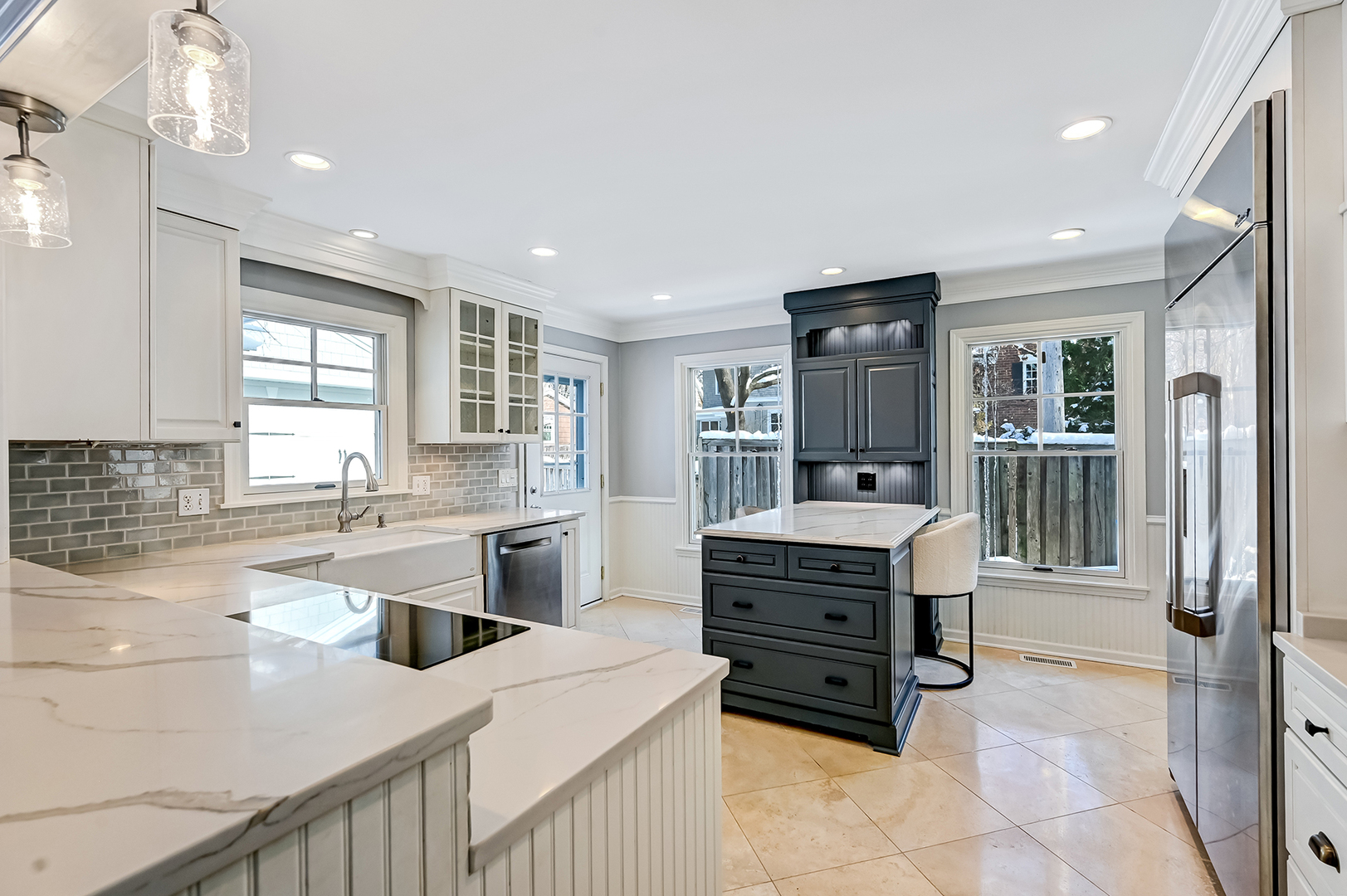 Prime Old Town A+ location! This charming, beautifully updated home blends timeless character with modern convenience. The renovated kitchen offers a large island, quartz countertops and upgraded appliances, opening to a bright family room with wood beams, built-ins, a fireplace and lush backyard views. Inviting front living room showcases French doors that open to the front porch, offering picturesque park views and a perfect spot to relax. The third-floor primary suite provides generous closet space and the opportunity to add a private bath within the existing footprint. Two spacious, freshly painted bedrooms and an updated full bath complete the second floor. Finished lower level adds excellent recreational space along with a separate laundry room. Outside, enjoy a serene retreat on the private deck with pergola, surrounded by mature landscaping. Extensive interior and exterior improvements include newer furnaces, Pella windows, James Hardie siding, architectural roof, new carpet, updated light fixtures, and fresh paint throughout, making this home truly move-in ready in one of the area’s most sought-after locations.