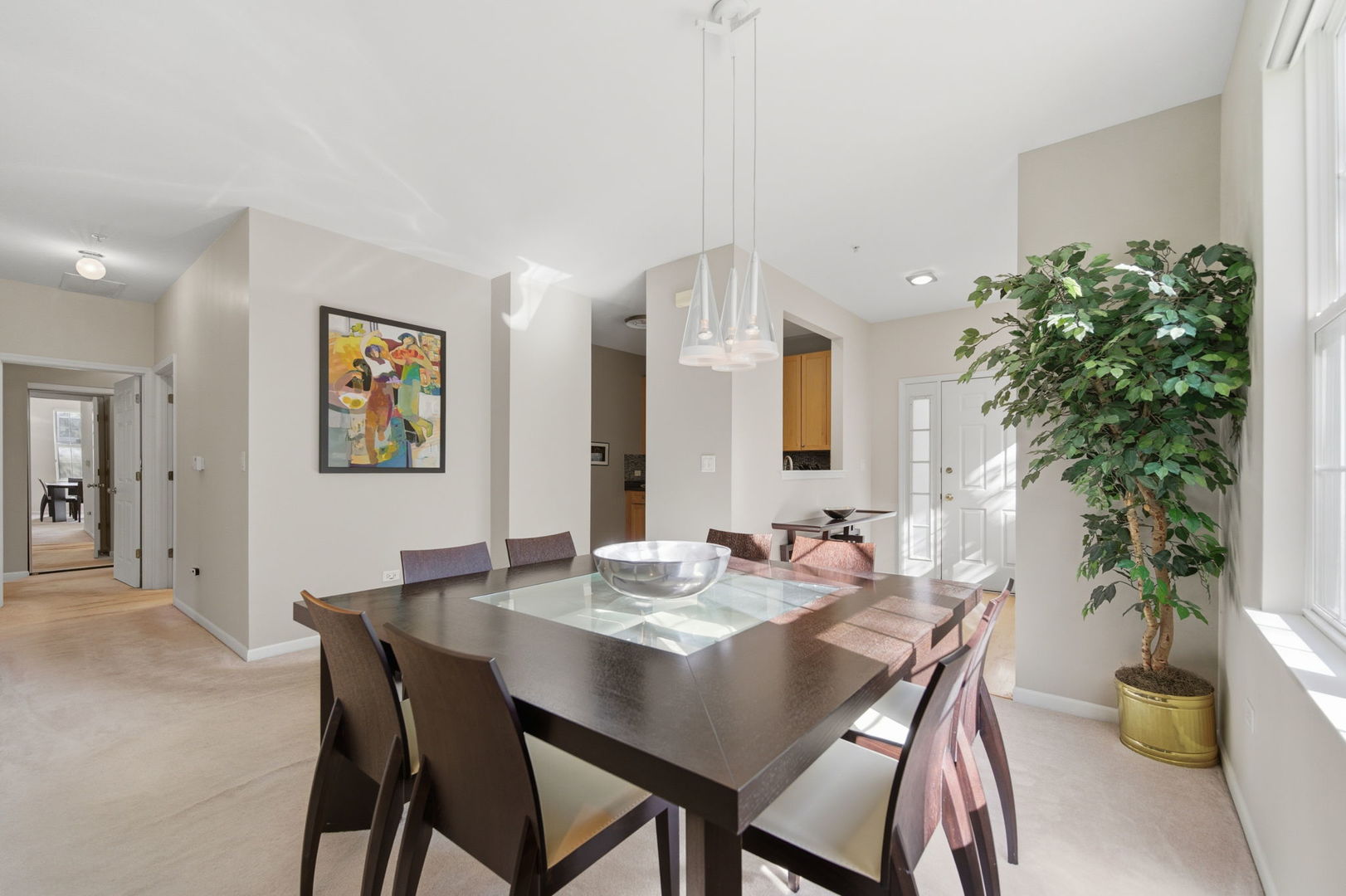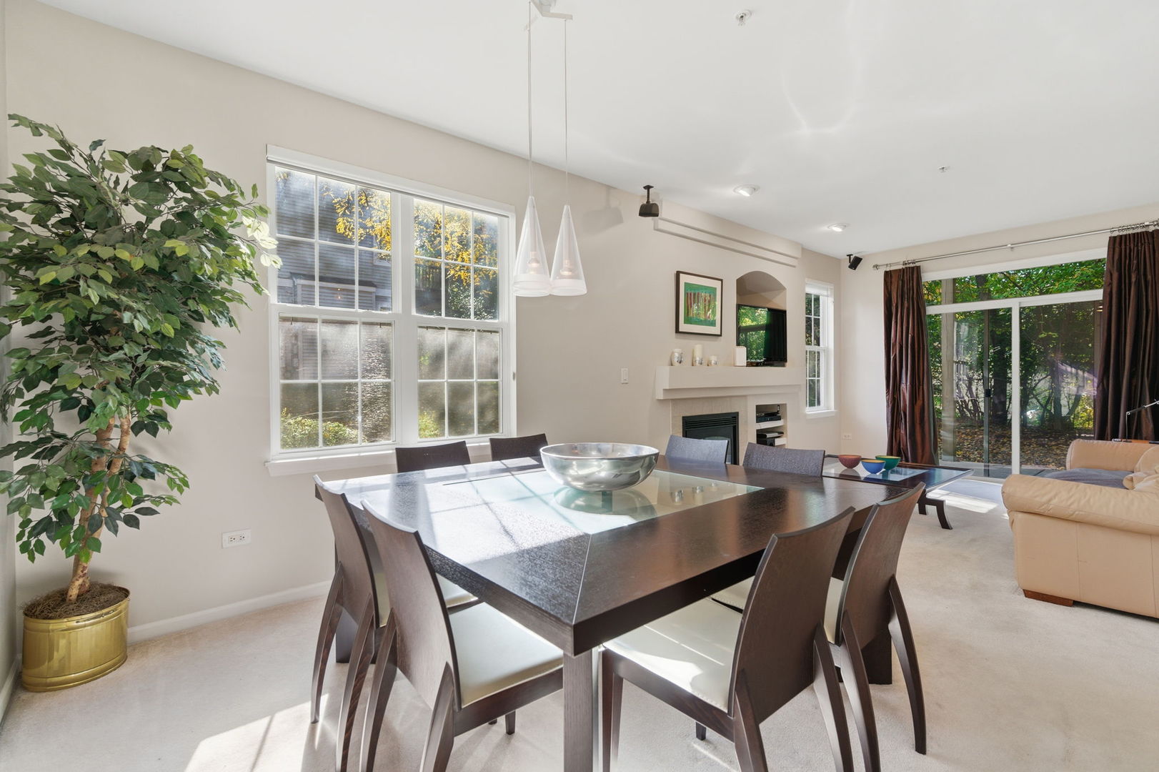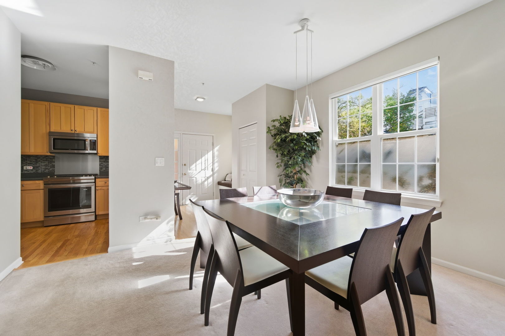 Tucked away in a peaceful, wooded setting, this first-floor condo offers the perfect blend of privacy, comfort, and style. Enjoy tranquil views of mature trees right outside your windows, creating a serene retreat just minutes from shopping, dining, and commuter routes. Inside, the open-concept layout features upgraded kitchen cabinets, modern lighting, and elegant silhouette blinds that fill the space with soft, natural light. The stunning primary bathroom is beautifully updated with contemporary finishes, offering a spa-like escape at the end of the day. With in-unit laundry, dedicated parking, and a private patio ideal for morning coffee or relaxing outdoors, this home delivers both sophistication and serenity in a truly special setting. You Deserve This!