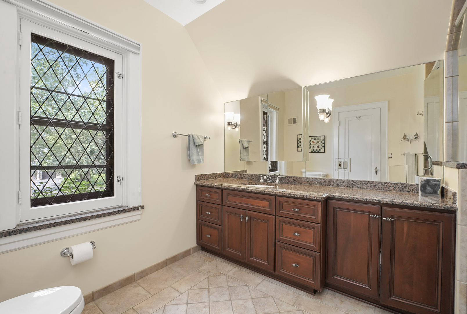 This stone beauty has lots of curb appeal and has been beautifully maintained by the long-time owners both inside and out! You’ll appreciate the character throughout: crown mouldings, chair rail, coved ceilings, picture frame mouldings, hardwood floors, and leaded glass windows.~~The Living Room with gas fireplace and the Dining Room are lovely and ideal for formal entertaining. The Family Room addition with skylights, built-ins, bar sink with granite counters and stained glass sidelights is right off the well-planned kitchen/breakfast room which has quartz counters and stainless aplliances. Both of these rooms and the Office/Den overlook the paver patio and lush landscaping of the deep yard. The Mark Menna designed 1/2 bath with vessel sink, mosaic marble tile surround and flooring and alabster sconces, completes the first floor.~~The 2nd floor has a custom, gorgeous stained glass window, hallway cedar closet, 4 bedrooms and 3 full baths. The Master Suite has 2 closets, a renovated master bath with Robern medicine chest, exceptional cabinetry and walk-in shower. The second suite is over the attached garage. The 2nd Bedroom opens to a roof Deck. The hallway bath has classic ceramic tile and a vanity with Corian counter. ~~The lower level has a Rec Room with wet bar and woodburning fireplace, very spacious laundry room and tons of storage space.~~Systems include: sump pump, overhead sewers, Respicaire air purifier, Generator 6/25, furnaces 4/21 & 1/19, water heater & C/A 6/19. A must to see!
