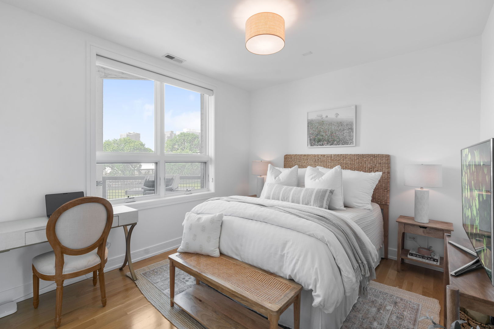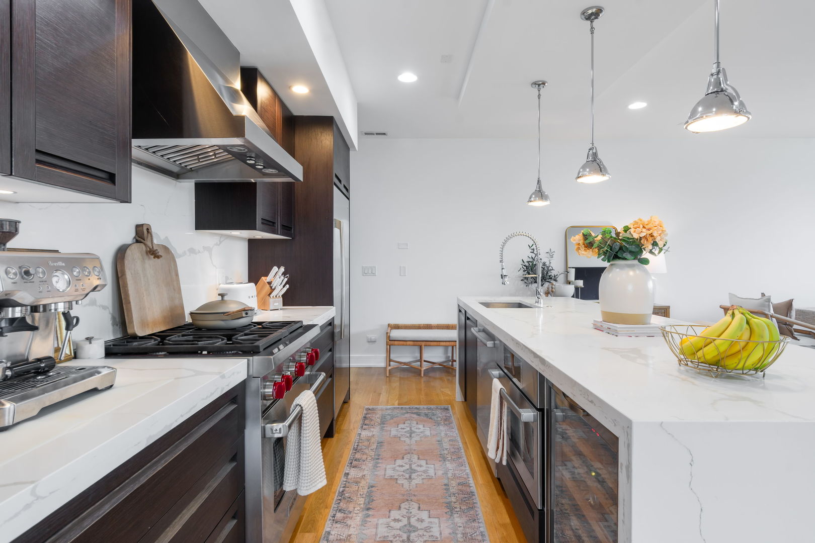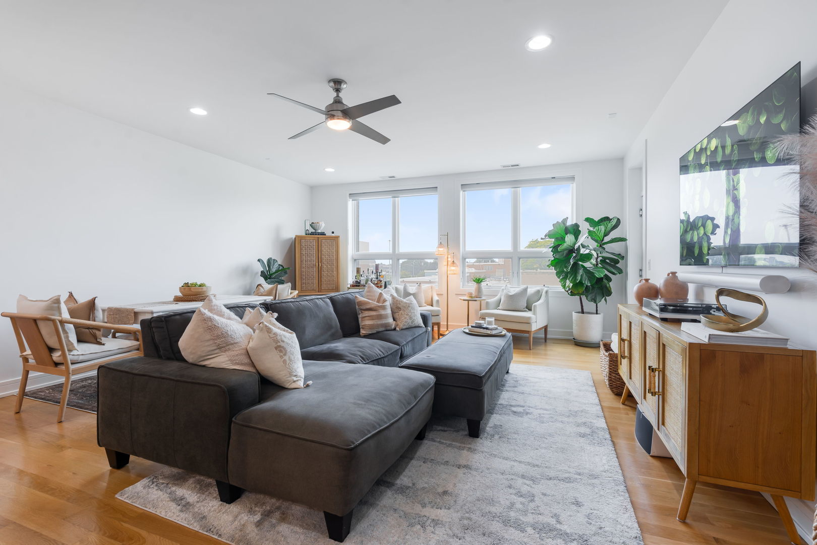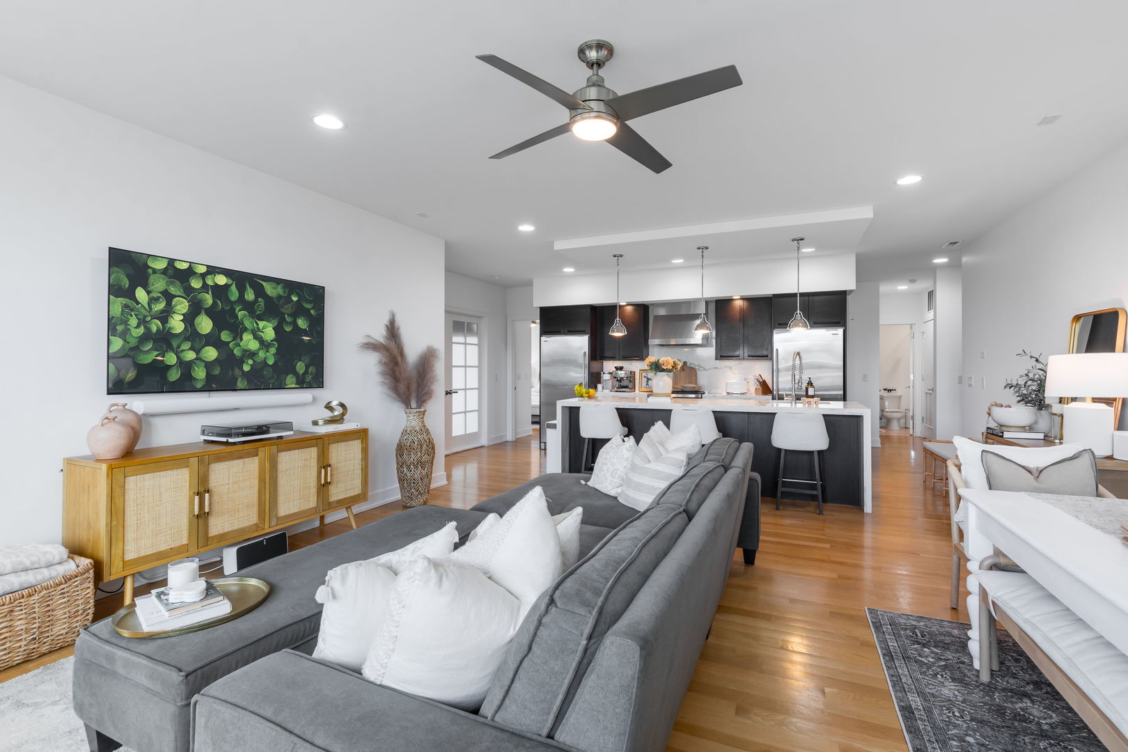 Welcome to your new home at the intersection of Old Town and River North, The Stanton! Built in 2016, this 3-bedroom, 2-bathroom home offers soaring 9′ ceilings, expansive windows with west and north exposure, and an airy open-concept layout designed for both everyday living and entertaining. The chef’s kitchen features sleek European soft-close cabinetry, high-end stainless-steel appliances, quartz countertops, and a dramatic waterfall island that anchors the space. The living and dining areas flow seamlessly onto a private balcony-perfect for enjoying your morning coffee or evening sunsets. The massive primary suite is a true retreat, complete with a walk-in closet and a spa-inspired en-suite bath boasting heated floors, a dual vanity, a soaking tub, and a separate glass-enclosed shower. Two additional bedrooms offer flexibility for a guest room, home office, or fitness space. Additional highlights include hardwood floors throughout, in-unit laundry, and 2 heated garage parking spaces. With its unbeatable Old Town location, you’re just minutes from Wells Street dining, Lincoln Park, boutique shopping, the lakefront, and easy access to public transit. This home checks every box for modern city living-style, comfort, and convenience in one of Chicago’s most desirable neighborhoods.