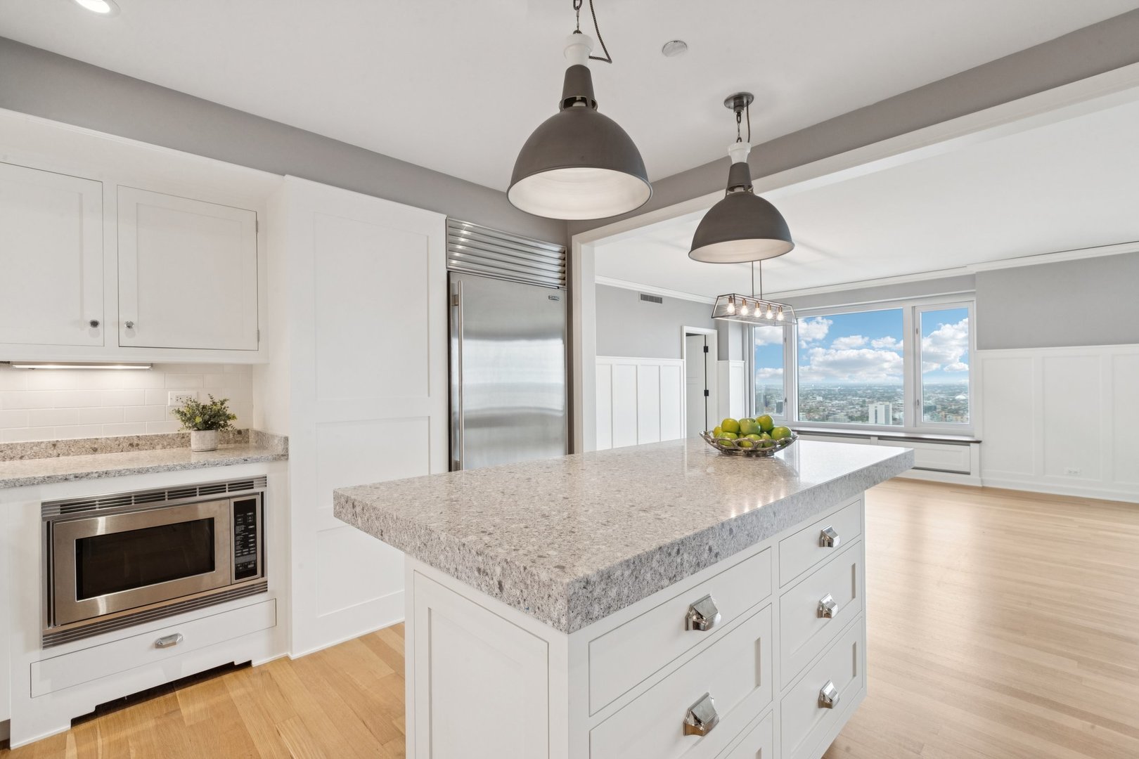 This beautifully reimagined two-bedroom home at the Four Seasons Residences offers a sophisticated lifestyle with a completely redesigned floor plan and high-end finishes throughout. The expansive living and dining room features rich hardwood floors, two oversized picture windows framing the magnificent city skyline, and breathtaking sunset views. The open, classic white kitchen is a chef’s dream with a large island for casual dining or entertaining, ample prep space, and deluxe appliances including a Sub-Zero refrigerator, Viking electric range with pot filler, and vented hood. The serene primary suite boasts hardwood floors, a wall of windows, a custom-organized walk-in closet, and an adjacent flexible office space-ideal for a private study or additional dressing room. The spa-inspired primary bath includes a walk-in stone shower with custom glass doors, double vanity, and linen storage. A spacious second bedroom suite offers two closets and room for a complete furniture arrangement, while an additional bonus room off the living area can serve as a den, office, or third bedroom. Additional highlights include a side-by-side laundry room, abundant storage, and a neutral move-in-ready palette. Residents enjoy the boutique, professionally managed Four Seasons Residences with access to world-class a la carte hotel amenities including the pool, exercise room, and spa. Valet and Self Park Options are available.