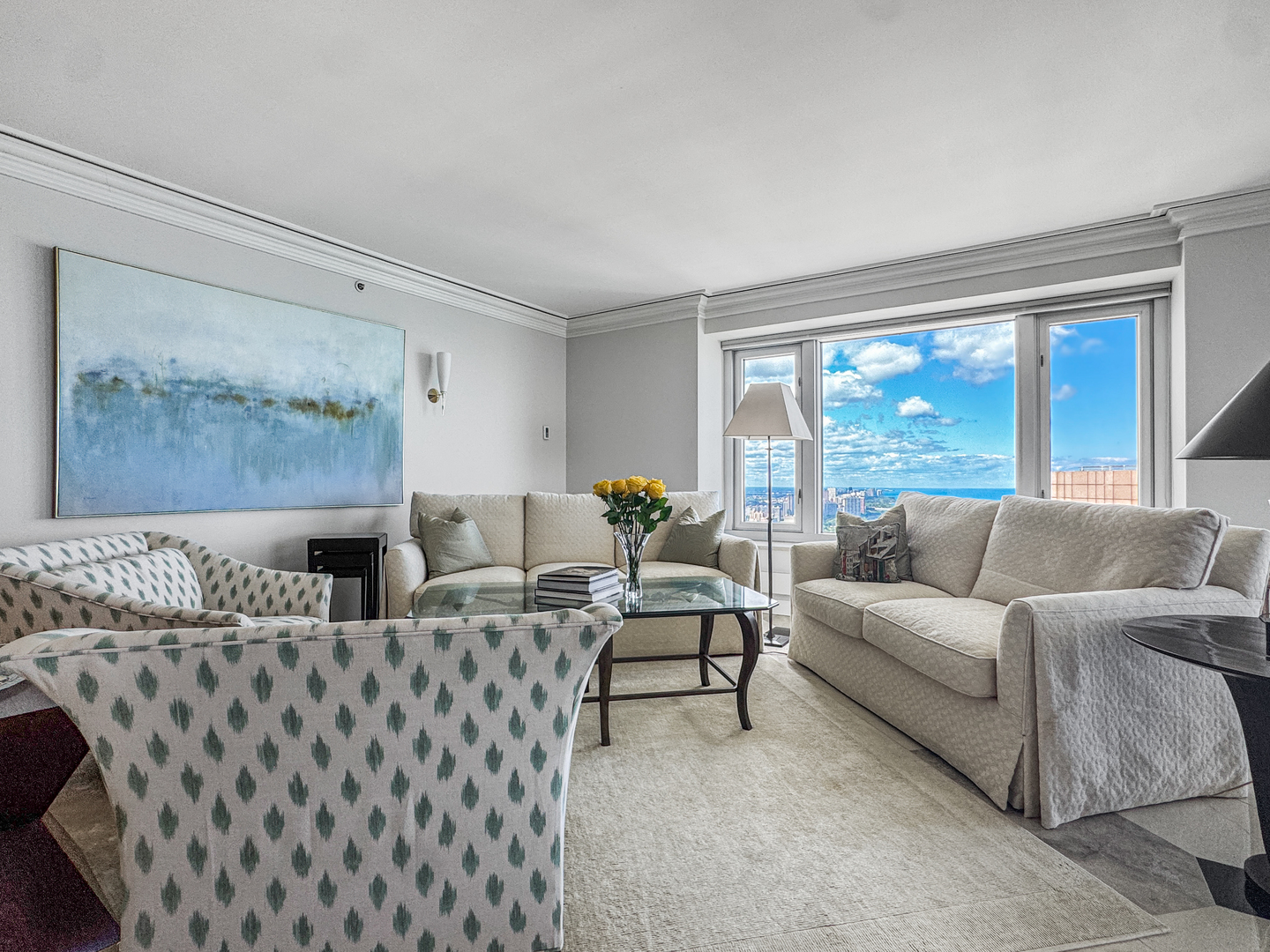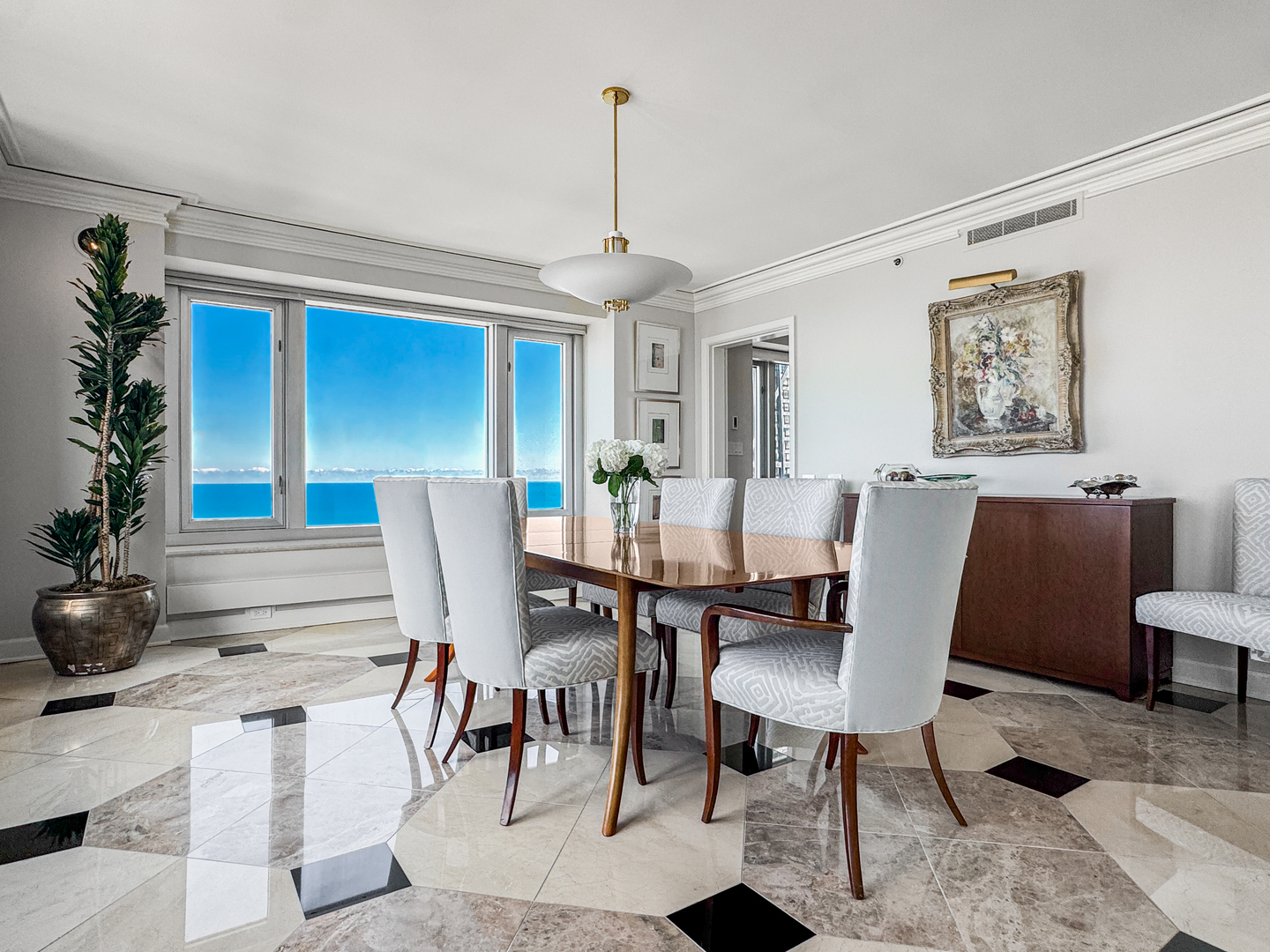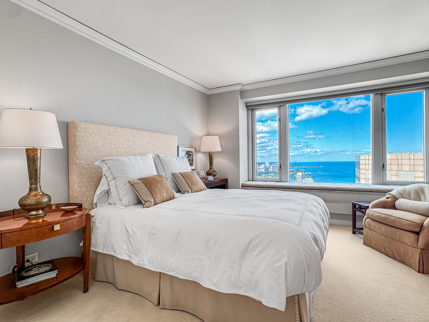 The most desirable floorplan at 132 E. Delaware with stunning views of the lake and Michigan Avenue, this sophisticated 2,746 sqft northeast corner 3 bedroom, 3 bath residence is priced to sell! This elegant home offers neutral, upscale finishes, including crown molding, designer lighting, marble and granite flooring, custom wall and window treatments, and more. The renovated kitchen has everything you need — beautiful walnut cabinetry with abundant storage, granite counters with a modern satin finish and waterfall edge, under-counter and recessed lighting, and top-quality appliances, including a Miele induction cooktop and a SubZero wine refrigerator. All three bedrooms are spacious and have custom-built-out closets; the primary bedroom has two large walk-in closets. All three full baths have been updated and include new or refinished vanities, Kalista or Fantini hardware, Toto toilets, and new lighting. Other features include a laundry room with a full-size front-loading LG washer/dryer, two HVAC systems, auxiliary baseboard heat, central humidification, and a Bang & Olufsen audio system with built-in speakers. Building amenities include professional management, full-time door staff, additional storage, an onsite garage offering monthly self-park and valet options, and hourly guest parking. Residents enjoy discounted access to the 5-star Four Seasons hotel, including guest rooms, health club memberships, spa services, restaurants, and room service. World-class shopping and dining are at your doorstep, and you can access the Shops at 900 (the retail mall) without leaving the building! City living doesn’t get better than this!