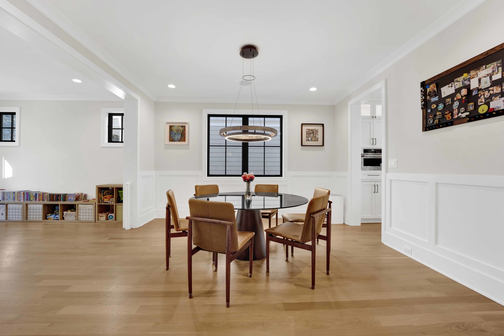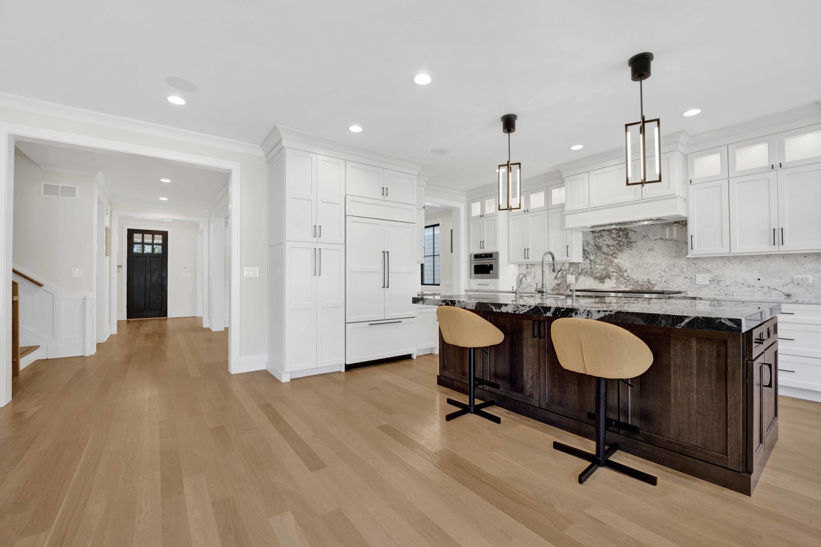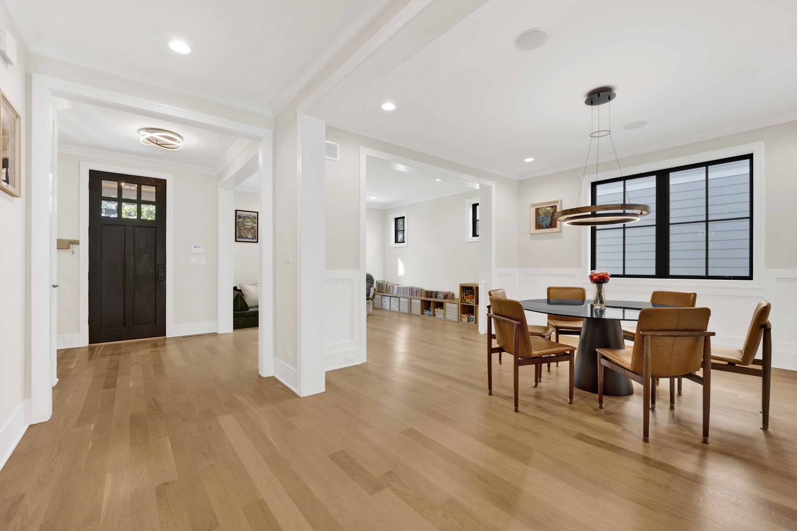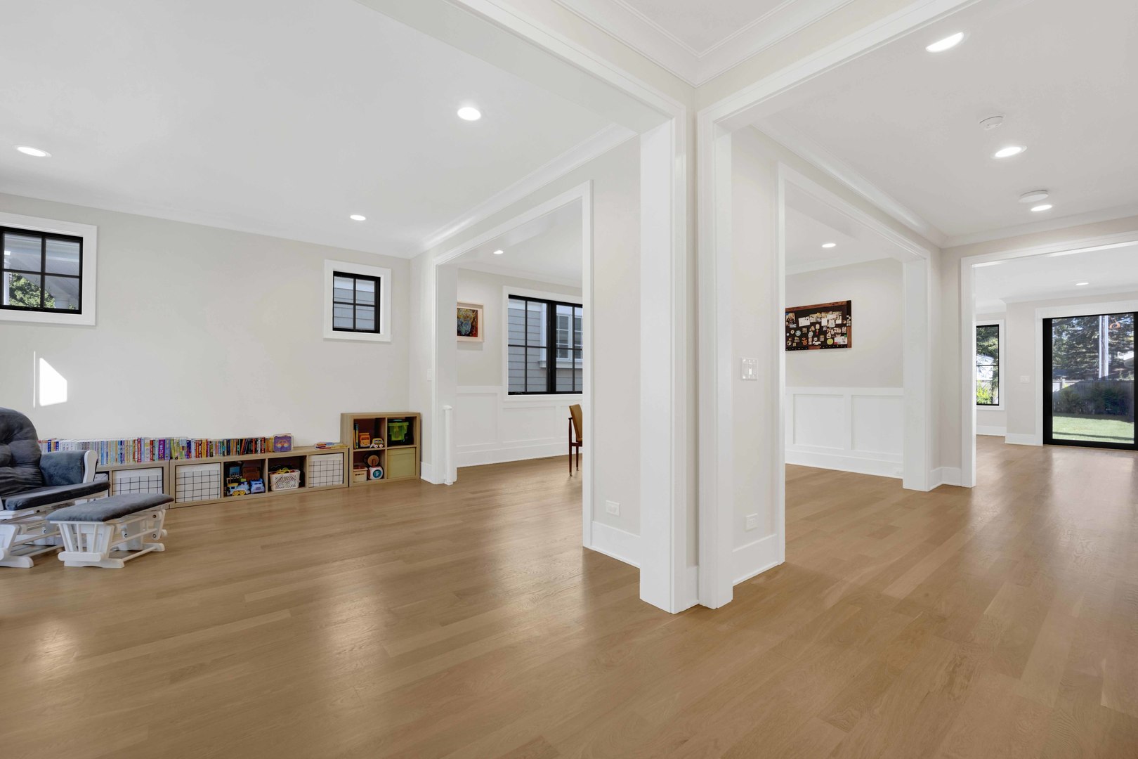 BEST & FINAL OFFERS DUE WEDNESDAY, SEPTEMBER 24 at 5 pm. Constructed in late 2022, this nearly new custom home combines timeless craftsmanship with modern amenities, just a 10-minute walk to downtown Wilmette, the Metra, and McKenzie Elementary. Built by a respected North Shore builder, the residence spans over 5,500+ square feet across four finished levels, offering 6 bedrooms and 5.1 baths. A welcoming front porch opens into a gracious foyer where wide-plank hardwood floors, custom cabinetry, fine moldings, and oversized windows set the tone. Tall ceilings throughout create a bright, airy ambiance. The main level is ideal for entertaining, with seamless flow between the formal living room, wainscoted dining room, and an open-concept kitchen/family room. The chef’s kitchen is equipped with Wolf and Sub-Zero appliances, quartzite countertops, a large center island, abundant storage, and a sunny breakfast nook. The adjoining family room features a fireplace and custom entertainment center, opening to a rear patio and landscaped yard. A private office with coffered ceiling, chic powder room, and fully outfitted mudroom complete the first floor. Upstairs, the primary suite offers two walk-in closets and a spa-inspired bath with soaking tub, walk-in shower, and dual vanities. Three additional bedrooms include one en-suite plus a Jack & Jill bath, along with a convenient laundry room. The finished third floor attic provides a versatile bonus space with full bath-perfect as a playroom, office, or guest retreat. The lower level with 9’7″ ceilings expands living space with a large recreation room, kitchenette, play/exercise area, wine cellar, private study/bedroom, and full bath. Additional highlights include a 20′ x 22′ oversized garage, in-ground irrigation, 2-zone HVAC, and a full security system. This move-in-ready home offers the rare combination of nearly new construction and a prime location near downtown, schools, restaurants, and shopping-within the highly sought-after McKenzie Elementary and New Trier High School districts.