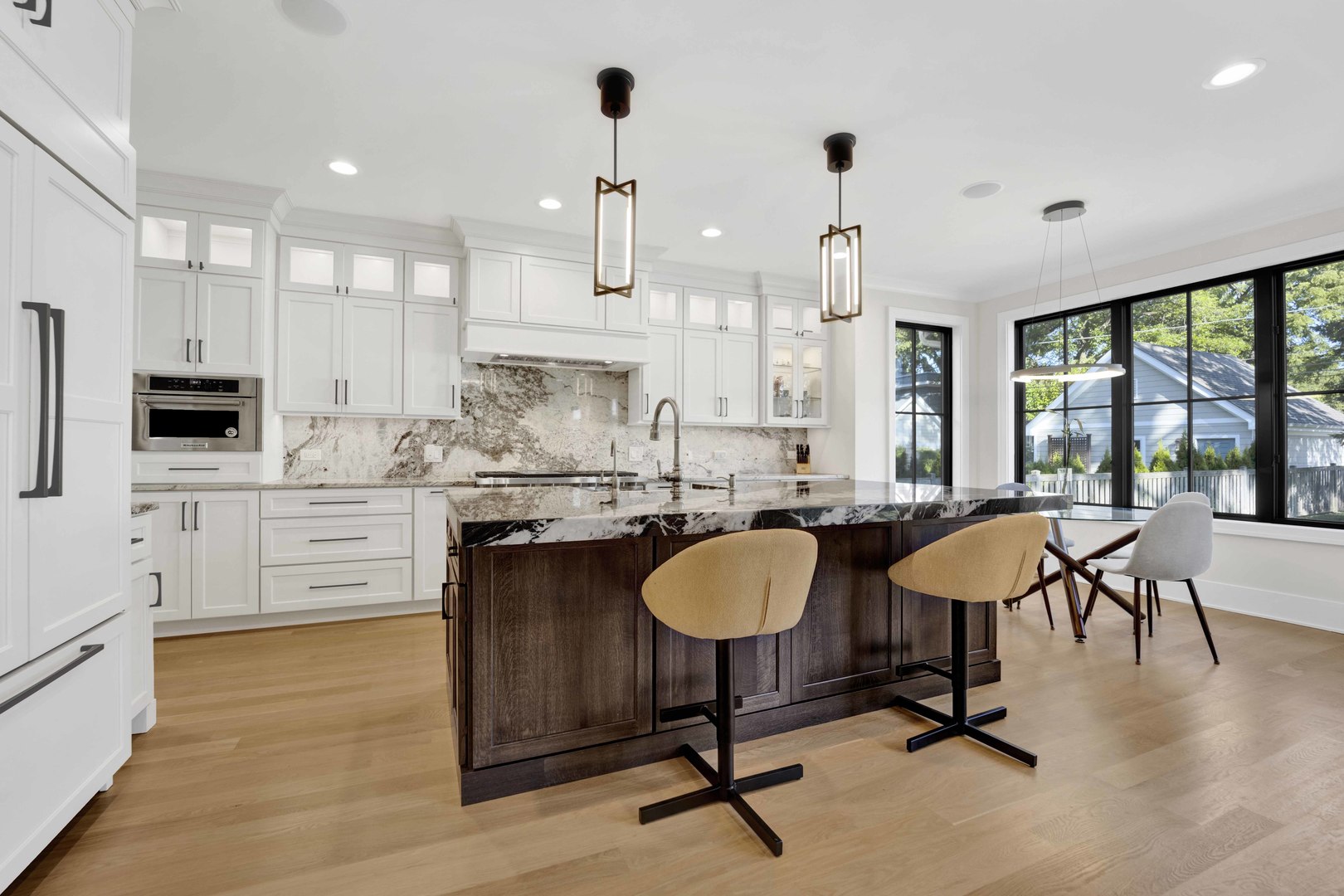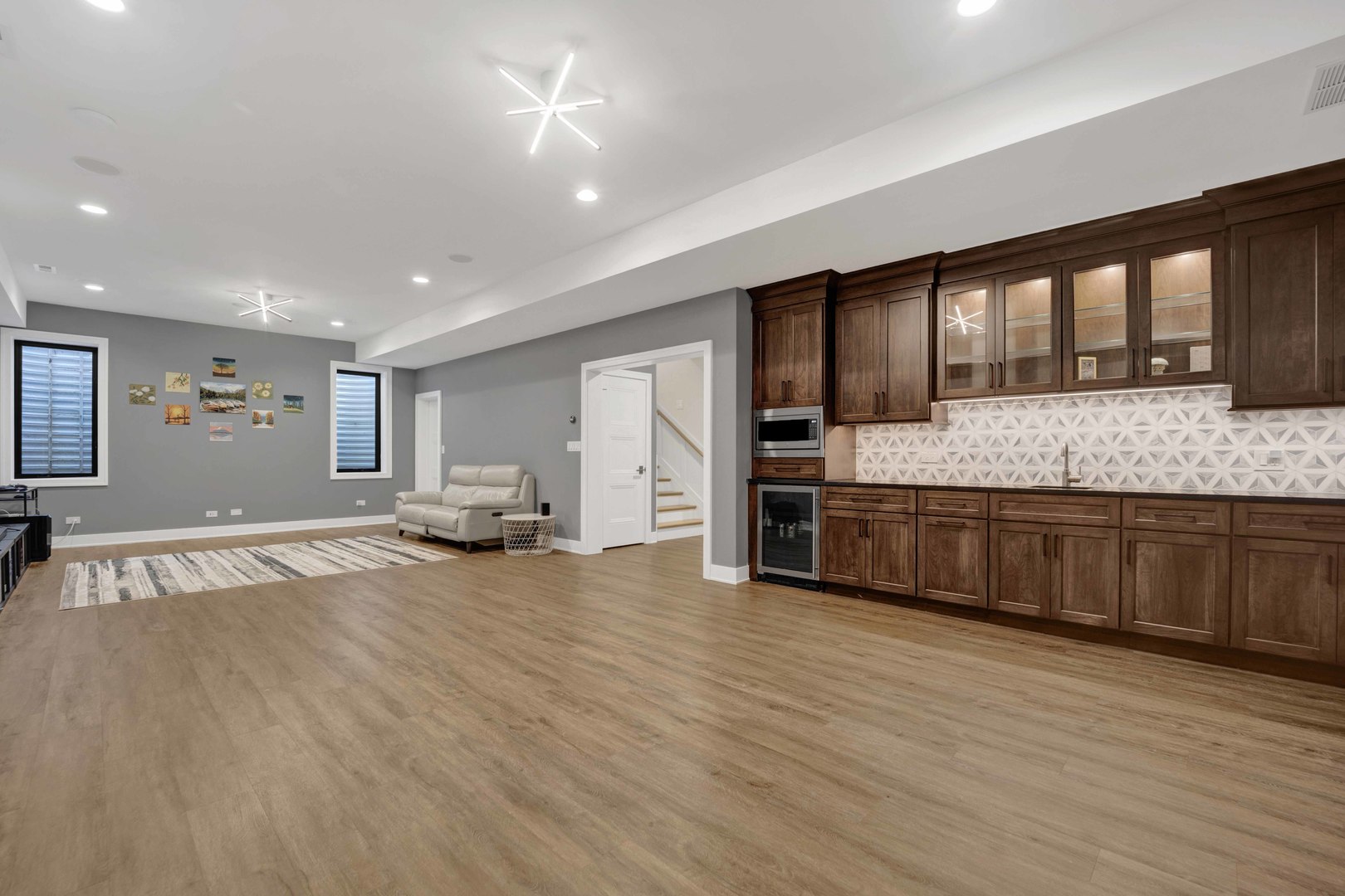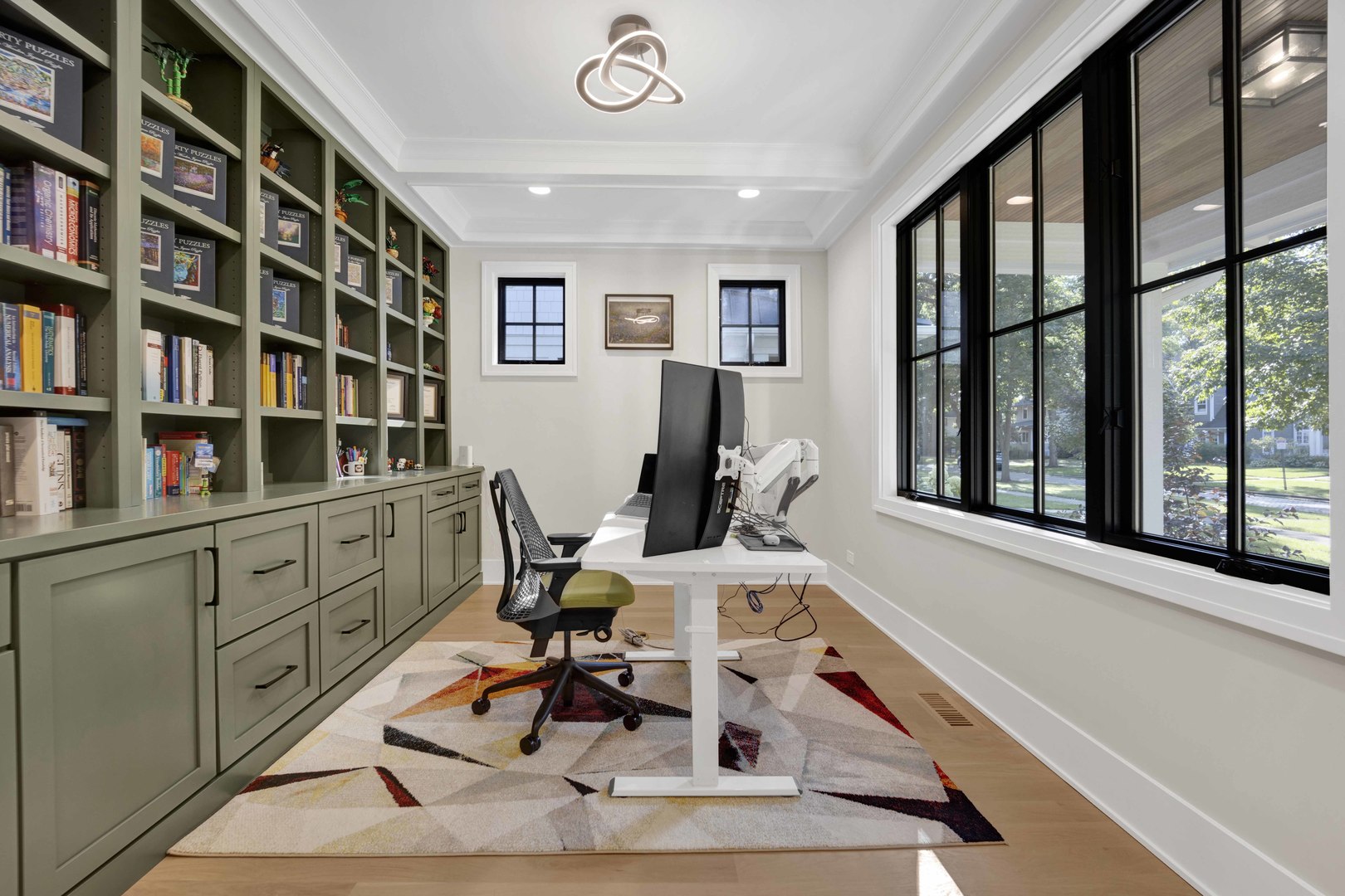 BEST & FINAL OFFERS DUE WEDNESDAY, SEPTEMBER 24 at 5 pm. Constructed in late 2022, this nearly new custom home combines timeless craftsmanship with modern amenities, just a 10-minute walk to downtown Wilmette, the Metra, and McKenzie Elementary. Built by a respected North Shore builder, the residence spans over 5,500+ square feet across four finished levels, offering 6 bedrooms and 5.1 baths. A welcoming front porch opens into a gracious foyer where wide-plank hardwood floors, custom cabinetry, fine moldings, and oversized windows set the tone. Tall ceilings throughout create a bright, airy ambiance. The main level is ideal for entertaining, with seamless flow between the formal living room, wainscoted dining room, and an open-concept kitchen/family room. The chef’s kitchen is equipped with Wolf and Sub-Zero appliances, quartzite countertops, a large center island, abundant storage, and a sunny breakfast nook. The adjoining family room features a fireplace and custom entertainment center, opening to a rear patio and landscaped yard. A private office with coffered ceiling, chic powder room, and fully outfitted mudroom complete the first floor. Upstairs, the primary suite offers two walk-in closets and a spa-inspired bath with soaking tub, walk-in shower, and dual vanities. Three additional bedrooms include one en-suite plus a Jack & Jill bath, along with a convenient laundry room. The finished third floor attic provides a versatile bonus space with full bath-perfect as a playroom, office, or guest retreat. The lower level with 9’7″ ceilings expands living space with a large recreation room, kitchenette, play/exercise area, wine cellar, private study/bedroom, and full bath. Additional highlights include a 20′ x 22′ oversized garage, in-ground irrigation, 2-zone HVAC, and a full security system. This move-in-ready home offers the rare combination of nearly new construction and a prime location near downtown, schools, restaurants, and shopping-within the highly sought-after McKenzie Elementary and New Trier High School districts.