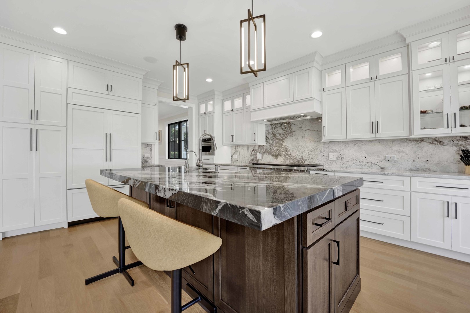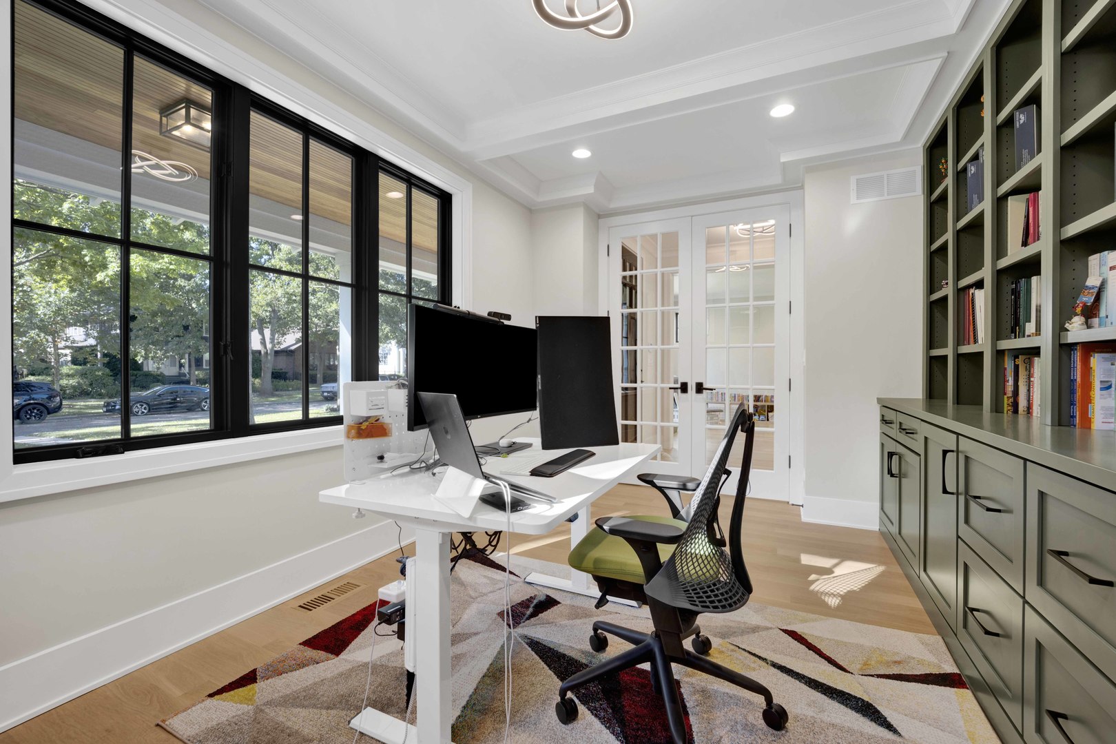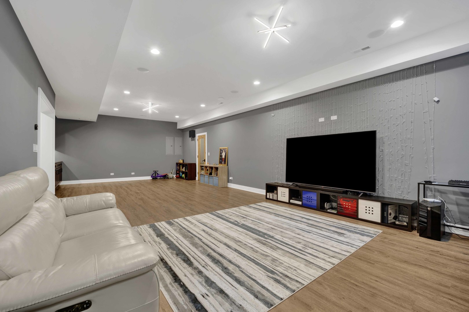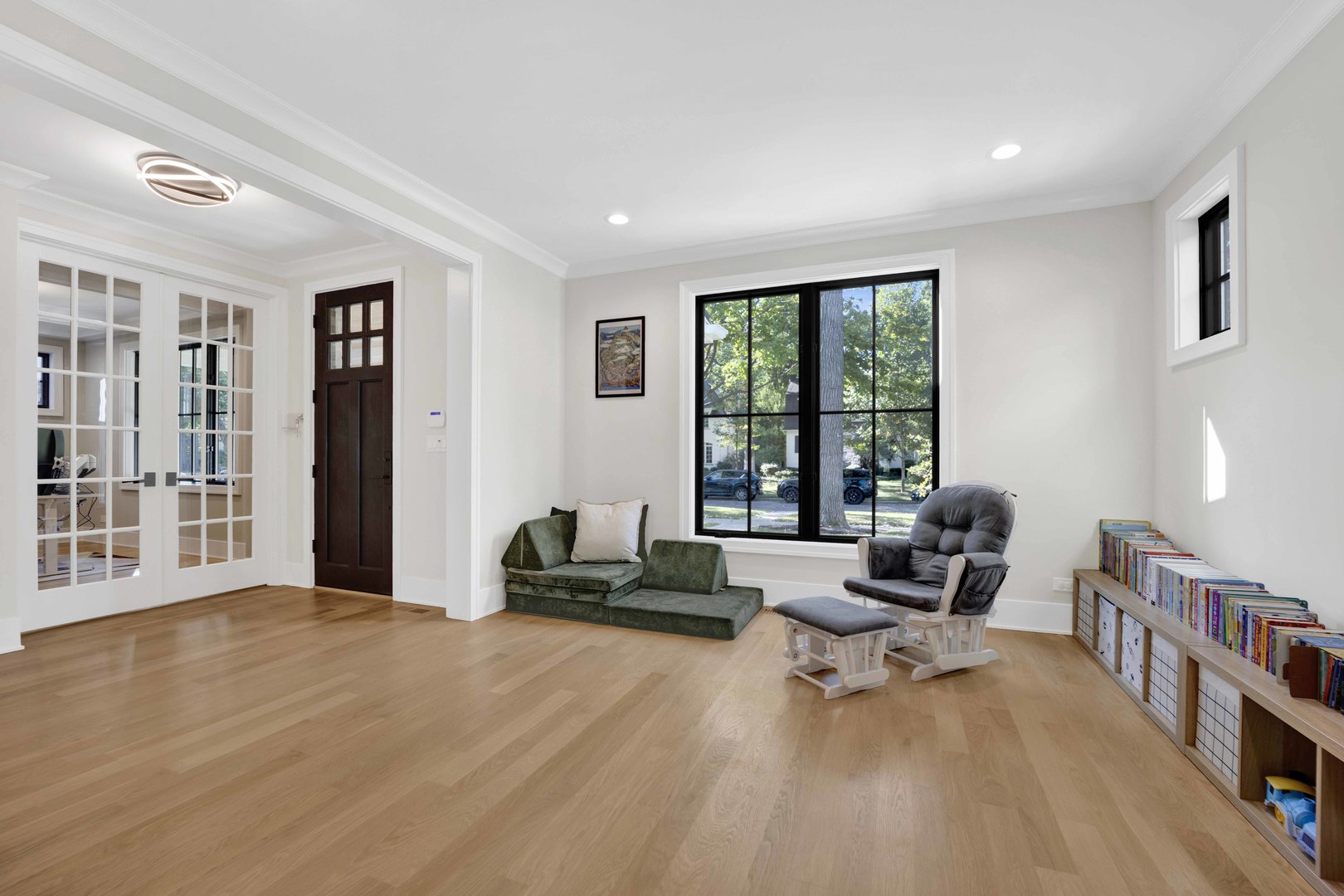 BEST & FINAL OFFERS DUE WEDNESDAY, SEPTEMBER 24 at 5 pm. Constructed in late 2022, this nearly new custom home combines timeless craftsmanship with modern amenities, just a 10-minute walk to downtown Wilmette, the Metra, and McKenzie Elementary. Built by a respected North Shore builder, the residence spans over 5,500+ square feet across four finished levels, offering 6 bedrooms and 5.1 baths. A welcoming front porch opens into a gracious foyer where wide-plank hardwood floors, custom cabinetry, fine moldings, and oversized windows set the tone. Tall ceilings throughout create a bright, airy ambiance. The main level is ideal for entertaining, with seamless flow between the formal living room, wainscoted dining room, and an open-concept kitchen/family room. The chef’s kitchen is equipped with Wolf and Sub-Zero appliances, quartzite countertops, a large center island, abundant storage, and a sunny breakfast nook. The adjoining family room features a fireplace and custom entertainment center, opening to a rear patio and landscaped yard. A private office with coffered ceiling, chic powder room, and fully outfitted mudroom complete the first floor. Upstairs, the primary suite offers two walk-in closets and a spa-inspired bath with soaking tub, walk-in shower, and dual vanities. Three additional bedrooms include one en-suite plus a Jack & Jill bath, along with a convenient laundry room. The finished third floor attic provides a versatile bonus space with full bath-perfect as a playroom, office, or guest retreat. The lower level with 9’7″ ceilings expands living space with a large recreation room, kitchenette, play/exercise area, wine cellar, private study/bedroom, and full bath. Additional highlights include a 20′ x 22′ oversized garage, in-ground irrigation, 2-zone HVAC, and a full security system. This move-in-ready home offers the rare combination of nearly new construction and a prime location near downtown, schools, restaurants, and shopping-within the highly sought-after McKenzie Elementary and New Trier High School districts.