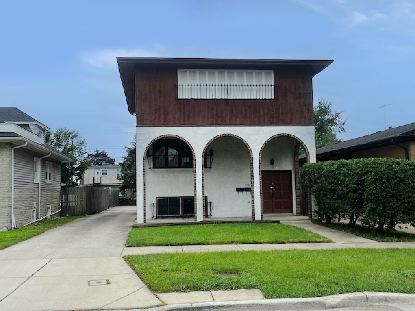 Brick/Frame 2-story home split into 2 separate units, side driveway and ample space for parking for multiple cars in the rear. Tax records show this property to be a single family but the Village has this property as a 2-unit. 1st fl & 2nd flr offers 3 bedrooms and 2 full baths, living room, a great room with fireplace and bar. Basement unit has a spacious kitchen, living room, 2 bedrooms and a full bath. Separate utilities and mechanicals. Seller will not complete any repairs to the subject property, either lender or buyer requested. The property is sold in AS IS condition!
