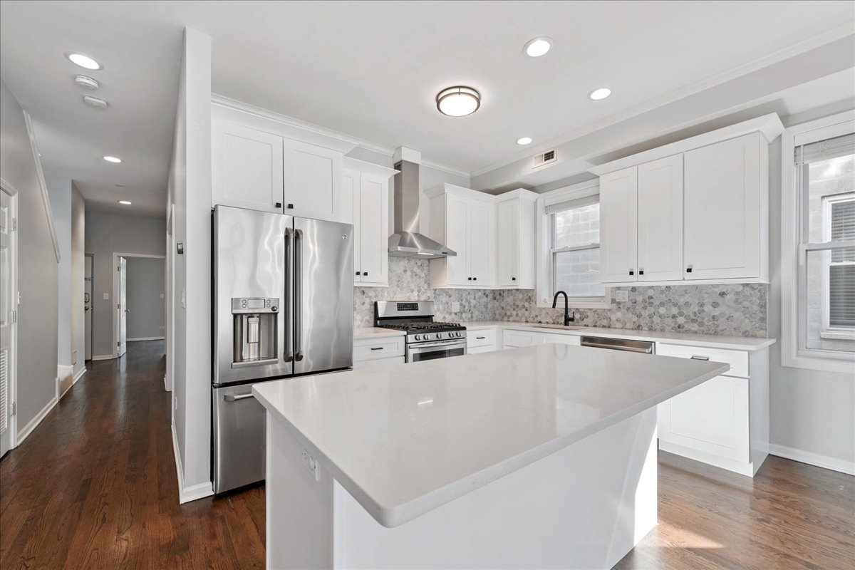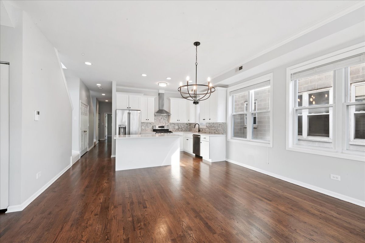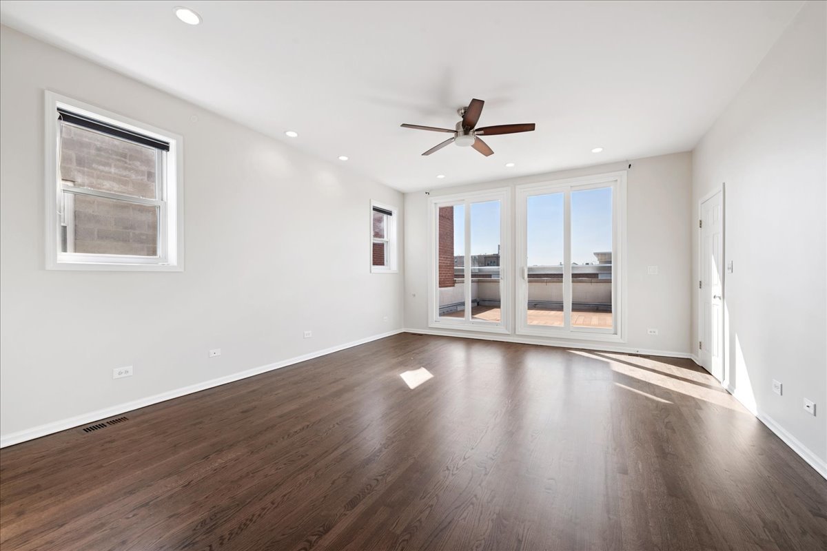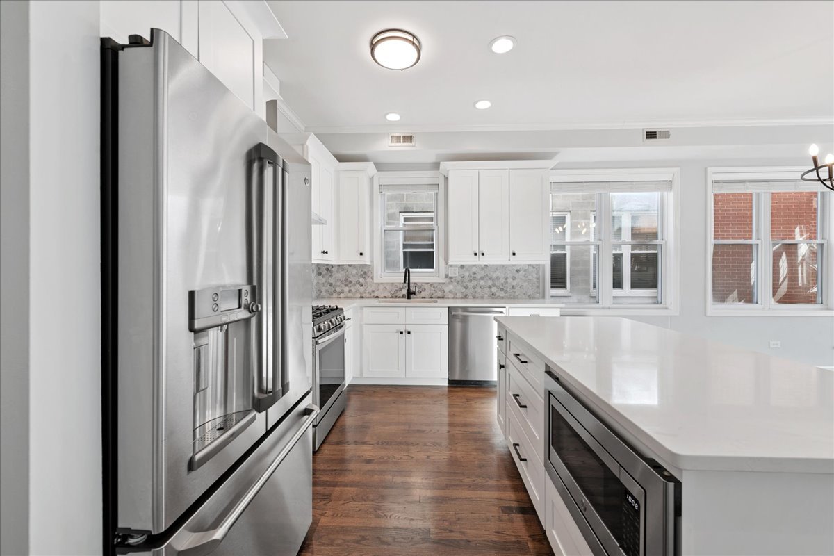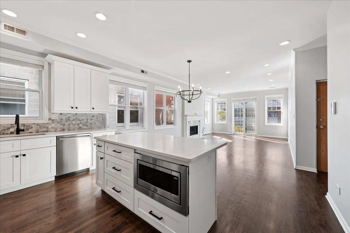 HIGHEST AND BEST OFFERS DUE SUN SEPT 21 AT 7PM CST. Gorgeous updated 3 bedroom 2 bath penthouse duplex up condo in the highly coveted Southport Corridor and Burley School district! This unique and extra wide floor plan has soaring ceiling heights, tons of windows, lots of sunlight, hardwood floors throughout, and two large private outdoor spaces. Welcome guests into your formal foyer with coat closet which leads to a massive living room/dining room with gas fireplace and updated kitchen with newer white Shaker style soft close cabinets/drawers, stainless steel appliances and quartz counters as well as an island that seats 3. Down the hallway are two large bedrooms on the main level, one which has it’s own large private balcony. Both bedrooms share a hallway bathroom which is across from the laundry area. Upstairs the entire second floor is a huge private primary suite with a massive private terrace, stunning city views, an ensuite bathroom with dual sinks, a soaking tub and a separate shower with rain showerhead along with a large organized walk in closet. This condo also comes with two parking spaces: one garage parking space plus an outdoor parking space right before the garage parking space as well as a storage unit in the basement. This stunning condo is just blocks away from Whole Foods, Target, the Belmont CTA station servicing the brown, purple, and red lines, Costco, Wrigley Field and tons of shops and restaurants. Or just a short drive to either Lake Shore Drive or 90/94.