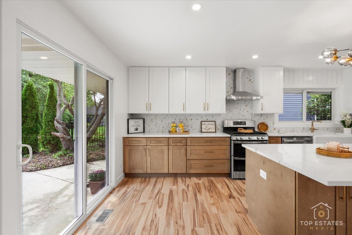 Start your next chapter here! Nestled in peaceful and highly desired Churchill neighborhood, this beautifully remodeled property at 1327 Churchill Rd, boasts a perfect blend of comfort and style. As you enter, you’re welcomed by a spacious foyer that leads into the bright and airy open-concept layout featuring a Dream kitchen with two tone 42 inch cabinets a massive quartz island, stainless-steel appliances and upscale finishes true out. Living room with plenty of natural light and electric fireplace is perfect for family gathering. This home features 4- generously-sized bedrooms with 2-full bathrooms, including a master suite with an ensuite bath. Step outside to your private backyard oasis, complete with a concrete patio perfect for entertainment and gatherings. RECENT UPDATES include: New front door(2025) New Anderson windows and patio slider(2025) New flooring(2025) New designer kitchen(2025) New stainless steel appliances(2025) New wine fridge(2025) New washer and dryer(2025) New electric fireplace( 2025) New interior doors(2025) New siding(2025) bathrooms remodeled with designer touches and whole house freshly painted true out. Don’t miss out on this opportunity to own this fully remodeled gem in one of most desired Schaumburg neighborhoods. Top rated schools with easy access to shopping, restaurants, parks, golf courses and mayor highways.