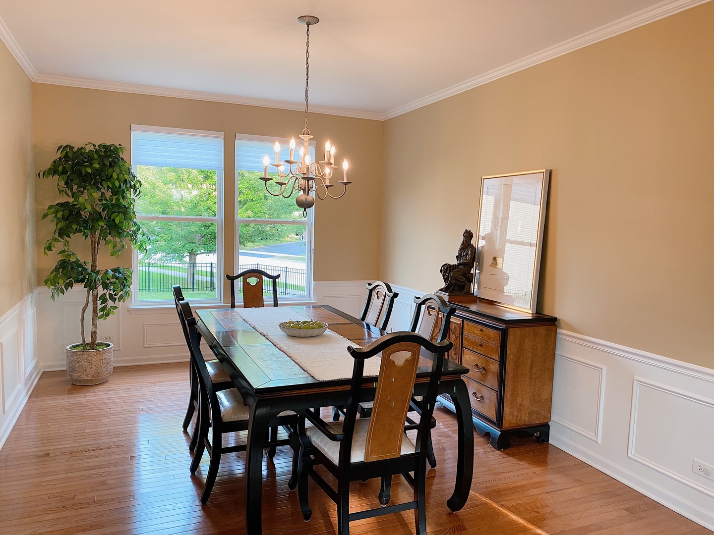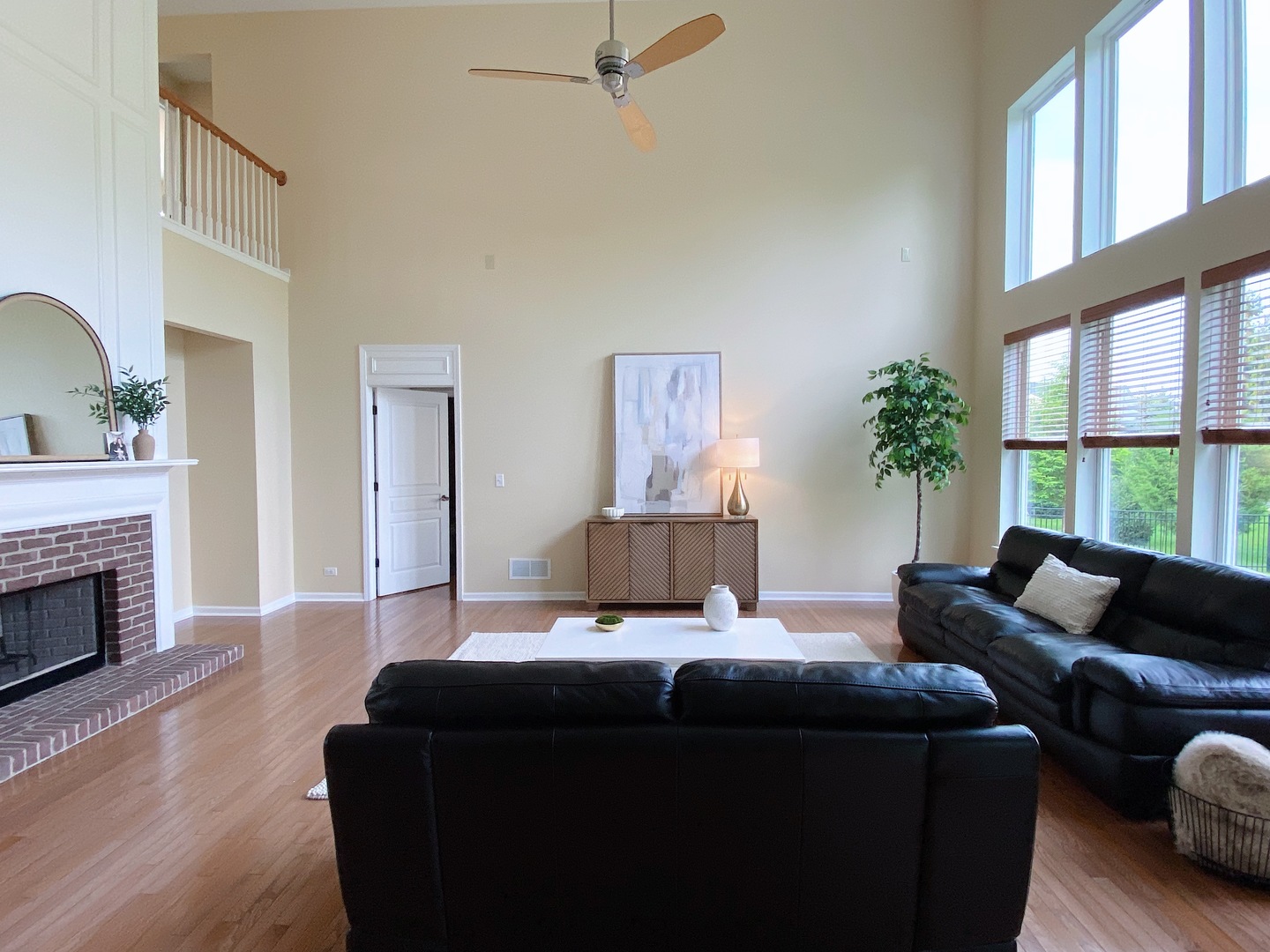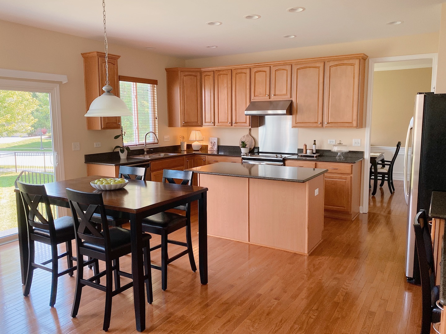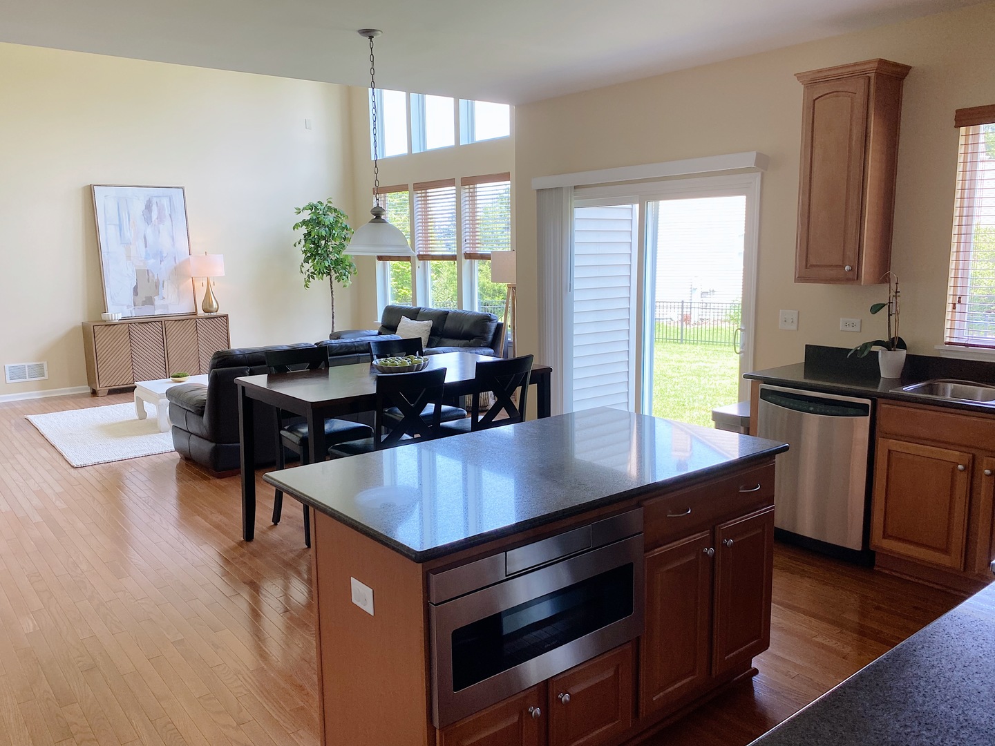 Welcome to this stunning home in the highly sought-after Hampton Reserve neighborhood-where luxury, comfort, and thoughtful design come together! Step inside to be greeted by a dramatic double foyer that sets the stage for the open and inviting floor plan. Rich hardwood floors extend throughout the entire first floor, complemented by impressive 9-foot ceilings that create an airy and elegant atmosphere. The formal living and dining areas provide the perfect setting for holiday celebrations, birthdays, or intimate gatherings. The spacious eat-in kitchen features granite countertops, abundant cabinetry, an upgraded exhaust system, and a luxurious built-in microwave drawer-combining sleek, modern convenience with a professional feel. The kitchen opens seamlessly into the expansive family room, which boasts eight large windows, bathing the space in natural light. Cathedral ceilings and a cozy gas-start fireplace complete this impressive central gathering area. A rare main-level in-law suite with a full bath offers incredible flexibility and is ideal for guests, extended family, or a home office. Upstairs, the luxurious primary suite is a true retreat, featuring hardwood floors, tray ceilings, a spa-like bathroom with a jacuzzi tub and separate walk-in shower, and his-and-hers walk-in closets. Nearly every bedroom includes a walk-in closet and two large windows, ensuring bright, light-filled spaces throughout. Three of the five bedrooms in this home feature hardwood flooring, offering both style and functionality. The full unfinished basement, with 9-foot ceilings, offers a blank canvas for a home theater, gym, play area, or storage-perfect for customizing to your needs. Many high end upgrades to include basement fresh air ventilation system with programable controls, Ecobee thermostats, AprilAire humidifier. The home sits on a prime corner lot, larger than most in the neighborhood, with a beautiful, professionally installed fence that enhances both privacy and curb appeal. This home is perfectly situated in a highly walkable neighborhood. A world-class park district facility is within walking distance, offering a gym, a variety of fitness classes, the Barefoot Bay water park, and tennis courts. Also within walking distance are a great daycare and preschool, Mechanics Grove Elementary School, and the Fremont Public Library. Excellent sidewalks and trails provide opportunities for daily walks, jogs, or bike rides-making it ideal for active families. Combining timeless finishes, modern updates, abundant natural light, and thoughtful design, this exceptional Pulte-built Devonshire model offers everything you need for comfortable, elegant living in one of the area’s most desirable neighborhoods.