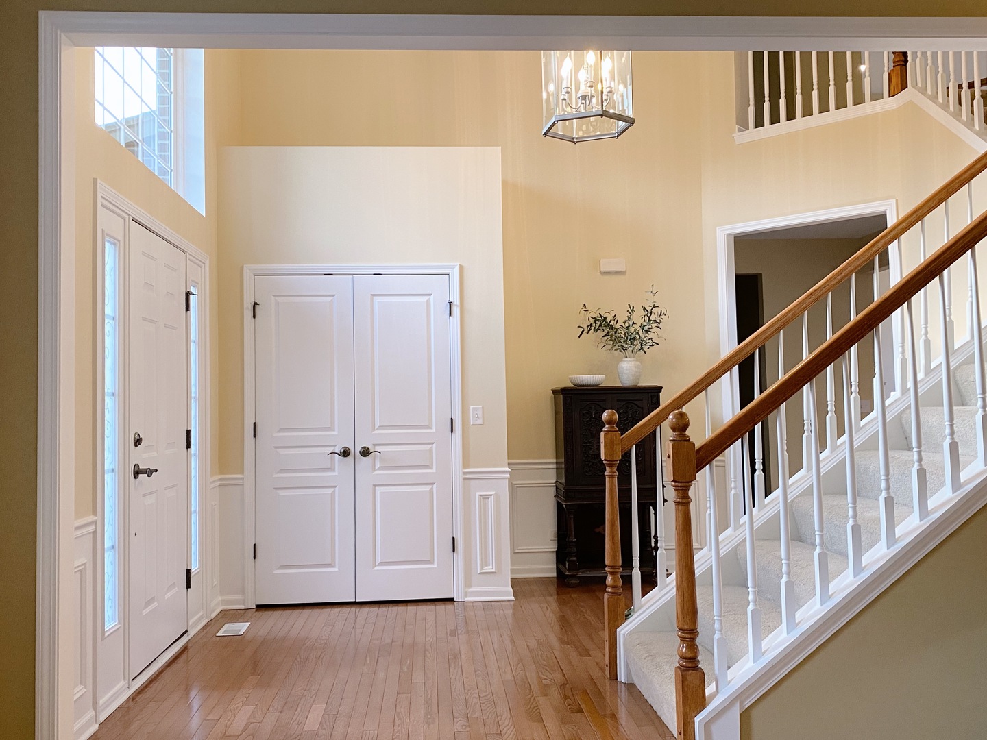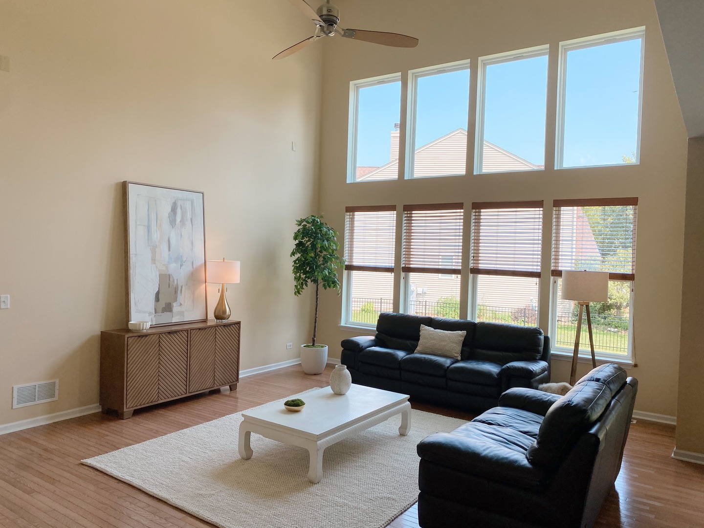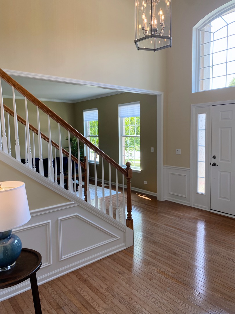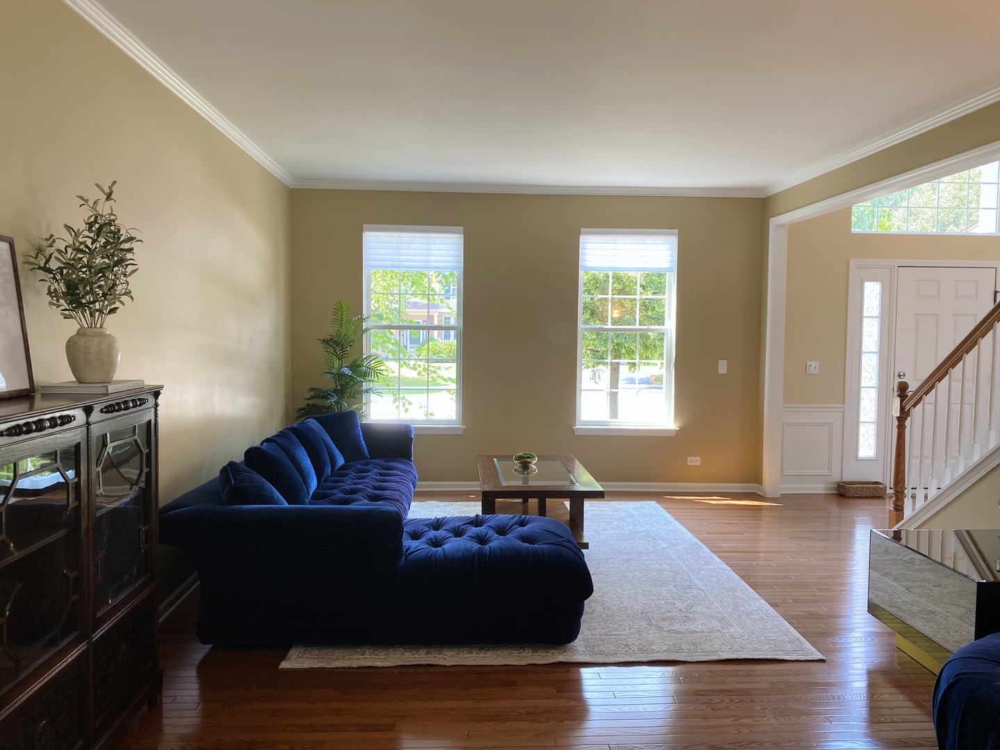 Welcome to this stunning home in the highly sought-after Hampton Reserve neighborhood-where luxury, comfort, and thoughtful design come together! Step inside to be greeted by a dramatic double foyer that sets the stage for the open and inviting floor plan. Rich hardwood floors extend throughout the entire first floor, complemented by impressive 9-foot ceilings that create an airy and elegant atmosphere. The formal living and dining areas provide the perfect setting for holiday celebrations, birthdays, or intimate gatherings. The spacious eat-in kitchen features granite countertops, abundant cabinetry, an upgraded exhaust system, and a luxurious built-in microwave drawer-combining sleek, modern convenience with a professional feel. The kitchen opens seamlessly into the expansive family room, which boasts eight large windows, bathing the space in natural light. Cathedral ceilings and a cozy gas-start fireplace complete this impressive central gathering area. A rare main-level in-law suite with a full bath offers incredible flexibility and is ideal for guests, extended family, or a home office. Upstairs, the luxurious primary suite is a true retreat, featuring hardwood floors, tray ceilings, a spa-like bathroom with a jacuzzi tub and separate walk-in shower, and his-and-hers walk-in closets. Nearly every bedroom includes a walk-in closet and two large windows, ensuring bright, light-filled spaces throughout. Three of the five bedrooms in this home feature hardwood flooring, offering both style and functionality. The full unfinished basement, with 9-foot ceilings, offers a blank canvas for a home theater, gym, play area, or storage-perfect for customizing to your needs. Many high end upgrades to include basement fresh air ventilation system with programable controls, Ecobee thermostats, AprilAire humidifier. The home sits on a prime corner lot, larger than most in the neighborhood, with a beautiful, professionally installed fence that enhances both privacy and curb appeal. This home is perfectly situated in a highly walkable neighborhood. A world-class park district facility is within walking distance, offering a gym, a variety of fitness classes, the Barefoot Bay water park, and tennis courts. Also within walking distance are a great daycare and preschool, Mechanics Grove Elementary School, and the Fremont Public Library. Excellent sidewalks and trails provide opportunities for daily walks, jogs, or bike rides-making it ideal for active families. Combining timeless finishes, modern updates, abundant natural light, and thoughtful design, this exceptional Pulte-built Devonshire model offers everything you need for comfortable, elegant living in one of the area’s most desirable neighborhoods.