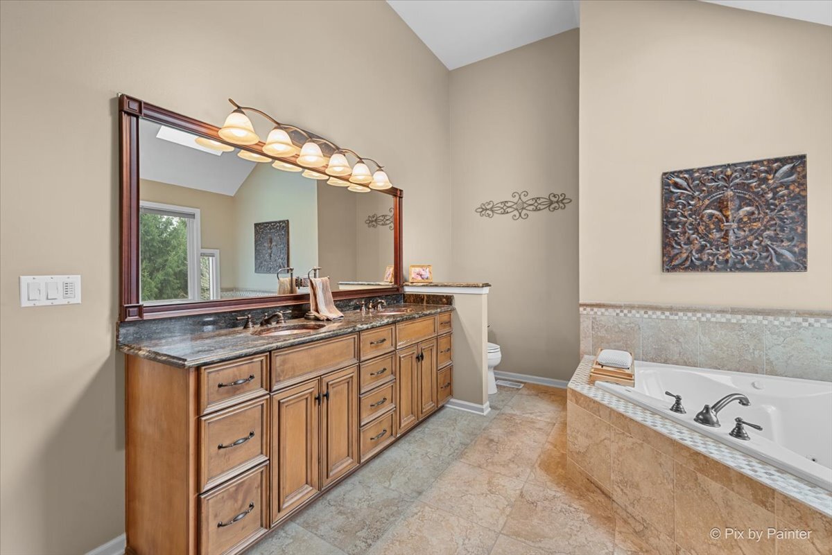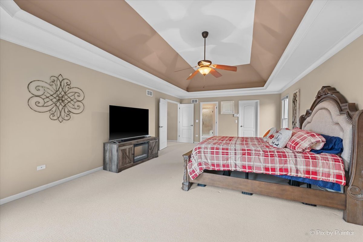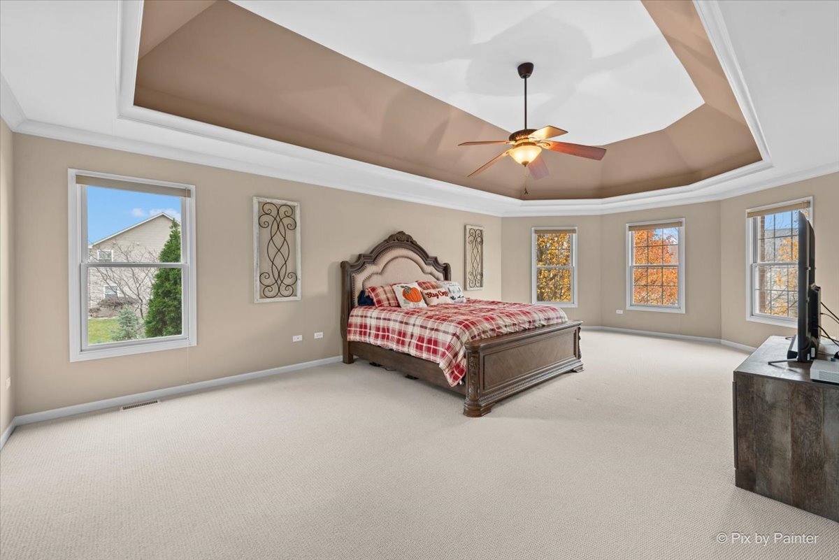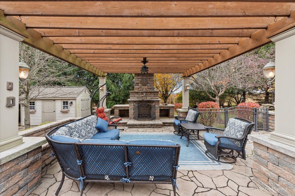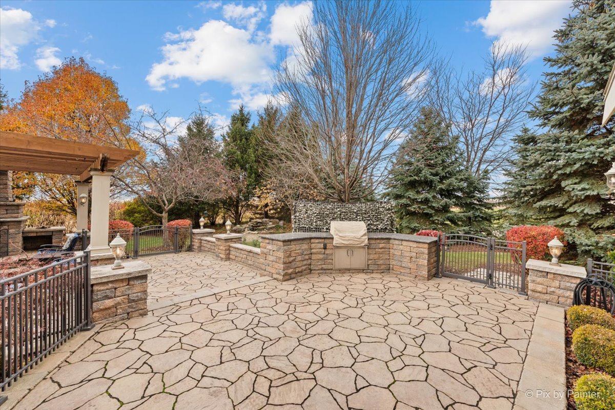 Prepare to experience unmatched craftsmanship and luxury at 13302 Rosewood Lane-an extraordinary custom-built estate in Plainfield’s prestigious Oswego School District. Situated on a beautifully landscaped corner lot, this residence offers a level of refinement, design, and privacy rarely found. From the moment you arrive, the elegance is undeniable. A full paver brick driveway, front entry, and walkways lead you to an impressive exterior with Pella windows, new roof (2022), and magazine-worthy outdoor living spaces. The resort-style backyard features an 800 sq. ft. flagstone and paver patio, full electric, custom wood pergola with lighting, built-in granite outdoor kitchen island with attached grill, brick fireplace, ceiling fan, shed, and a fully fenced yard with aluminum fencing-all overlooking tranquil cornfield views that provide total privacy. Inside, the attention to detail is exceptional. The home showcases French molding, custom wall textures and designer paint, high-end chandeliers, professional floor-to-ceiling drapery, and extensive millwork throughout. On the first Floor, a private office/5th bedroom and 1st floor full bathroom are an asset to the floorplan. The dramatic 2 story (20 foot ceilings) great room features a striking fireplace with wood mantle piece and oak crown molding, creating a breathtaking focal point. The gourmet kitchen is a showstopper- professionally remodeled with Brakur custom cabinetry, two expansive granite islands (including a prep sink), Viking appliances, wine refrigerator, custom backsplash with pot filler, under-cabinet lighting, and a bay window overlooking the serene backyard. A custom wet bar with Brakur cabinetry and beverage/wine fridge. Every element was designed to blend performance with luxury. The formal dining room impresses with a cathedral ceiling and custom trim, while the main-level office/den features rich custom paneling. Crown molding and recessed lighting run throughout the first floor. Retreat to an extraordinary 400 sq. ft. primary suite, complete with an oversized walk-in closet and a spa-inspired bathroom. All bathrooms in the home are finished with copper sinks, adding a warm, elegant touch. The finished basement is an entertainer’s dream, offering a brand-new state-of-the-art theater room, extreme high-end sound system, fully hardlined Klipsch speaker system, optional HDMI projection line, billiard room with dart wall. Theater and billiard room walls are fully insulated for superior sound dampening. Basement adds an additional 2,000sf of living space, bringing the whole square footage of the house to 6000sf. Mechanical and security upgrades include: * 2 York furnaces (2020) * 2 air conditioners (2020) * Central humidifier (2020) * Backup generator * CCTV surveillance system with DVR * Professional alarm system with motion & glass breaks (2 panels, $12k+) Car enthusiasts will appreciate the professionally finished garage featuring commercial-grade epoxy flooring, professional garage doors, wall-mounted TV, Chamberlain MyQ smart openers with battery backup, and a 6,000 lb single-post car lift. Additional highlights include professional landscaping surrounding the entire property, specialty trees and fruit trees, custom blinds and valances, recessed lighting, and superior construction throughout. Located minutes from shopping, dining, parks, and I-55, this home offers luxury, privacy, and convenience in one remarkable package. A showpiece property-truly a must-see for the luxury buyer.