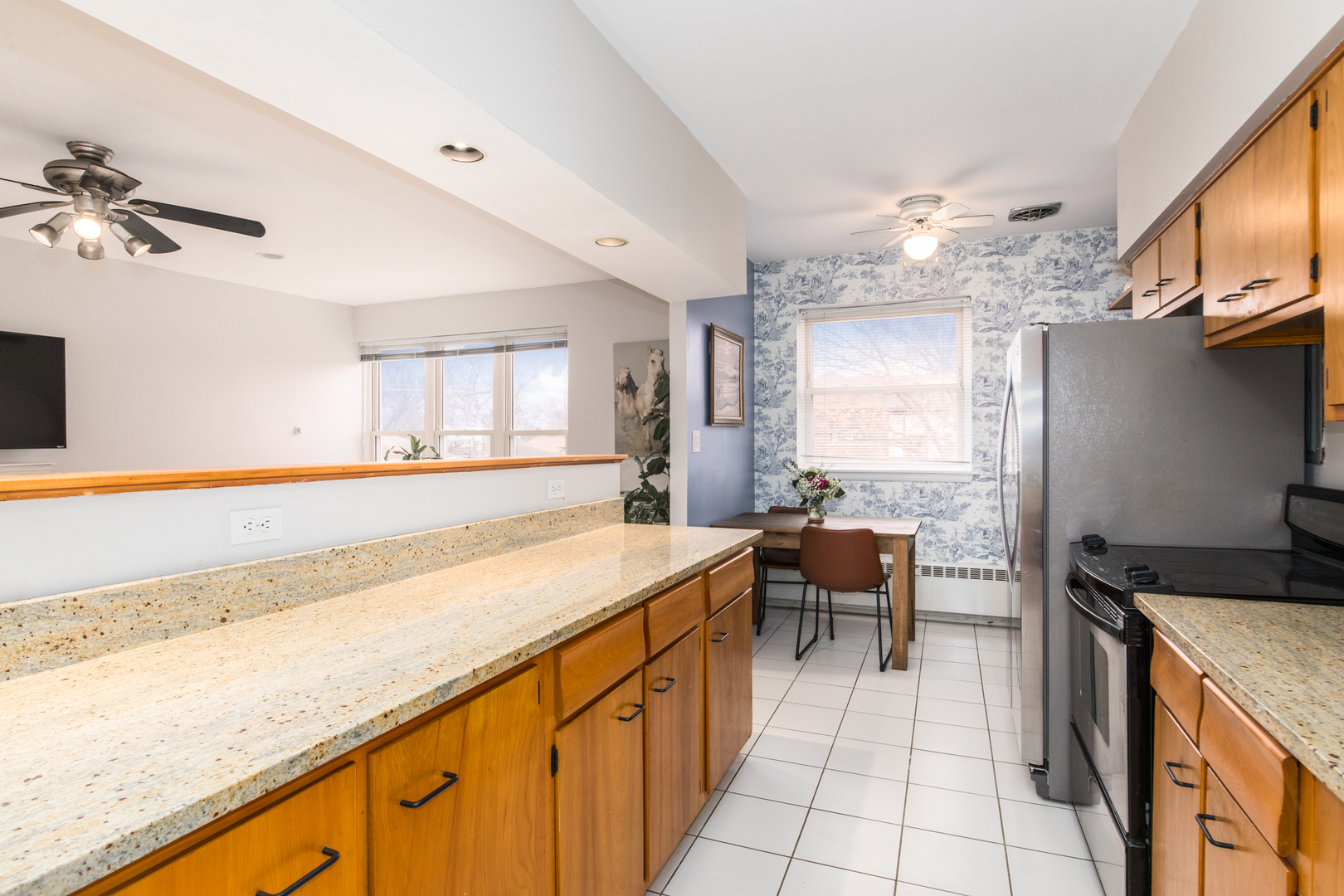 Welcome home to this bright, freshly painted 1-bed/1-bath condo offering 850 sq ft of comfortable living in a prime Park Ridge location. Enjoy easy access to the Metra, Pace buses, restaurants, entertainment, fitness centers, and more. This rarely available top-floor end unit includes two parking spots-one in the heated garage and one outdoor space. Rent one or both for extra income if desired. The building features an elevator, coin laundry, and assigned storage (#5). Inside, you’ll find a spacious, open kitchen with abundant cabinets and counter space-perfect for cooking and entertaining. Bonus: Gorgeous sunset viewing.