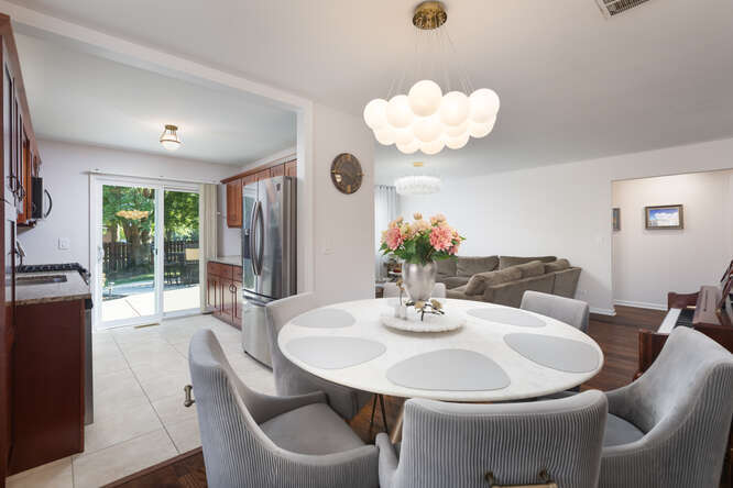 Move-in ready and full of charm, this updated North Naperville ranch is a must see. Perfectly situated next to Springhill Park, the 3 bedroom home showcases a welcoming open floor plan with wide-plank hardwood floors (2023), cherry cabinets, granite countertops, and stainless steel appliances including a refrigerator (2021) and oven/range (2023). The family room centers around a cozy fireplace. Beautiful travertine tile with heated floors in the full bathroom. Other nice features are: tankless water heater, heated/cooled garage, washer/dryer (2023), driveway was redone in 2021 and sealcoated annually for easy upkeep. Outside, the corner lot shines with a fenced yard, expansive patio, and storage shed all with direct park access. Just minutes from downtown Naperville, the Metra, shopping, and top-rated District 203 schools, this home blends comfort, updates, and an unbeatable location.