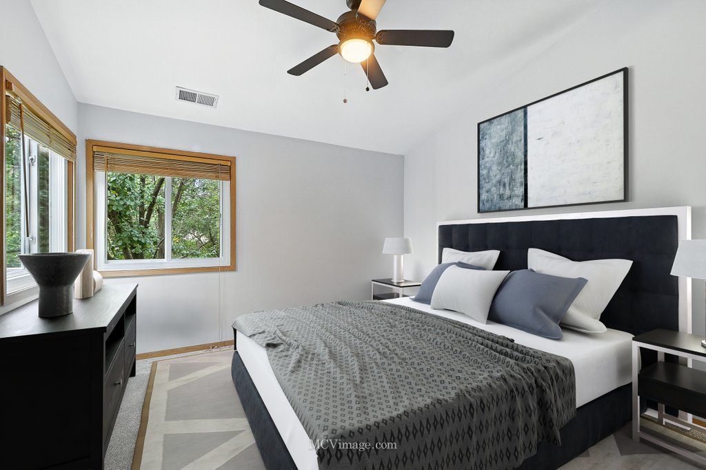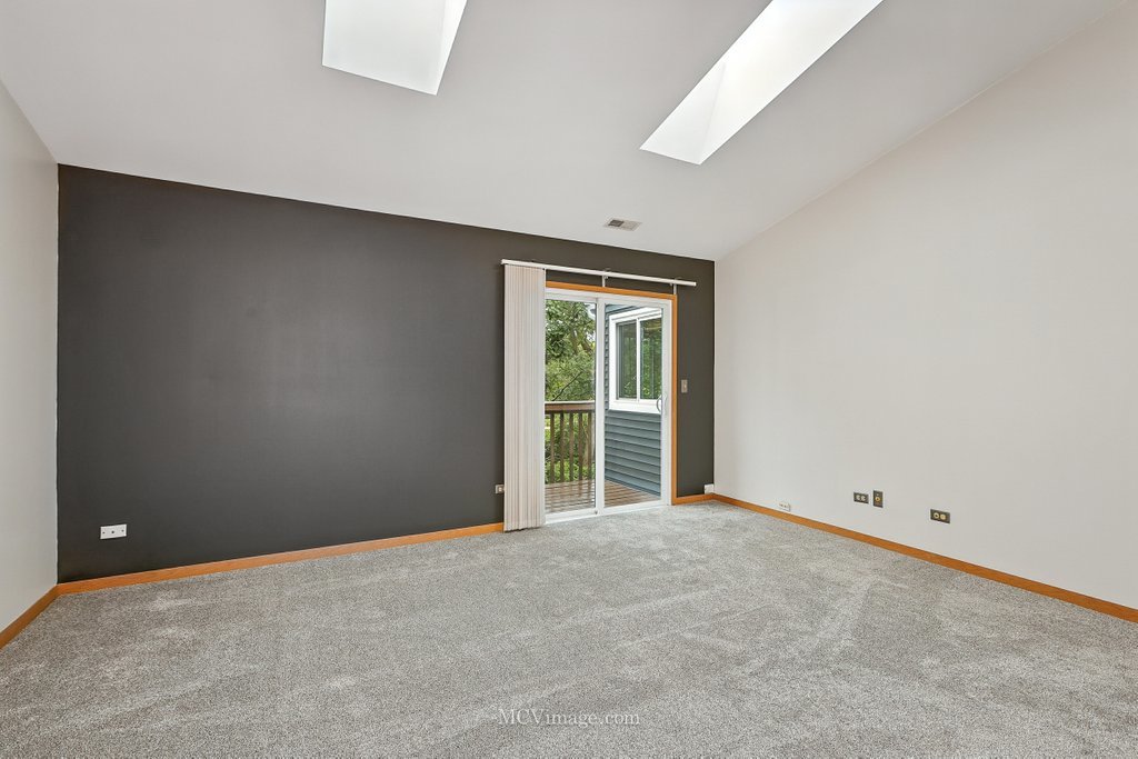 Beautiful RANCH-style condo nestled on a premium lot with wooded views in the Villages of Woodridge subdivision. Dramatic vaulted ceilings and soothing neutral tones create an open, airy atmosphere in this 2 bedroom, 1 bath 2nd floor condo. Inviting 2 story foyer welcomes you inside this well maintained, move-in ready home. The spacious, sun-filled family room has vaulted ceilings featuring 2 NEWER skylights with remote controlled blinds. Relax on the deck that overlooks mature trees and landscaping offering a peaceful setting. The charming eat-in kitchen showcases NEW luxury vinyl floors (2025), ample wood cabinetry, all appliances (including a newer stainless steel refrigerator 2023) and a pantry closet. Retreat to the primary bedroom suite which includes a large walk-in closet for plenty of storage. The updated bathroom features sleek shower tile and a deep Kohler soaking tub for relaxation. Comfortable 2nd bedroom with a wall closet. Convenient in-unit laundry closet with shelves for extra storage. Enjoy the beautifully landscaped front yard with perennials and mature bushes. Direct access to a 1-car attached garage with shelving for storage. UPDATES INCLUDE: ALL windows (2024), skylights (2023), carpeting and kitchen floor (2025), air conditioner (2021), refrigerator (2023), garage door and opener (2023), exterior siding, soffits and gutters (2025 – (seller paid $4K special assessment in full) and asphalt driveway (2022). Prime location near Woodridge Public Library, Woodridge Park District, schools, shopping, dining and more. Move right in and enjoy!