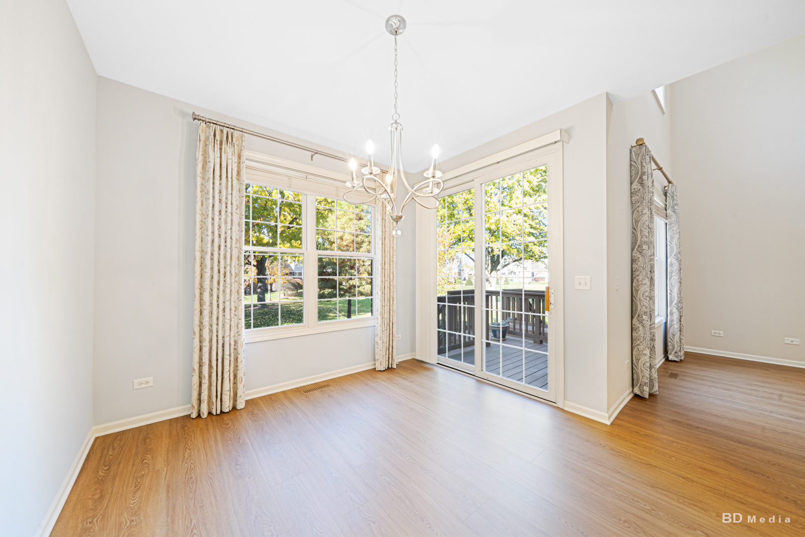 Step up to elegance in the highly desirable Forest Ridge subdivision, where this beautiful townhouse promises to delight at every turn. From the moment you step inside, you’ll be swept away by the grandeur of the Living Room, featuring soaring two-story ceilings and a gracefully designed open staircase that invites exploration to the second floor. This home features an upscale kitchen, completely renovated in 2022, boasting gleaming white cabinetry paired with brushed gold hardware, complemented by quartz countertops and a stunning backsplash. The eat-in area, enhanced with new navy cabinetry, seamlessly connects to the formal dining room, providing access to a deck that offers endless views of the lush, expansive landscaping behind the property. Ascend upstairs to discover the expansive Primary Suite, featuring a vaulted ceiling and a private, updated (2019) Bath, complete with a whirlpool, a separate shower, and a luxurious double bowl vanity. The suite also includes the convenience of double walk-in closets. The second bedroom, a versatile loft area, and the laundry room are also conveniently located on this second floor. Relax and unwind in the beautifully finished basement, which includes a third bedroom and a full bath. The property also includes a 2-car garage, and for added peace of mind, the HVAC system and water heater were replaced in 2023, while the roof was installed in 2020.