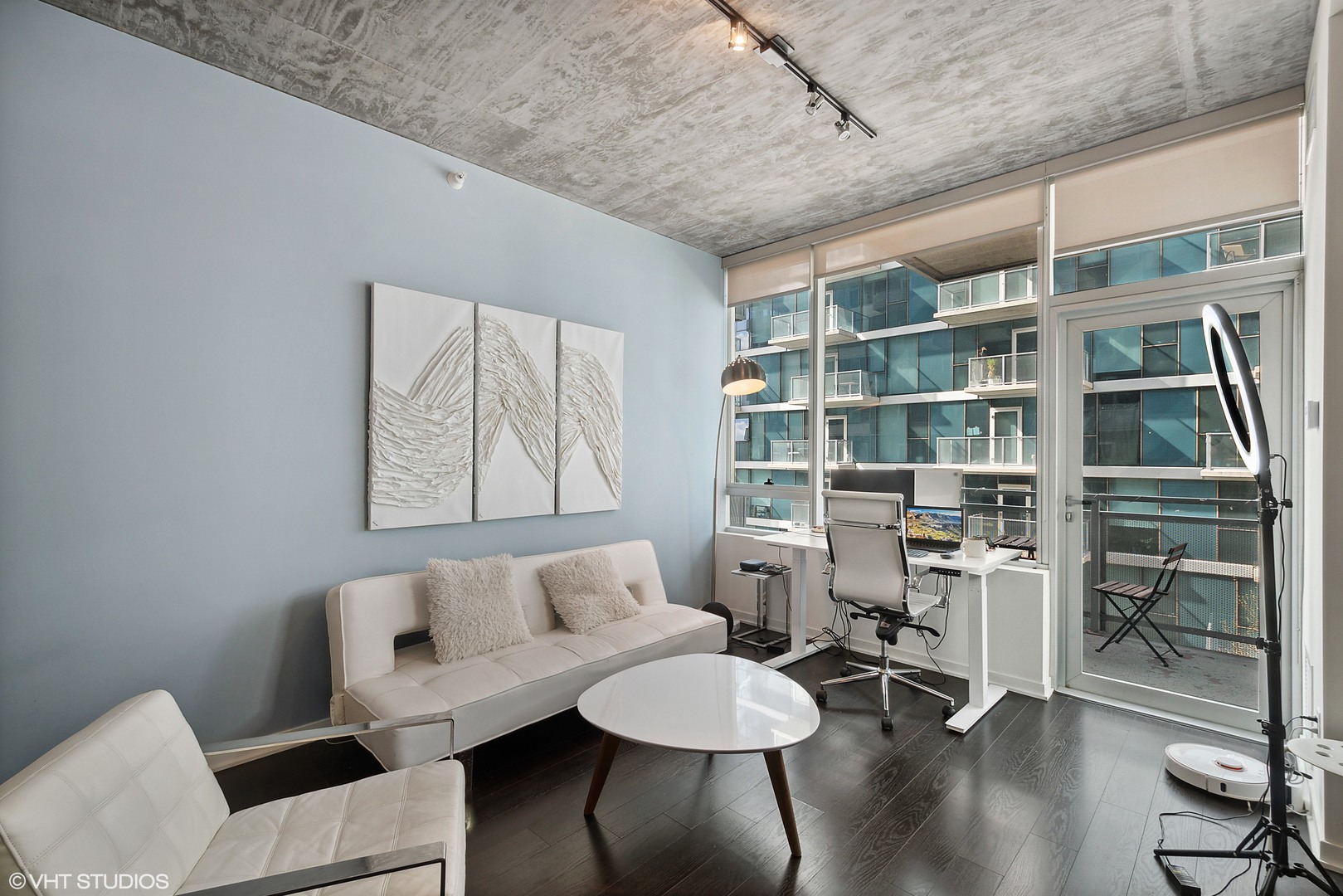 This contemporary residence offers the perfect blend of urban convenience and modern comfort. One bedroom plus the den area for an office space. LEED certified building. Featuring an open-concept layout with high ceilings, floor-to-ceiling windows, and sleek finishes. The modern kitchen boasts stainless-steel appliances, quartz countertops, and ample storage, seamlessly connecting to the living and dining area – ideal for both relaxation and entertaining. Enjoy the comfort of a spacious bedroom, in-unit laundry, and a private balcony overlooking Chicago’s dynamic skyline. No rental cap. Perfect for homeowners and investors alike.