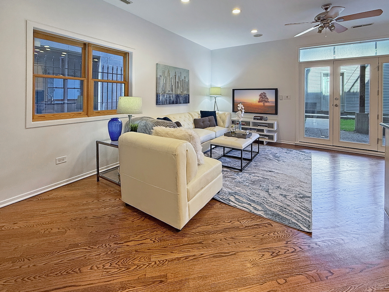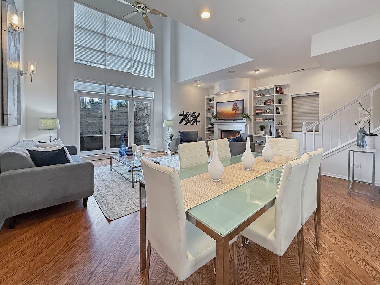 Old Town oversized duplex-down that lives like a single-family! Featuring 3 bedrooms, 3 full baths, and 3 amazing outdoor spaces, this home checks every box. Flooded with natural light from a west-facing wall of windows and dramatic 20′ ceilings, the open layout is both stylish and functional. A lofted den offers the perfect spot for a home office or cozy lounge. The sprawling primary suite boasts two walk-in closets and private deck access. Upstairs also includes a spacious 2nd bedroom, full bath, and a huge storage closet. The lower level is built for entertaining with a dramatic living/dining area, soaring ceilings, gas fireplace, and custom built-ins. The large kitchen flows seamlessly into the family room, creating a true “great room” feel. Outdoor living is complete with front and back patios. Hardwood floors throughout, tons of storage, and garage parking included. All in a prime Old Town location-steps to shopping, dining, grocery, public transit, and the expressway. Incredible value for the space, location, and features-schedule today!