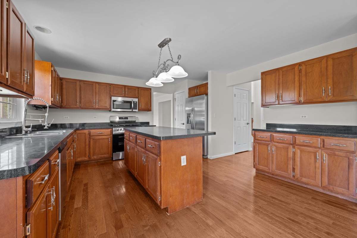 Welcome to this brick and stone home with beautiful pond views. A dramatic two story entrance with curved staircase greets you as you enter. Hardwood floors flows though out the first and second floor. French doors open to the first floor office. Entertain family and friends in your formal living and dining room. The kitchen is highlighted with a center island, all new stainless steel appliances and large eating area. Beautiful pond views can be enjoyed from this spacious two story family room which highlights an addition staircase leading to the second floor. The master suite has 2 walk in closets, private bath with corner tub, separate vanities and a shower. All bedrooms have ceiling fans. The bonus room provides you with a second floor living area or could be used for a fifth bedroom. You will enjoy the peaceful setting of this home with the beautiful pond views. New roof and hot water heater in 2024.