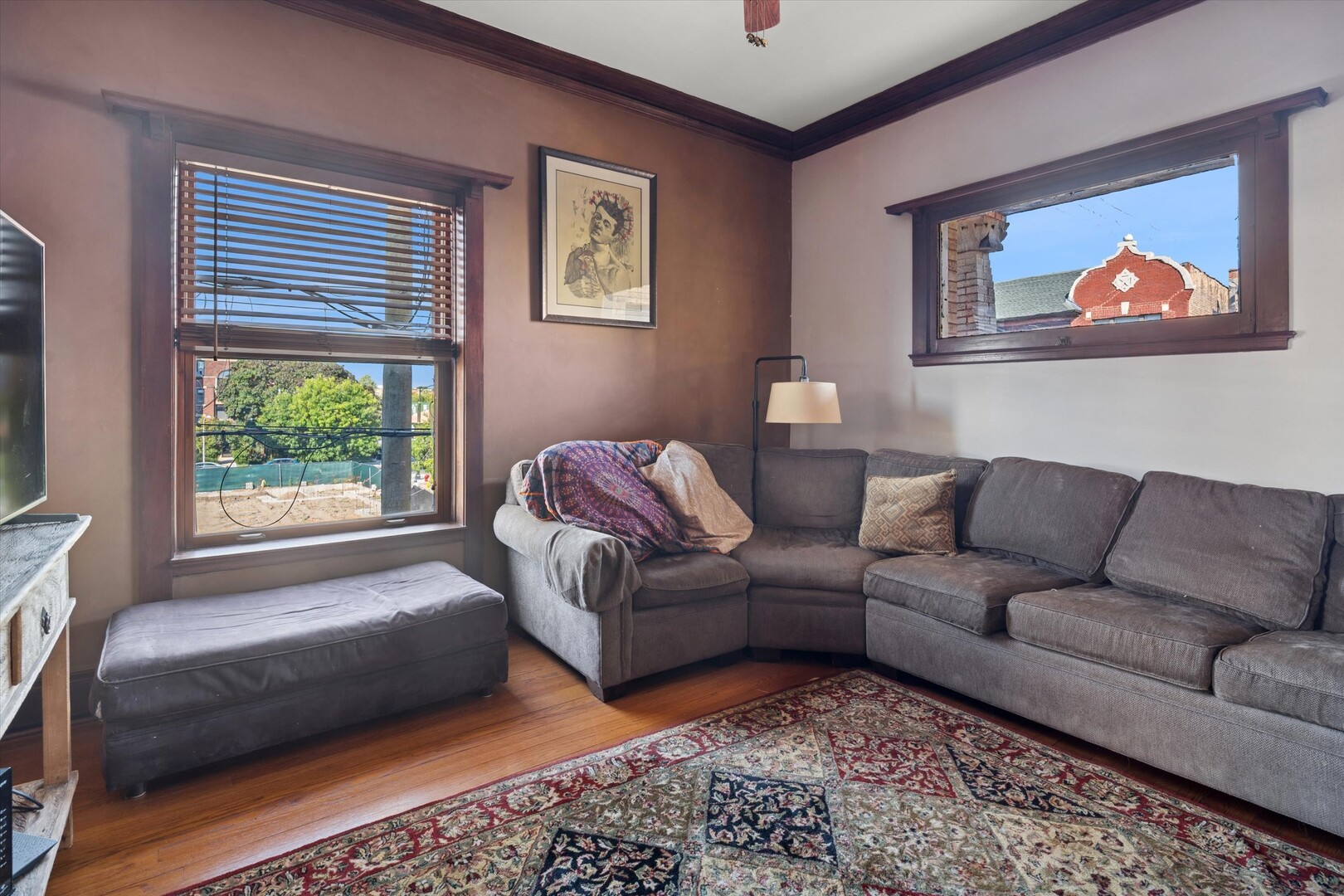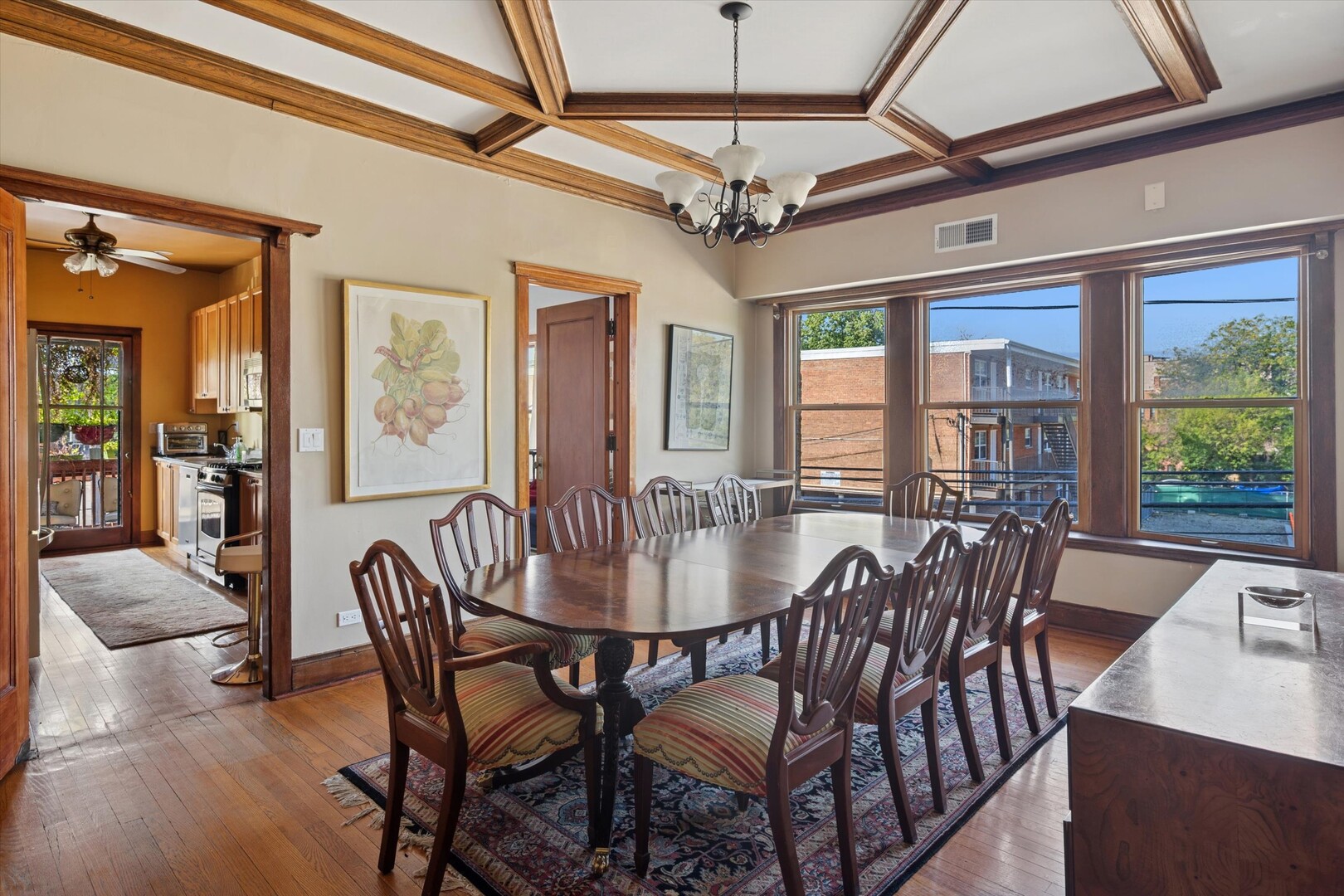 Welcome to your new home in the heart of historic Sheridan Park! This stunning three-bedroom, two-bath condo perfectly blends vintage charm with modern updates. The soaring ceilings and hardwood floors add to the elegance of the space, while charming original built-in cabinets and woodwork offer a nod to the home’s rich history. The primary en-suite offers privacy when guests stay over. The kitchen features tall cabinets and granite countertops and leads into the large dining room with beautiful coffered ceilings. Enjoy THREE outdoor spaces- a back deck, front porch with original tiles, and common rooftop deck with skyline views. Solid building with healthy reserves and low assessment. The unit comes with huge storage space in the basement. Rented parking available across the alley behind the building. Desirable location close to coffee shops, restaurants, the Red Line, Clark bus, and a short jaunt to the lake and nearby Andersonville.