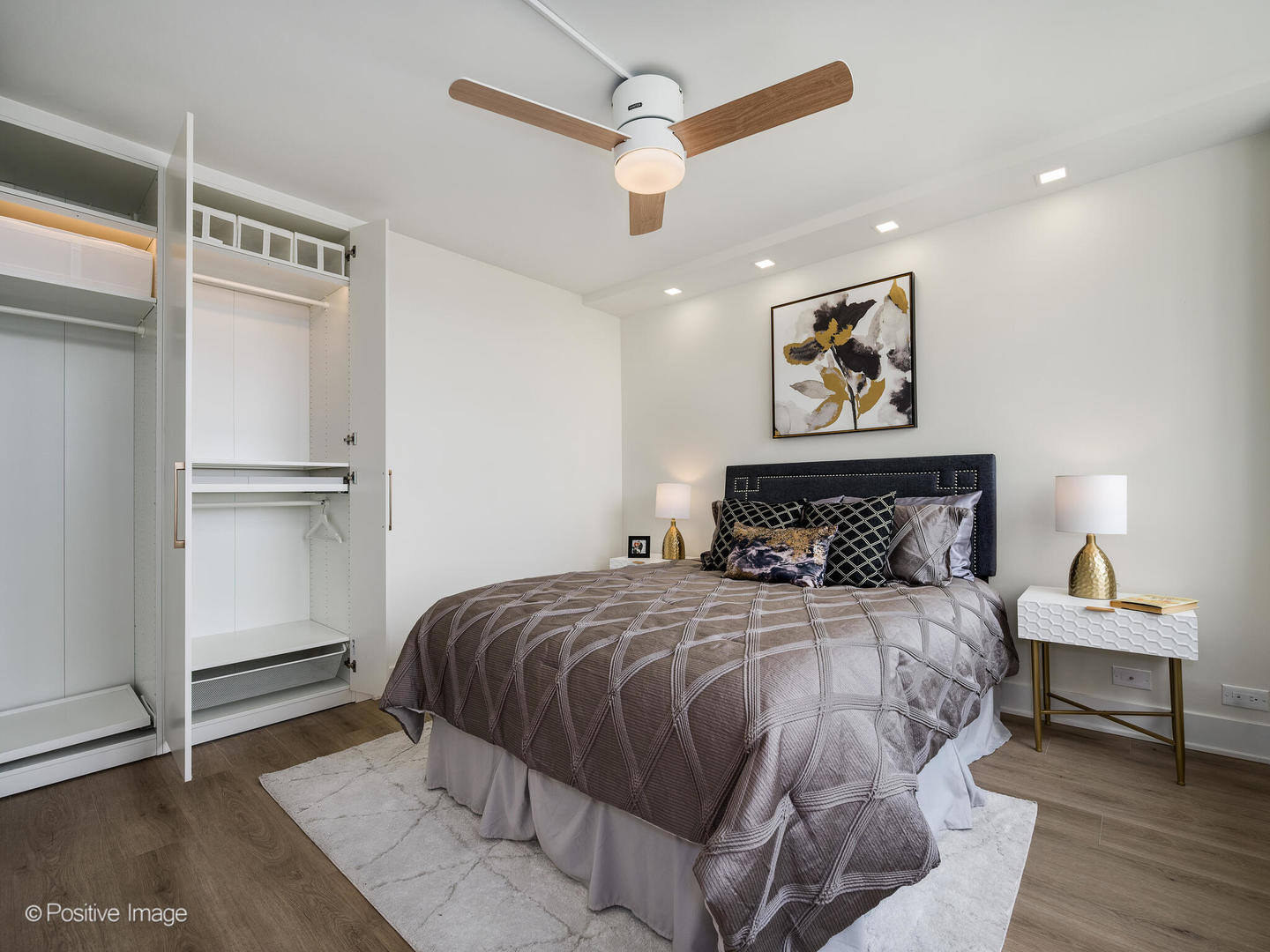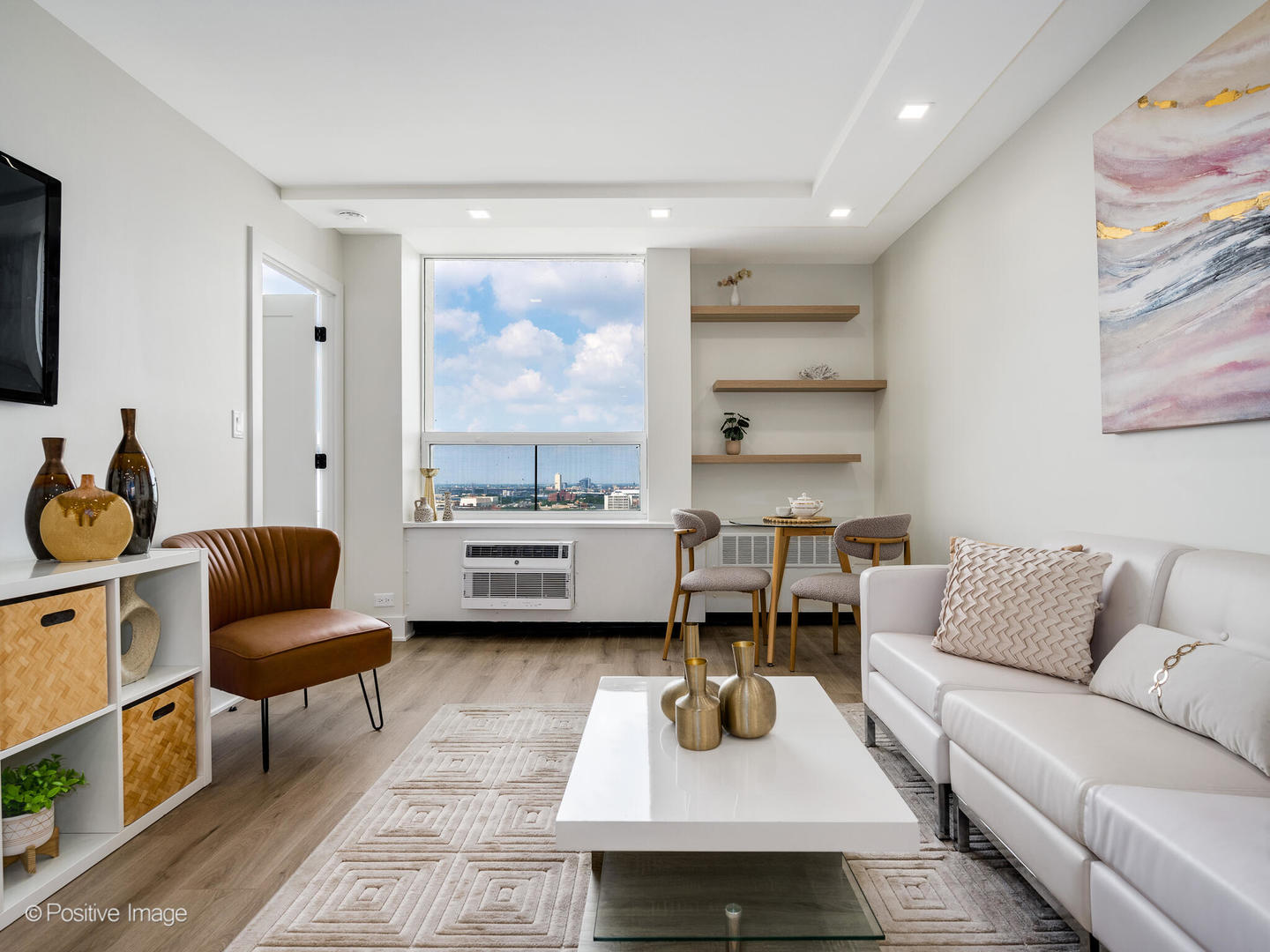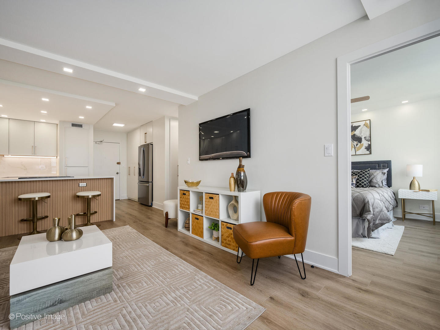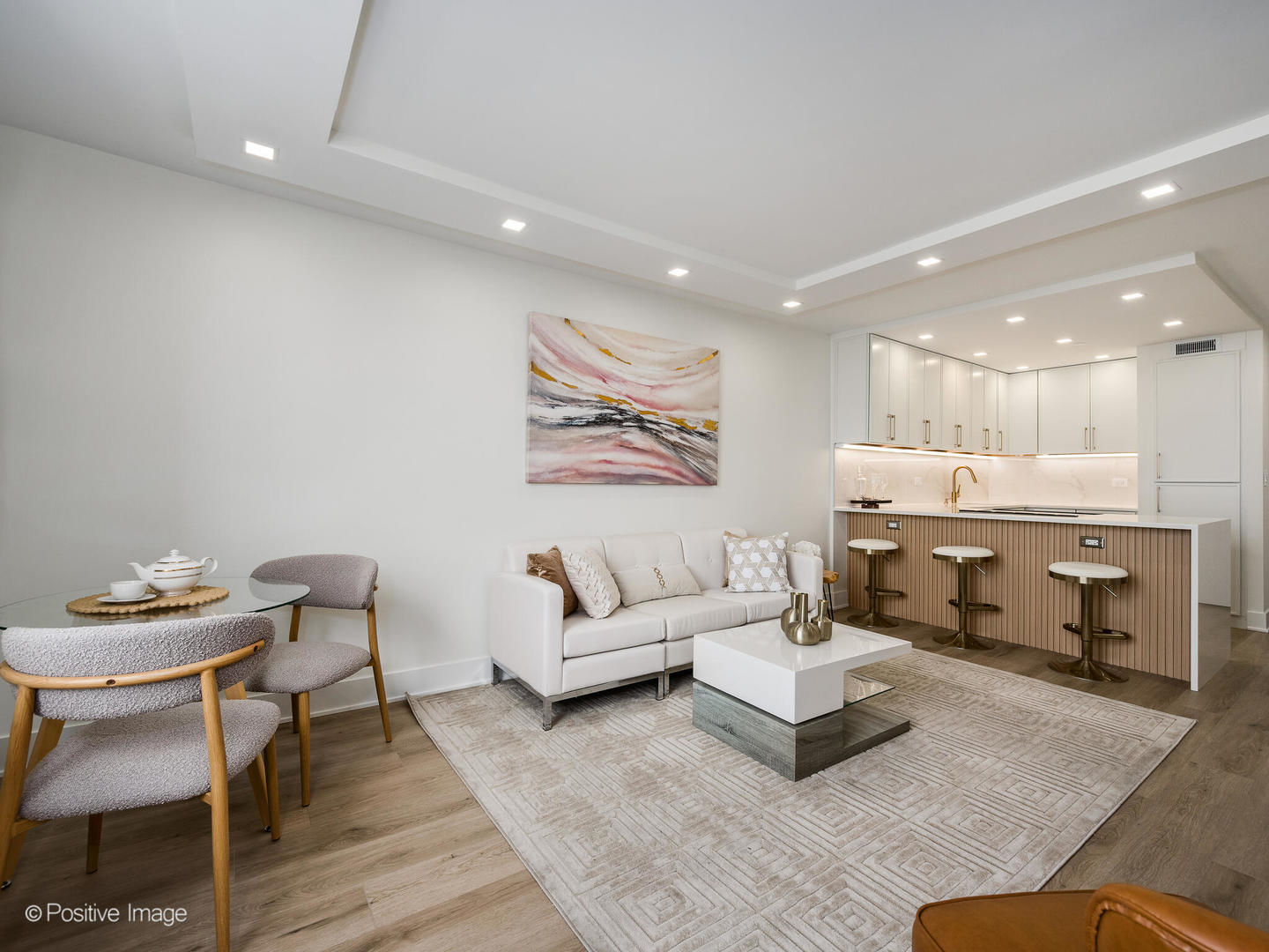 Presenting this stunning brand new gut rehabbed one bedroom condo in Dickinson House, Sandburg Village – Ideally located between Old Town & Gold Coast. The 17th floor unobstructed western exposure provides lots of natural light and vast open views over the city and stunning sunsets. Be the first to live in this unit that has been meticulously renovated and is very well appointed with top quality and tasteful finishes- The kitchen has custom white slim shaker cabinets with gold accent hardware and fixtures, under cabinet led lighting, quartz counters & peninsula with breakfast bar and waterfall end, overhead recessed lights. High end appliances including Bosch built-in panel dishwasher, french-door refrigerator, microwave drawer. Bathroom has a new walk-in shower with sliding glass door, black/gold accented hardware & fixtures, finished with contemporary tiles. Throughout the unit there are wide plank natural wood color floors, specialized paint used with air sanitizing technology. There are plentiful closets, all are professionally organized. New electrical and plumbing. Monthly assessment includes heat, Direct TV (200+ channels) and internet service (1GB!), everything except electricity. Dickinson House is a well run building with good reserves, many recent major updates completed including new elevators and renovated hallways and building facade work. No specials. Great amenities- Sandburg Village has 2 Olympic size outdoor heated swimming pools with sundecks, tennis courts & pickle ball. The landscaped courtyards, play lot, commercial facilities provide a welcoming community environment. The building has door-person, onsite maintenance team and management, a rooftop deck, additional storage cage (provided with unit), bike room. Garage parking in this building is all leased and currently has a waitlist. Convenient for transportation – 1 block to train/subway, buses, Lake Shore Dr, bike path. Close to Old Town, downtown, Lincoln Park. Enjoy all attractions of the neighborhood – restaurants, nightlife, shopping/grocery, Lakefront trail, beach, parks. Pets allowed.