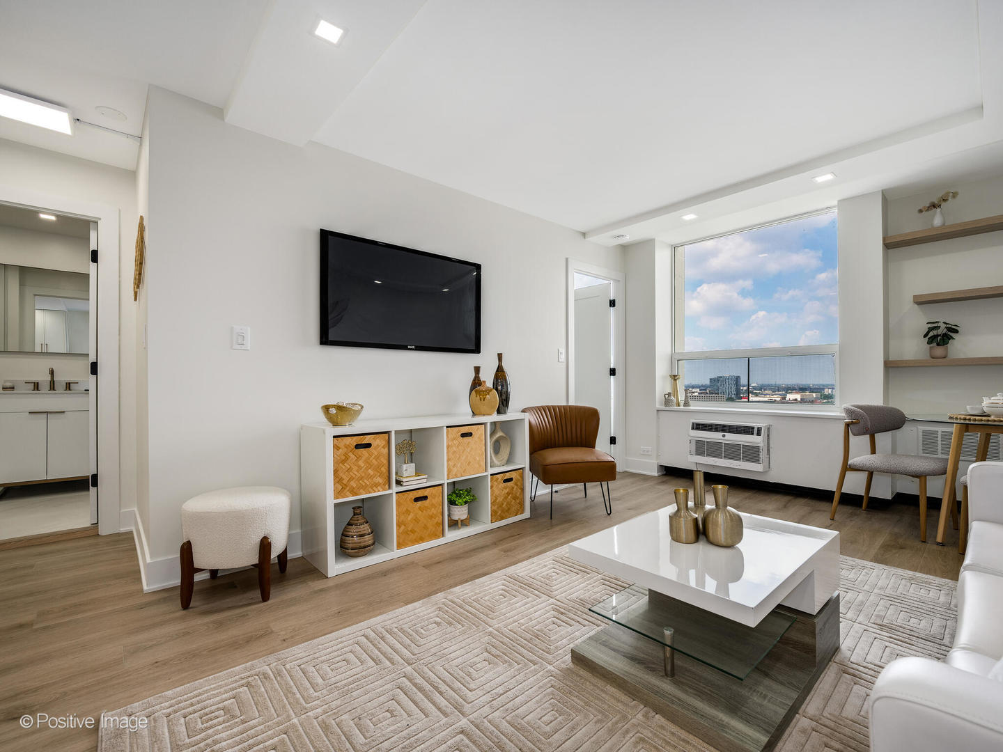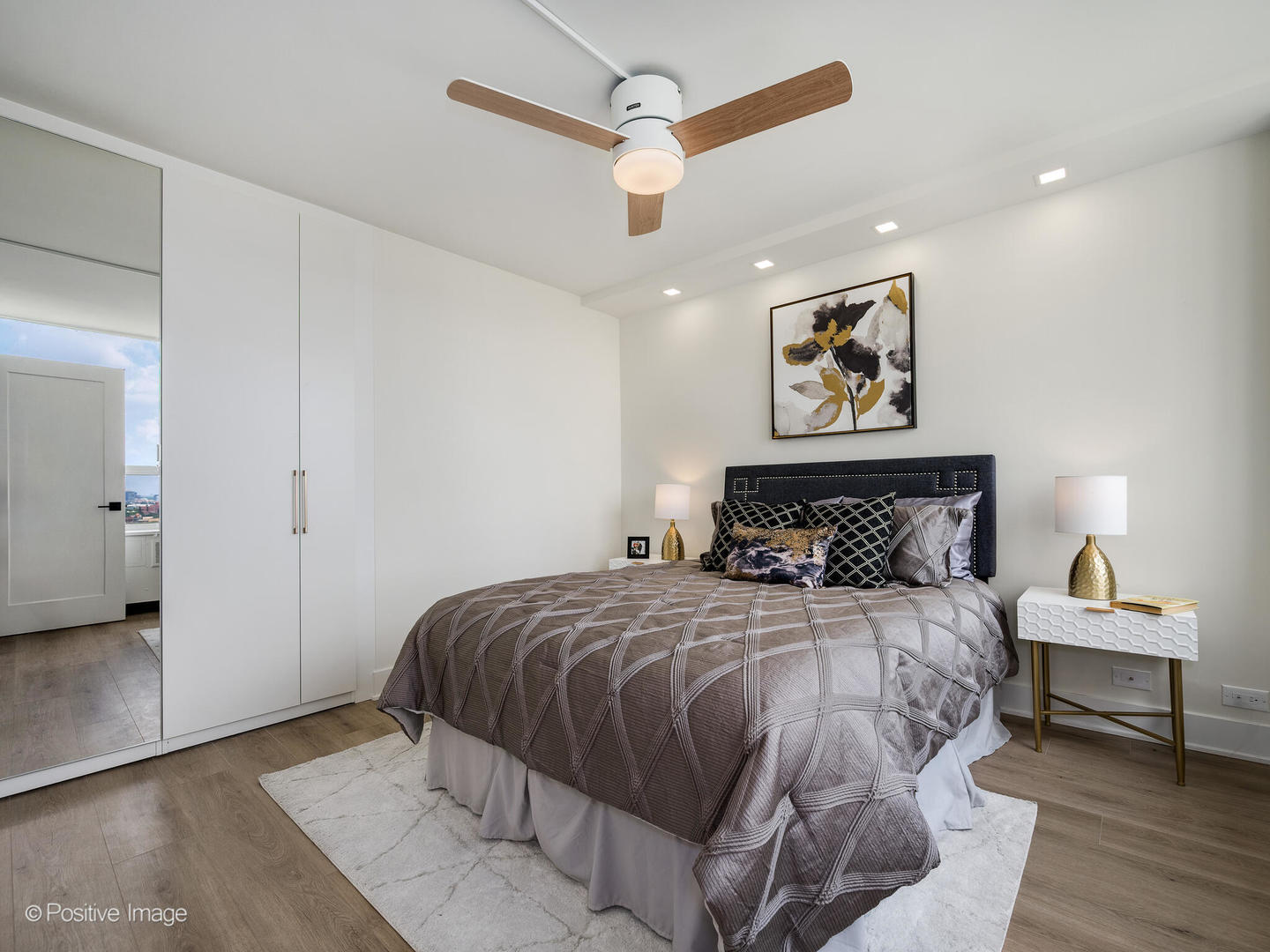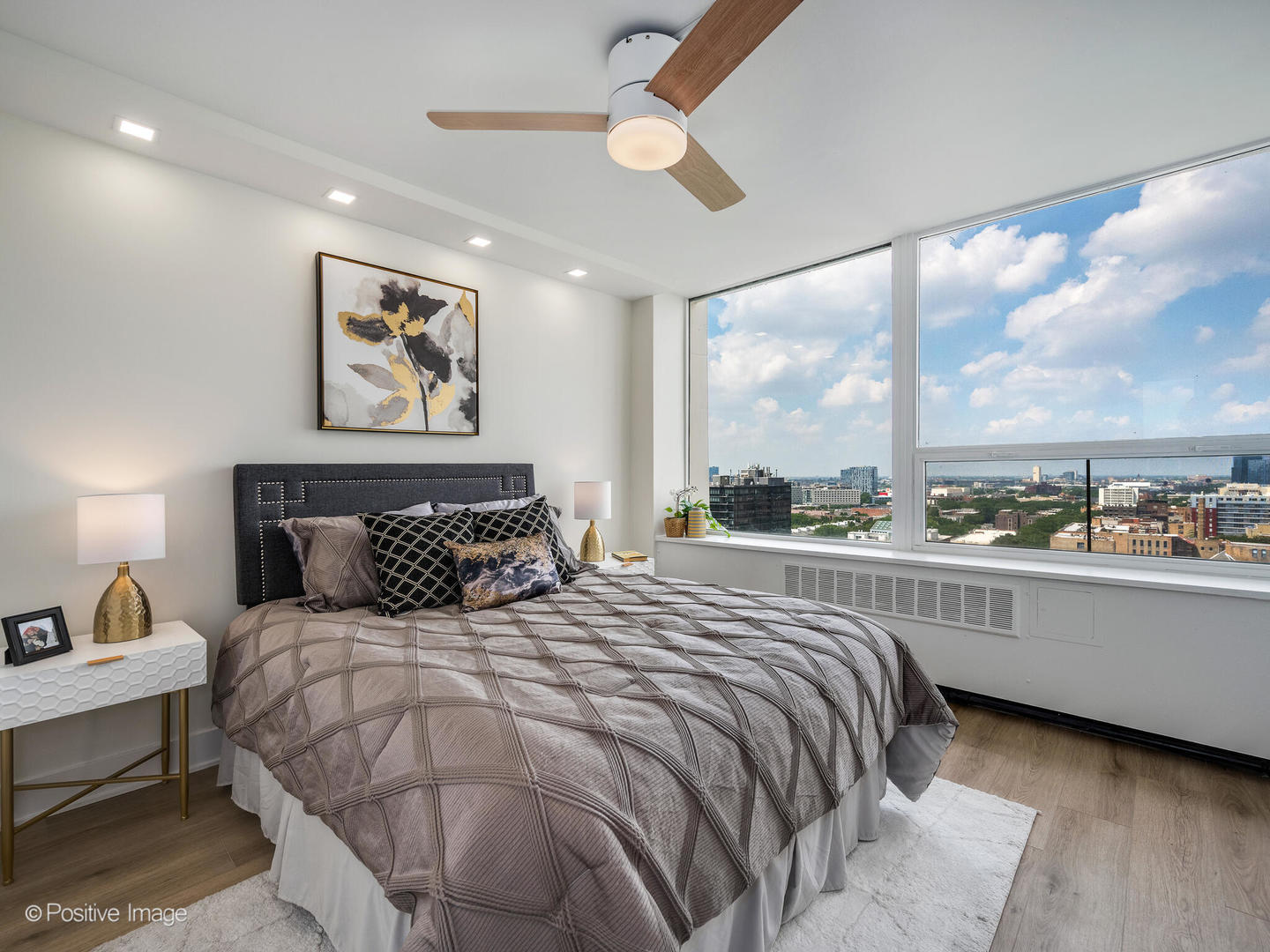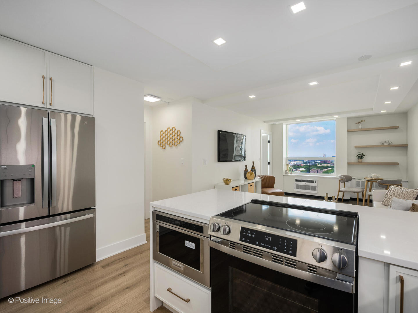 Presenting this stunning brand new gut rehabbed one bedroom condo in Dickinson House, Sandburg Village – Ideally located between Old Town & Gold Coast. The 17th floor unobstructed western exposure provides lots of natural light and vast open views over the city and stunning sunsets. Be the first to live in this unit that has been meticulously renovated and is very well appointed with top quality and tasteful finishes- The kitchen has custom white slim shaker cabinets with gold accent hardware and fixtures, under cabinet led lighting, quartz counters & peninsula with breakfast bar and waterfall end, overhead recessed lights. High end appliances including Bosch built-in panel dishwasher, french-door refrigerator, microwave drawer. Bathroom has a new walk-in shower with sliding glass door, black/gold accented hardware & fixtures, finished with contemporary tiles. Throughout the unit there are wide plank natural wood color floors, specialized paint used with air sanitizing technology. There are plentiful closets, all are professionally organized. New electrical and plumbing. Monthly assessment includes heat, Direct TV (200+ channels) and internet service (1GB!), everything except electricity. Dickinson House is a well run building with good reserves, many recent major updates completed including new elevators and renovated hallways and building facade work. No specials. Great amenities- Sandburg Village has 2 Olympic size outdoor heated swimming pools with sundecks, tennis courts & pickle ball. The landscaped courtyards, play lot, commercial facilities provide a welcoming community environment. The building has door-person, onsite maintenance team and management, a rooftop deck, additional storage cage (provided with unit), bike room. Garage parking in this building is all leased and currently has a waitlist. Convenient for transportation – 1 block to train/subway, buses, Lake Shore Dr, bike path. Close to Old Town, downtown, Lincoln Park. Enjoy all attractions of the neighborhood – restaurants, nightlife, shopping/grocery, Lakefront trail, beach, parks. Pets allowed.