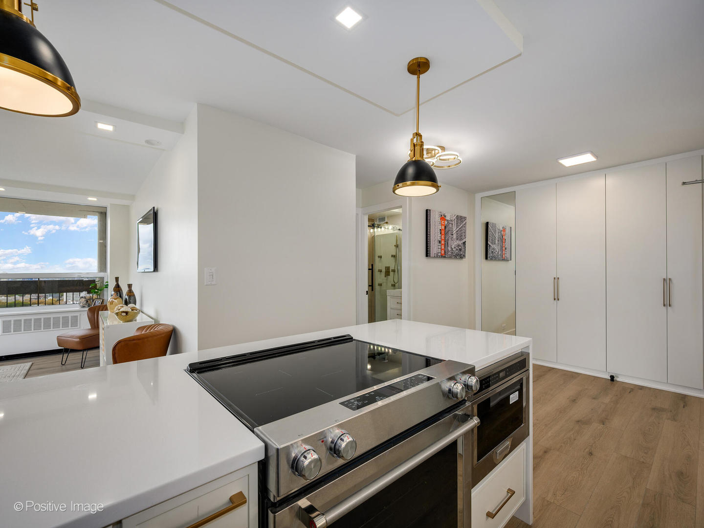 Presenting a very impressive brand new, high floor, corner balcony, two bedroom unit with stunning finishes throughout – Be the first to live in this gut renovated unit ideally located between Old Town & Gold Coast. This unit has wrap around windows with south and west exposures that provide abundant natural light with stunning unobstructed views of the Chicago Skyline and panoramic across the city. Enjoy the view with a lake breeze while lounging/grilling on your large private balcony. The unit has been meticulously gut rehabbed and is very well appointed with top quality and tasteful finishes- The open kitchen has custom white slim shaker cabinets, gold accented hardware and fixtures, full marble backsplash, under-cabinet LED lighting, quartz counters & peninsula with breakfast bar and waterfall edge, designer black/gold pendants. Top of the line appliances including built-in cabinet panel dishwasher, french-door refrigerator, slide-in range, microwave drawer. Bathroom is fully renovated with a walk-in shower w/ sliding glass door, gold/black accented hardware/fixtures, finished with contemporary tiles. There is a large primary bedroom with desk/sitting area, professionally organized walk-in closet and separate closet, new recessed lighting and additional built-in shelving. The second bedroom has skyline views, fits a queen bed, has recessed lighting, built-in closet, separate a/c, it offers many options as a guest bedroom or a large home office for private Zoom calls. Throughout the unit there are wide-plank warm wood color floors, a specialized paint used with air sanitizing technology. There are abundant closets, all are professionally organized. All new electrical and plumbing. Low monthly assessment includes heat, Direct TV (200+ channels) and internet service (1GB), everything except electricity. Dickinson House is a well run building with good reserves, many recent major updates completed including new elevators and renovated hallways. No upcoming projects. Great amenities- Sandburg Village has 2 Olympic size outdoor heated swimming pools, tennis courts (& pickle ball), landscaped courtyards. The building has doorman, rooftop deck, additional storage (provided with unit), bike room, parking garage (rental). Convenient for transportation – 1 block to train/subway, buses, Lake Shore Dr, bike path. Located close to Old Town, downtown, Lincoln Park. Enjoy all attractions of the neighborhood – restaurants, nightlife, shopping, new Jewel, Lakefront trail, beach, parks. Onsite garage parking (currently a waitlist). Pets allowed.