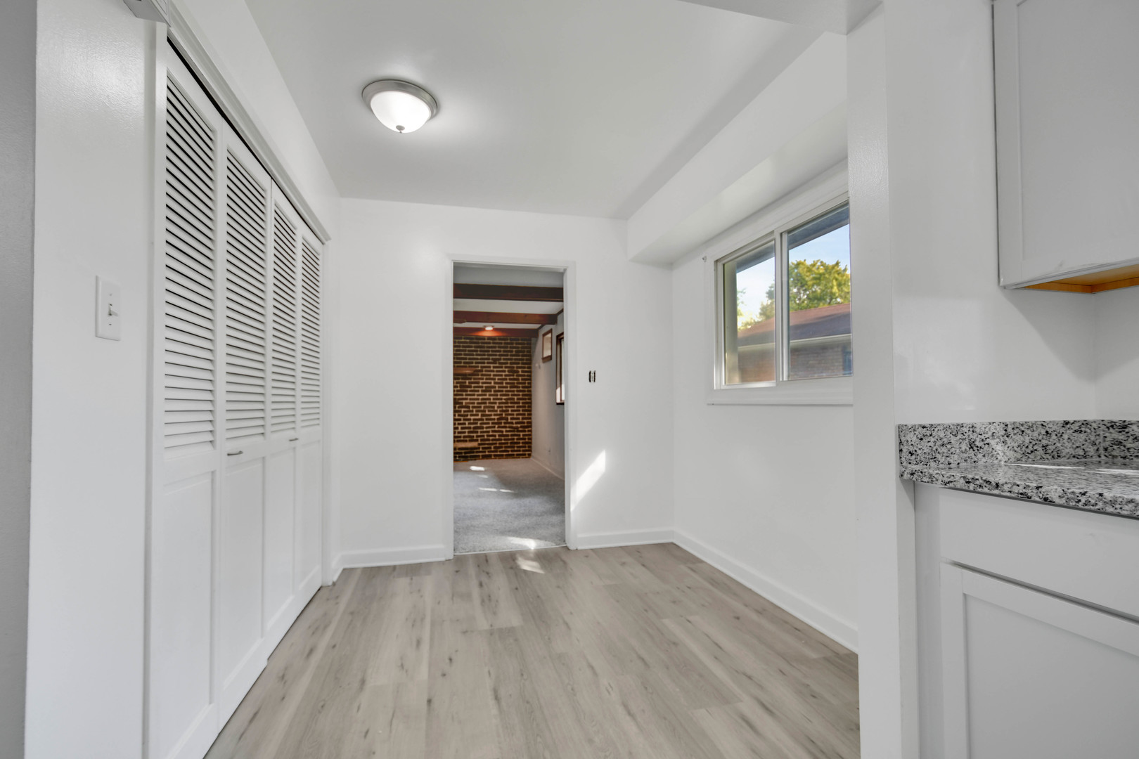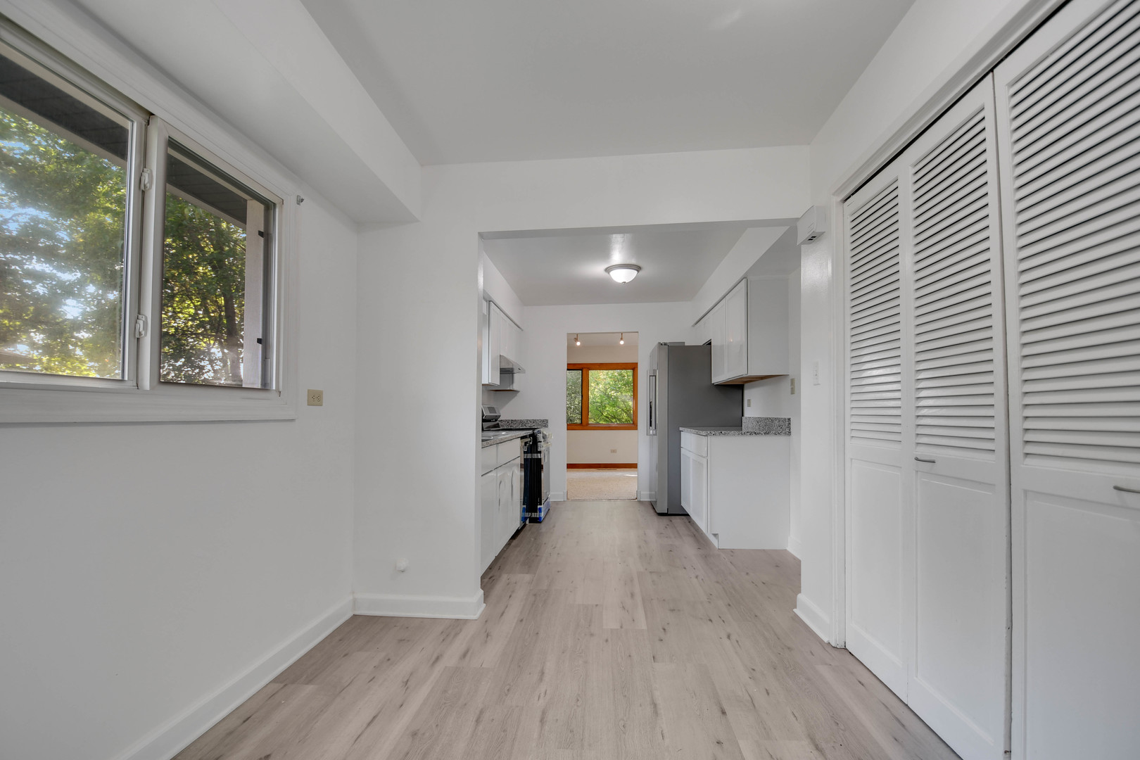 Are you searching for a move-in ready home that offers a fantastic floor plan for relaxing, entertaining-both indoors and out-or simply everyday living? This nicely remodeled, spacious 1,756 square foot ranch complete with three bedrooms and two bathrooms, including a private master bath delivers on all fronts. Inside, you’re greeted by a large, welcoming foyer with new wood-look vinyl plank flooring that opens into a spacious combined living and dining area with brand-new carpeting that continues throughout the home. The bright, all-new kitchen features modern white cabinets, quality granite countertops, brand-new stainless steel appliances, and trendy light-ash-wood-look vinyl plank flooring. A separate family room with a cozy fireplace and character-rich beamed ceiling provides the perfect spot for lounging. Step out back to a summer-ready covered concrete patio that overlooks a generous fenced yard, with a gate offering direct access to Winnebago Park. Plus, you’re just a hop, skip, and a jump from Michelle Obama School, Central Park, and the Aqua Center. he property also features a side drive leading to a two-car garage, along with a newer roof and leaf-guard gutters for low exterior maintenance. Schedule your easy viewing and make us an offer the seller can’t refuse!