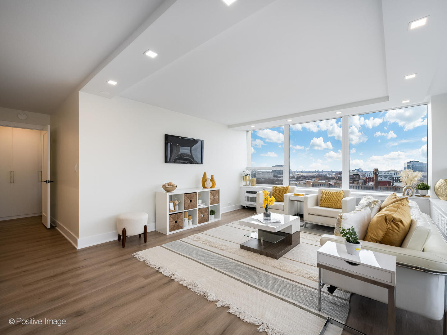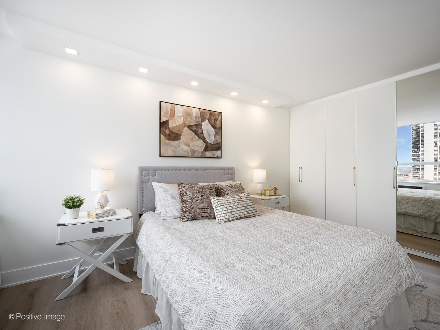 Presenting this stunning two bedroom two bathroom corner unit with large balcony on the 12th floor of Ciummings House in Sandburg Village.Ideally located between Gold Coast and Old Town. This is a brand new gut renovation with exquisite standards of workmanship and finishes. Be the first to live in this unit with a new open floor-plan that takes advantage of the spectacular views across the city from all angles. Central to the unit is the chef’s kitchen where you can enjoy cooking and entertaining while taking in the views. The custom cabinets are off-white slim shaker with gold accent hardware and under-cabinet lighting. Appliances are top of the line – French-door refrigerator, microwave drawer, slide-in range, Bosch dishwasher with cabinet panel. Quartz counters and a large island with waterfall ends and breakfast bar, designer black/gold pendants and recessed LED lights. The kitchen flows into the dining area which has a built-in credenza with additional cabinet storage. The open living space has abundant natural light from wraparound windows. There is new built-in recessed lighting. The large balcony has sliding doors from the living room to provide the perfect outdoor extension of the space. Enjoy spectacular wide open views of the while relaxing in a cool lake breeze. There are two split bedrooms that are both very spacious and have professionally organized closets with automated lighting, built-in recessed lighting over the beds. Each has a full bathroom. The primary suite has an ensuite bathroom with walk-in shower that has sliding glass doors, black/gold accent hardware & fixtures, Toto toilet, white vanity cabinet with quartz counter, finished with contemporary tiling. The 2nd bathroom has bathtub. There is wide plank natural wood color flooring throughout the unit and specialized paint used with air sanitizing technology. New electrical, plumbing, A/C units. Abundant closet space that is all professionally organized. A separate storage cage is included in the building. Cummings House is a well run building with good reserves, many recent major updates completed including new elevators and renovated hallways. There’s a rooftop sun deck, 24 hour door staff, maintenance & management are onsite. Monthly assessment includes heat, TV cable and high speed (1GB) internet service (everything except electricity). Sandburg Village amenities include 2 outdoor pools & sundecks, tennis & pickle ball courts (some additional fees), hospitality rooms. The landscaped courtyards, play lot, commercial facilities provide a welcoming community environment. Convenient for transportation – 1 block to train/subway, buses at door, access to Lake Shore Dr, bike path. Located in Gold Coast / Old Town, close to downtown, Lincoln Park. Enjoy all attractions of the neighborhood – restaurants, nightlife, shopping, Jewel, Lakefront trail, beach, parks. Garage parking currently has a waitlist. Pets allowed.