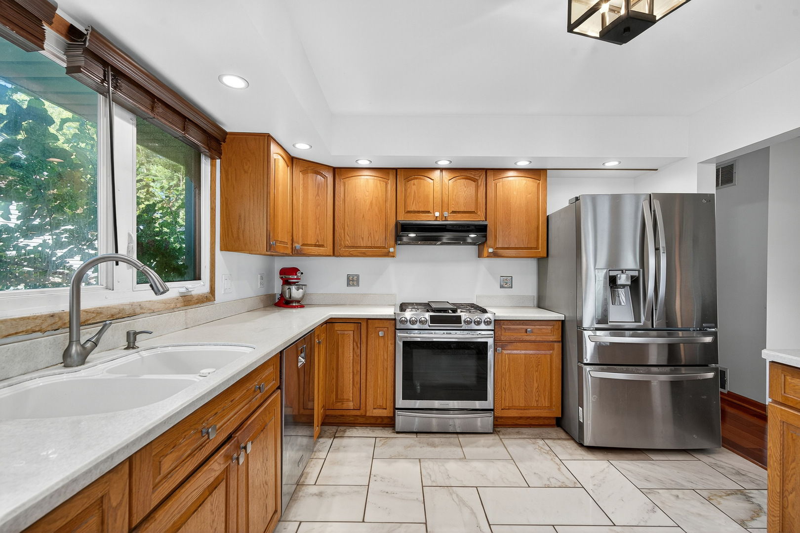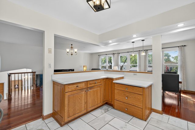Great opportunity in Hoffman Estates’ High Point subdivision with this outstanding raised ranch! With large English windows on the lower level, the house functions more like a 2-story property, including walk-out sliders in the lower level family room. Large entryway with marble floors provides easy, open access to both the first floor and lower level, also connecting the oversized 2-car garage with added storage. Recently painted, this home is bright and inviting with open living, dining and kitchen spaces on the first floor. Stainless steel appliances and hardtops make the kitchen the ideal work environment. Three bedrooms and two full baths round out the top floor. There are two more bedrooms tucked away from the sprawling family room huge windows & fireplace downstairs. Newer windows are showcased throughout. The lower-level half bath can easily expand to full. The fenced backyard is complete with a detached shed & expansive rebuilt two-tier deck that is recently refinished & brilliant for entertaining.