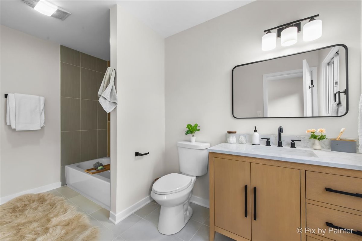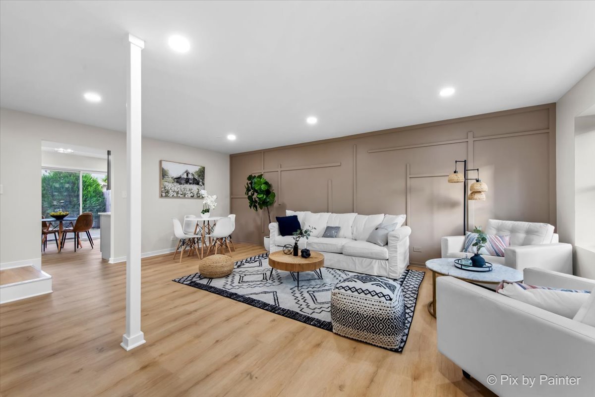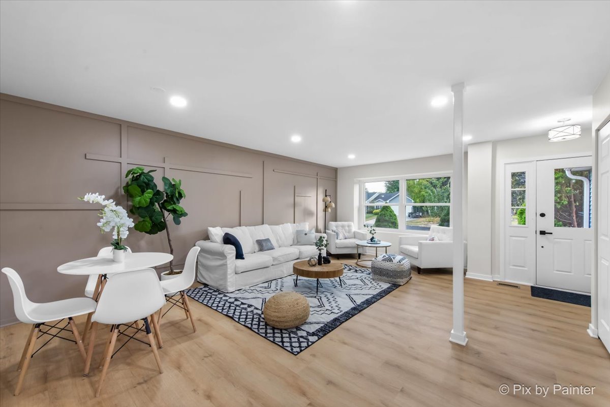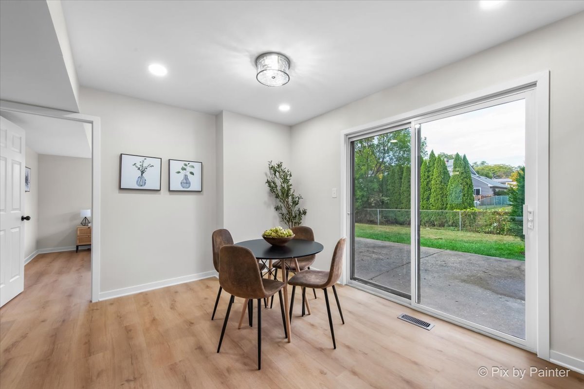 Beautifully updated and rarely available 4 bed, 1.1 bath end unit duplex – with no monthly association! Open concept main level with a fully renovated kitchen with new cabinetry, quartz counters, ss appliances, custom tiled backsplash and new LVP flooring that extends throughout the main level. Sliders off the kitchen lead to a large fully fenced yard with private patio that’s perfect for family gatherings, pets or outdoor entertaining. Spacious living room with custom feature wall and separate dining area. Upstairs are 3 sizeable bedrooms including a spacious primary bedroom with a stunning feature wall and dual closets, a renovated full bath with walk-in shower and conveniently located 2nd level laundry. Attached garage and ample driveway parking. All new cabinets/vanities, appliances, flooring, lighting and paint throughout. Tucked into a quiet subdivision yet just minutes to shopping, dining, schools, parks – and a quick commute to I90 and the Metra. This move-in ready home offers style, function and value at an affordable price!