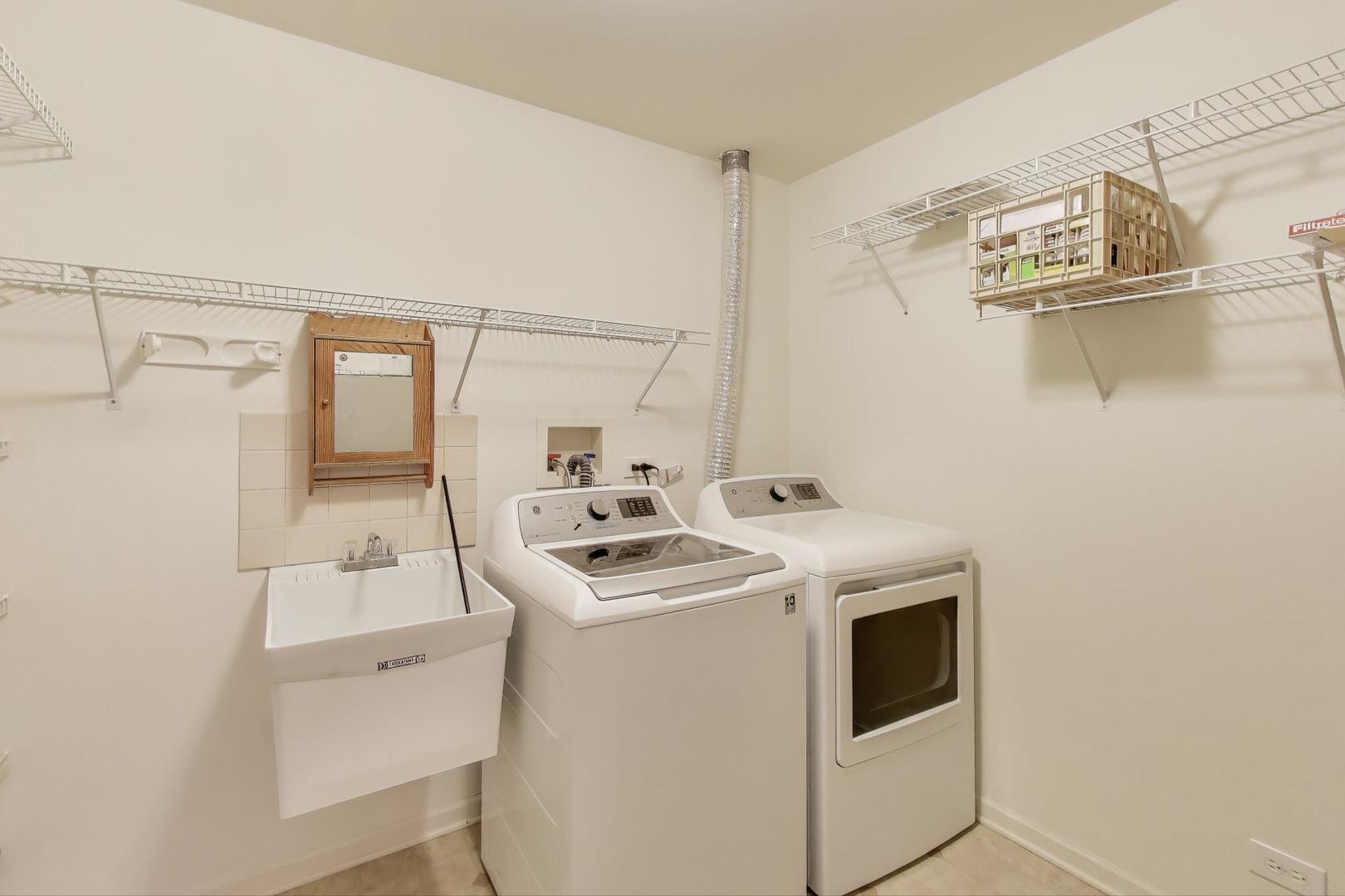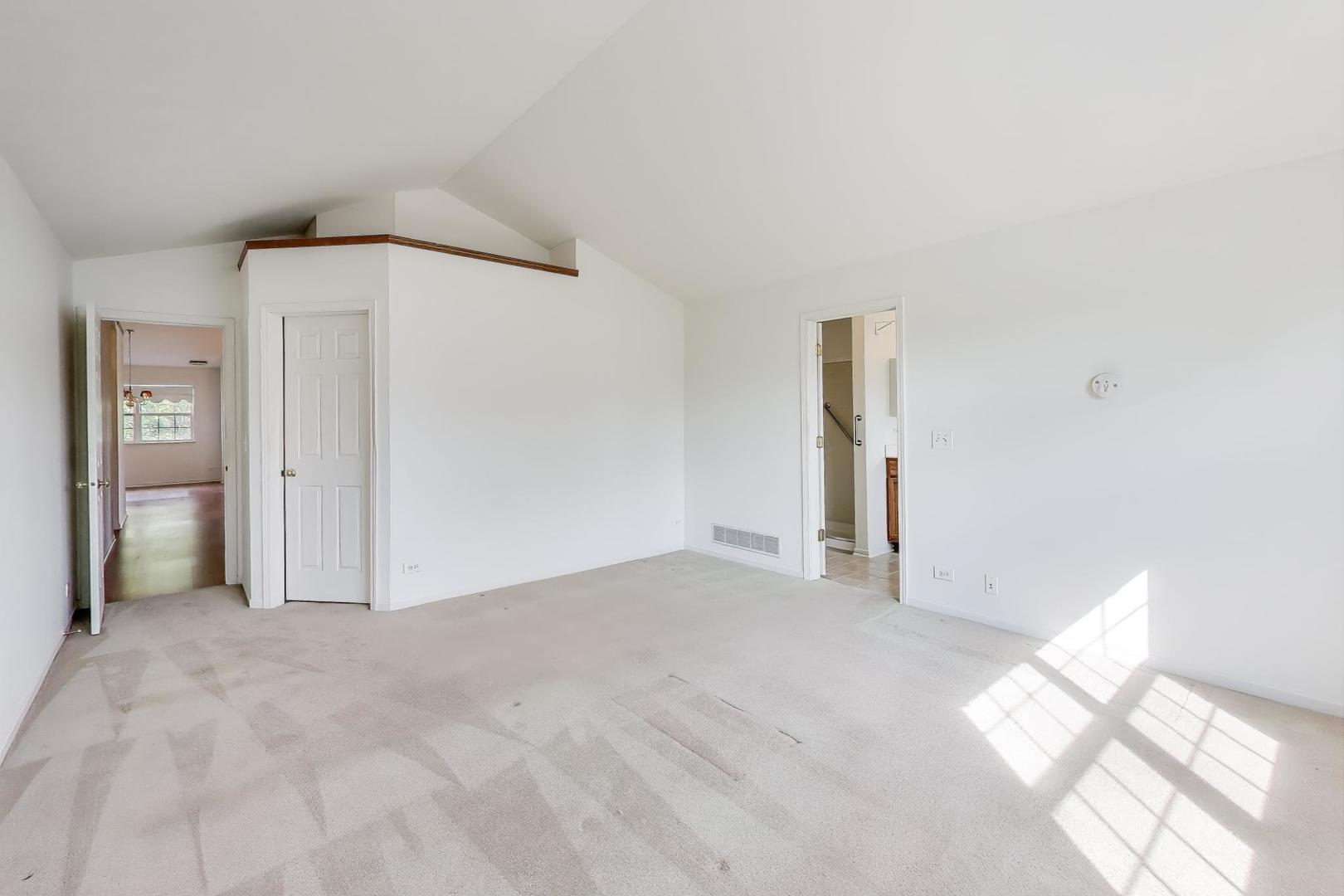 Welcome to this spacious and inviting townhome nestled in the highly desirable, and rarely available, Georgetown neighborhood, perfectly located with convenient access to Randall Road and nearby shopping, dining, and parks. Step inside to dramatic cathedral ceilings that create an open, airy feel. The open-concept living and dining areas flow seamlessly into an eat-in kitchen, perfect for everyday living and entertaining. Relax by the cozy fireplace in the family room or step through the sliding glass doors to your private balcony retreat. This home features fresh neutral paint, Corian kitchen countertops, wood laminate flooring with carpeted rooms. Thoughtfully maintained with newer appliances (Water Heater – 2021, GE washer/dryer, Whirlpool SS stove & refrigerator) and an oversized laundry/utility room offering extra storage and convenience. Estate sale, being sold as-is.