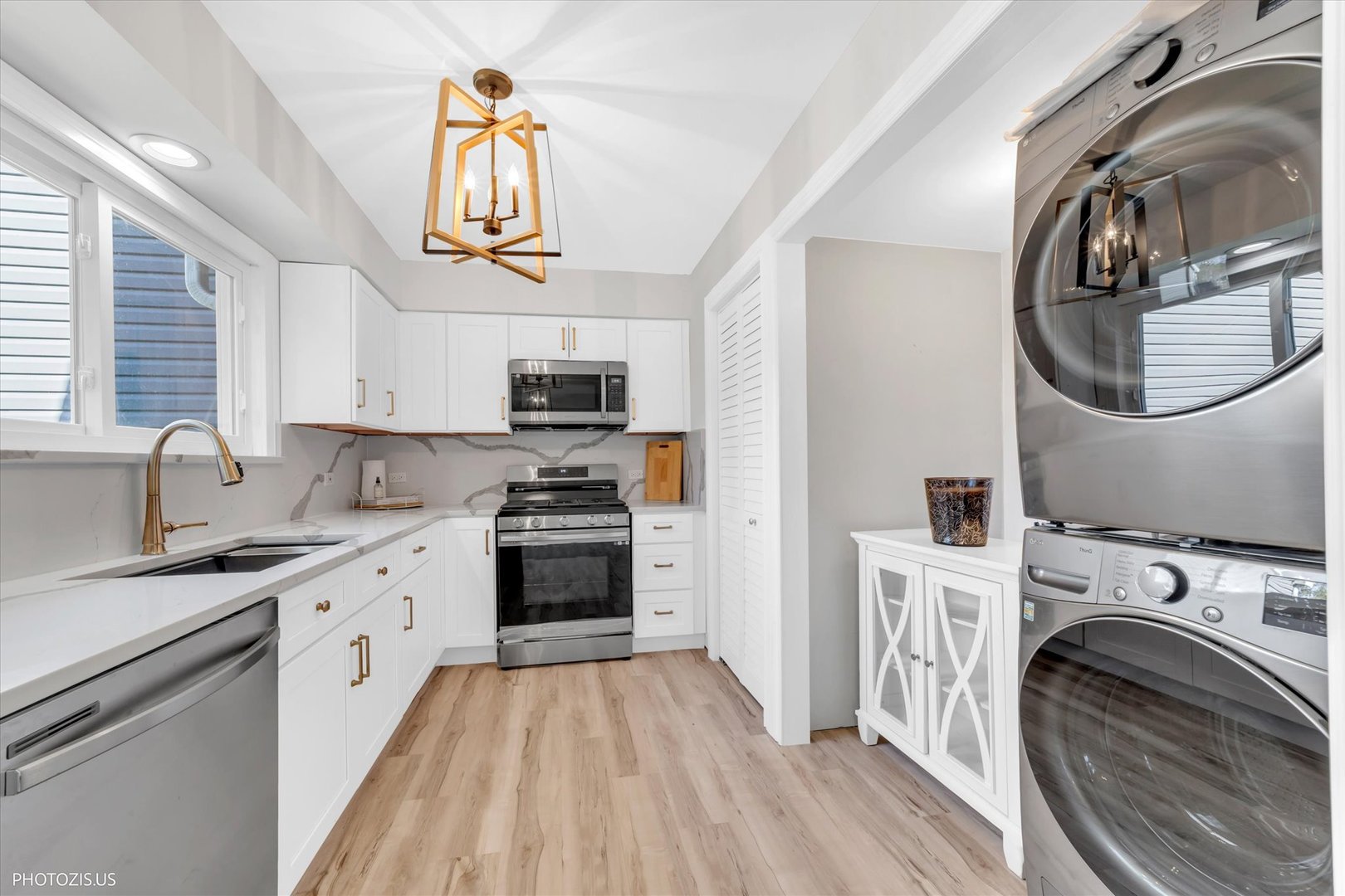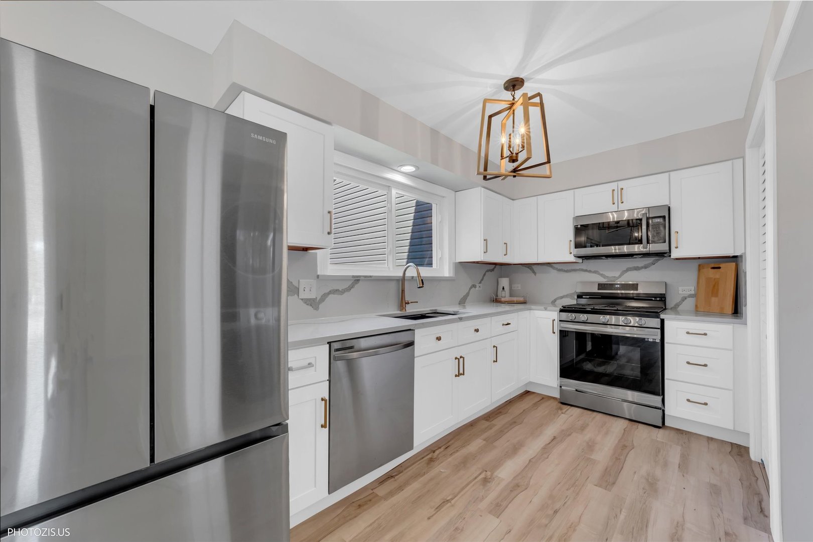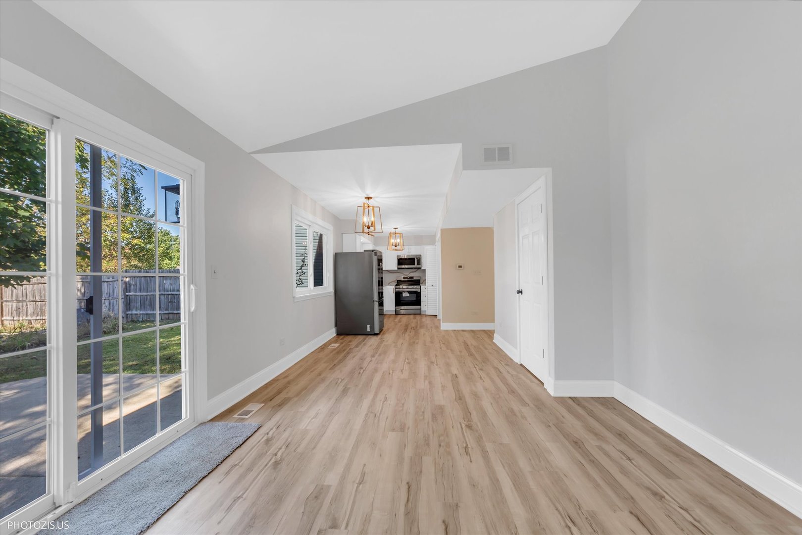 Beautifully remodeled duplex in Elgin – and best of all, no HOA fees! Move-in ready and completely updated from top to bottom. This bright and modern home features 3 bedrooms and 1.5 bathrooms, a brand-new kitchen with quartz countertops, new cabinets, and stainless steel appliances. Both bathrooms have been tastefully renovated with contemporary finishes. Additional major updates include a new roof, windows, siding, driveway, garage door, doors throughout the home, and new flooring. Spacious backyard offers plenty of room to relax or entertain. Enjoy the comfort of a fully remodeled home and the freedom of no monthly HOA dues – nothing to do but move in and enjoy!