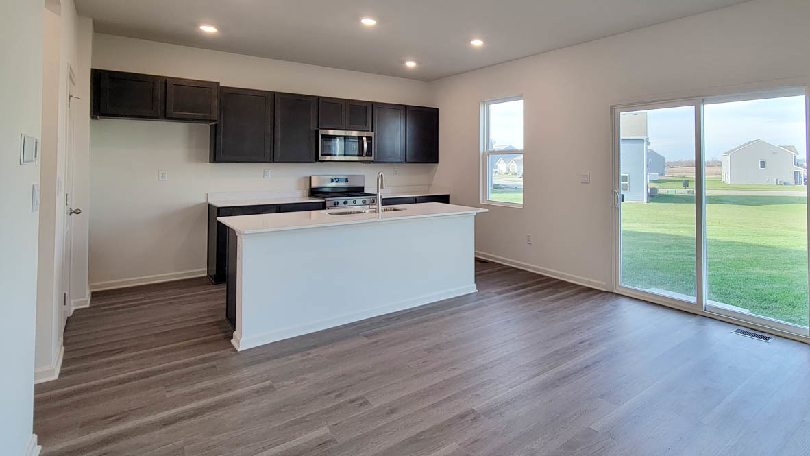 Find yourself at 13743 South Palmetto Drive in Plainfield, IL a beautiful new home in our Playa Vista community. This home is ready for a quick move-in! This homesite includes a front porch and a fully sodded yard. This Bellamy floor plan offers over 2,051 square feet of living space with a flex room, 4 bedrooms, 2.5 baths and a full basement. Enjoy this home’s open concept great room and kitchen which gives you the perfect space for entertaining friends and family. Your kitchen features designer cabinetry with quartz countertops and pantry. Walking upstairs enjoy your private get away with your large primary bedroom on its own side of the second floor with a deluxe bathroom containing a raised dual quartz vanity and walk-in closet. Enjoy the convenience of a second-floor walk-in laundry room and all secondary bedrooms upstairs with a full second bath and linen closet. Luxury vinyl plank flooring throughout the main level living space, bathrooms, and laundry. Impressive innovative ERV furnace system and tankless water heater round out the amazing features this home has to offer! Playa Vista is conveniently located just minutes to the Route 59 shopping district, Ridge Rd., and I-55. Downtown Plainfield is the place to be, with a variety of restaurants and boutiques, seasonal festivals, and a summer farmer’s market, open from June to September. Residents will attend Oswego Community Unit School District 308. All Chicago homes include our America’s Smart Home Technology, featuring a smart video doorbell, smart Honeywell thermostat, smart door lock, Deako smart light switches and more. Photos are of actual home.