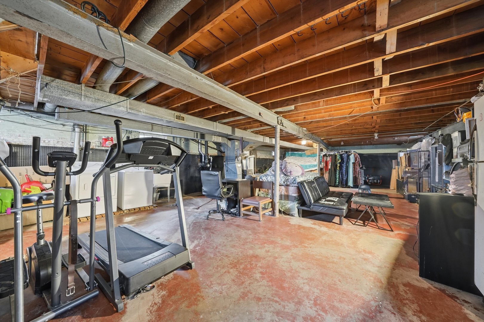 This charming three-bedroom, one-bath home offers a warm and inviting feel with hardwood floors flowing throughout the main living areas and bedrooms. The bathroom features tile flooring, while the bright eat-in kitchen provides a comfortable space for everyday meals and gatherings. Downstairs, an open basement offers ample storage, laundry facilities, and the potential to be finished for additional living space. Step outside to enjoy a private patio overlooking the backyard-perfect for relaxing, entertaining, or gardening. Quaint yet full of potential, this home combines classic character with practical living spaces.