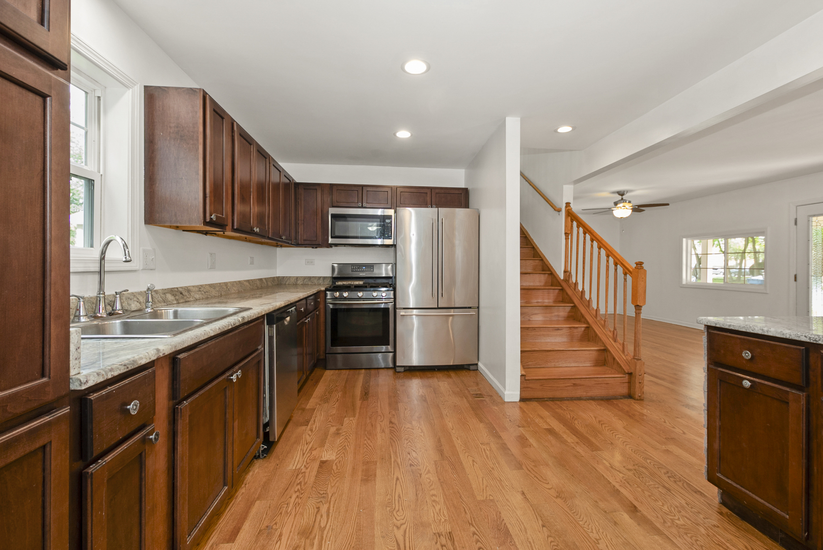 Welcome to your four bedroom two bath remodeled home. Imagine enjoying a morning coffee, an afternoon lemonade, or an evening beverage on your wraparound front porch equipped with a custom swing. The large tree lined backyard has an extra storage shed and a children’s Playhouse. Bring your own ideas to make this your very own oasis. This home has oak floors through out. There is a large master bedroom on the first floor with a patio door to its own deck. The large bathroom includes a custom vanity, separate shower and extra large tub. Upstairs there are 3 additional bedrooms. Storage is no issue in this home as bedroom 2 has a 6′ x 12′ closet, bedroom 3 has a 9′ x 6′ closet. Under the stairs is an additional 3′ x 9′ closet. The second floor has a separate loft area for a desk or sitting area. You don’t want to wait to see this home because it is a charmer.