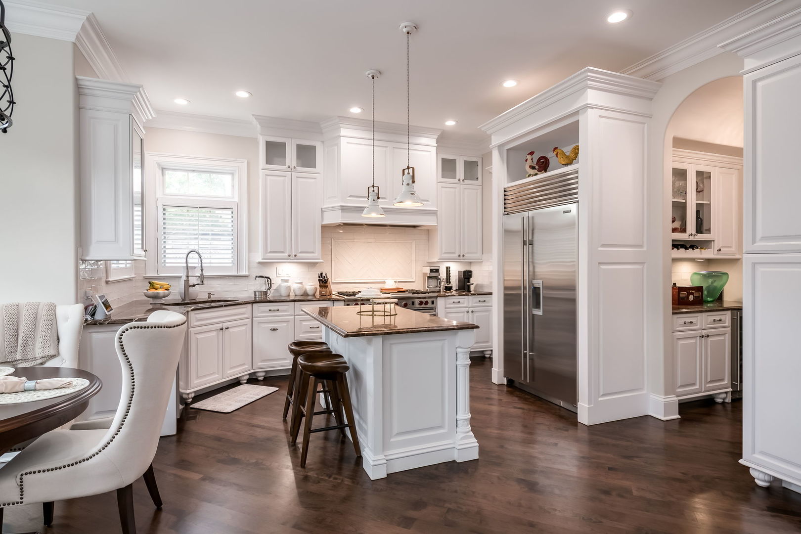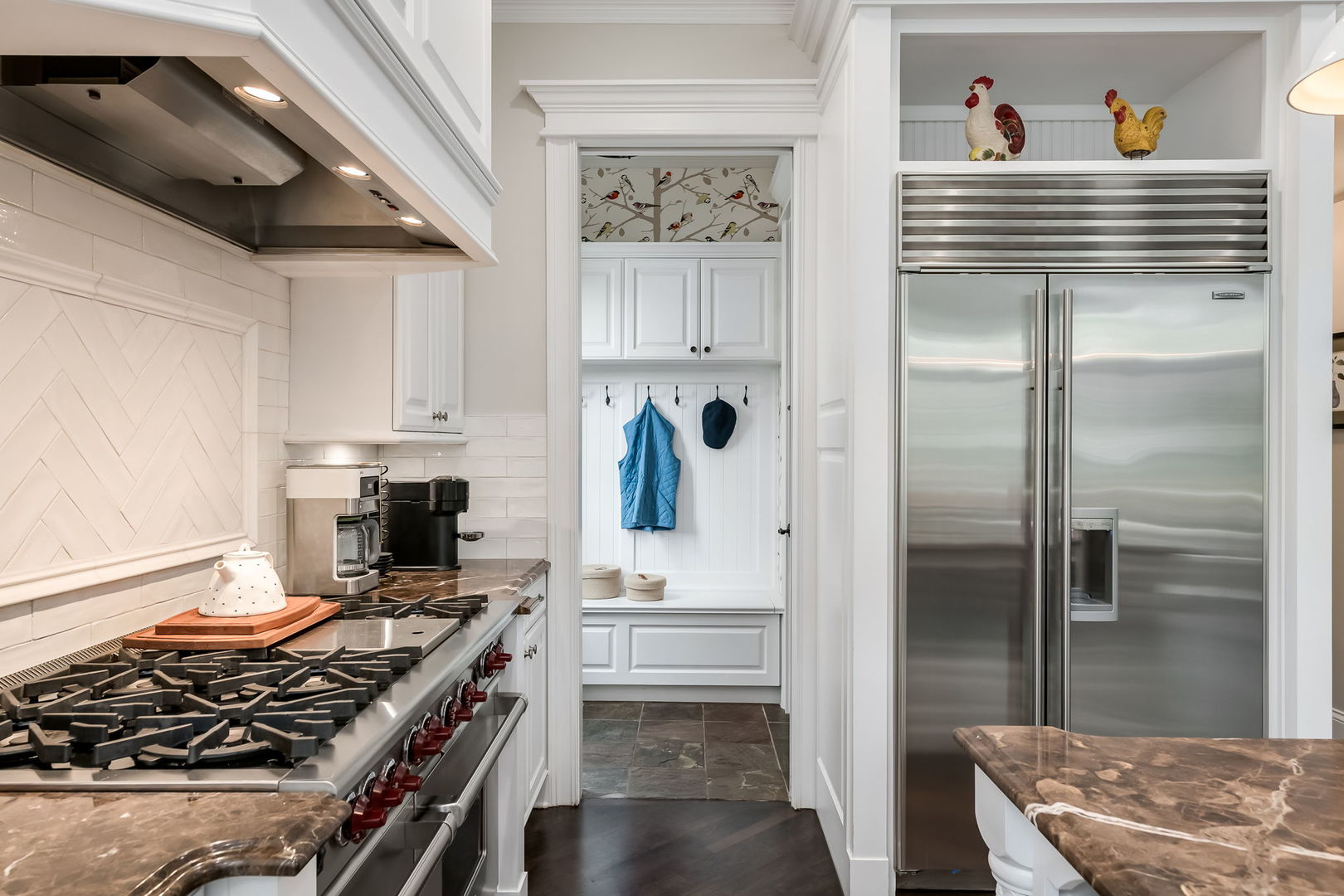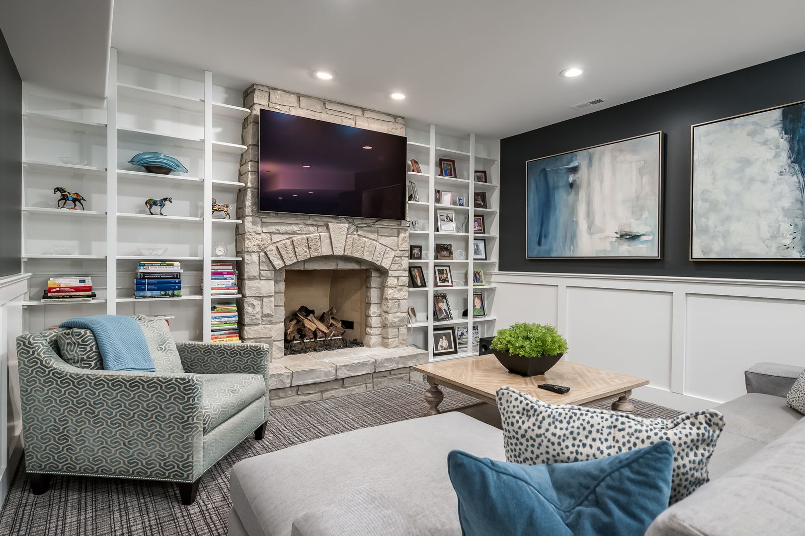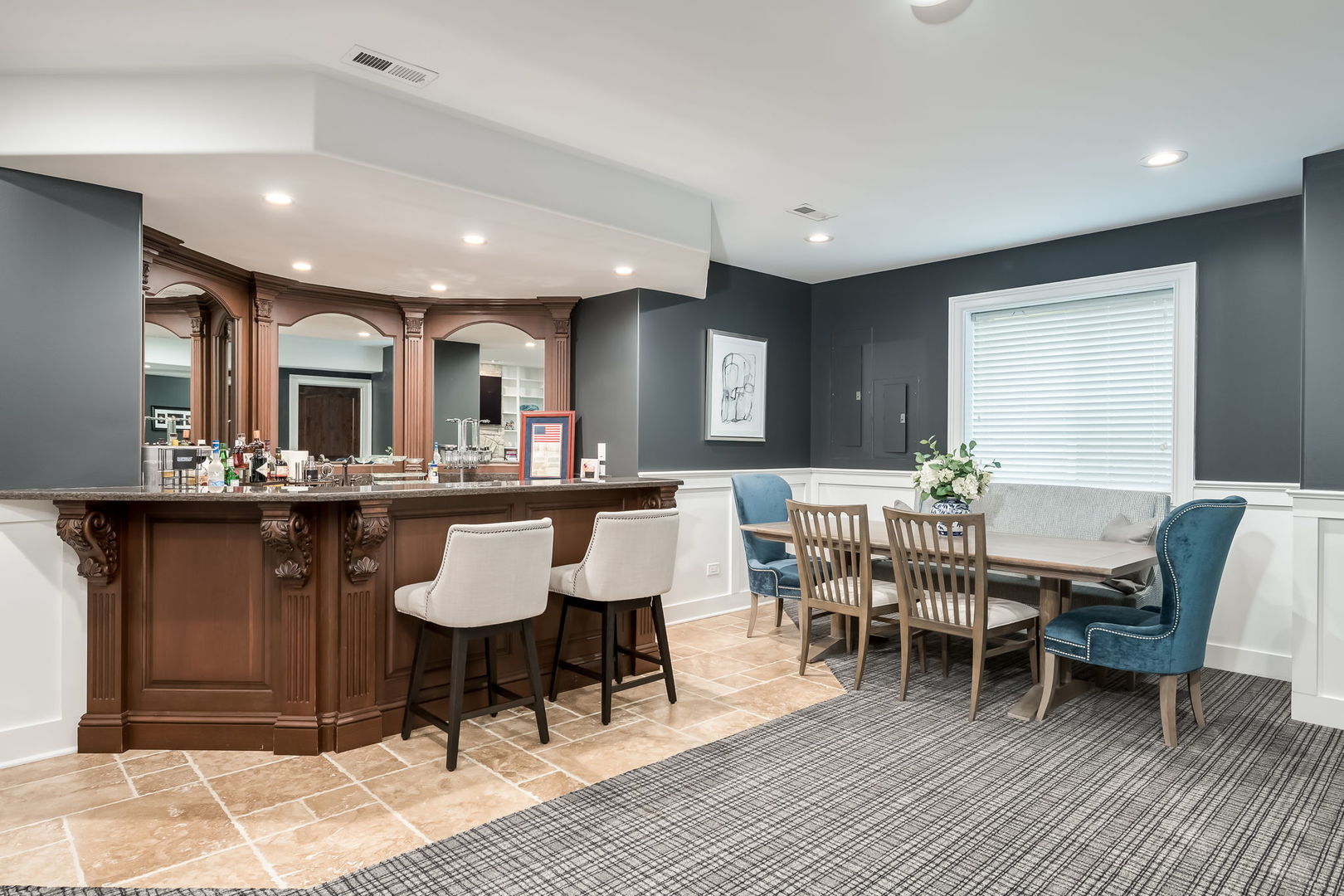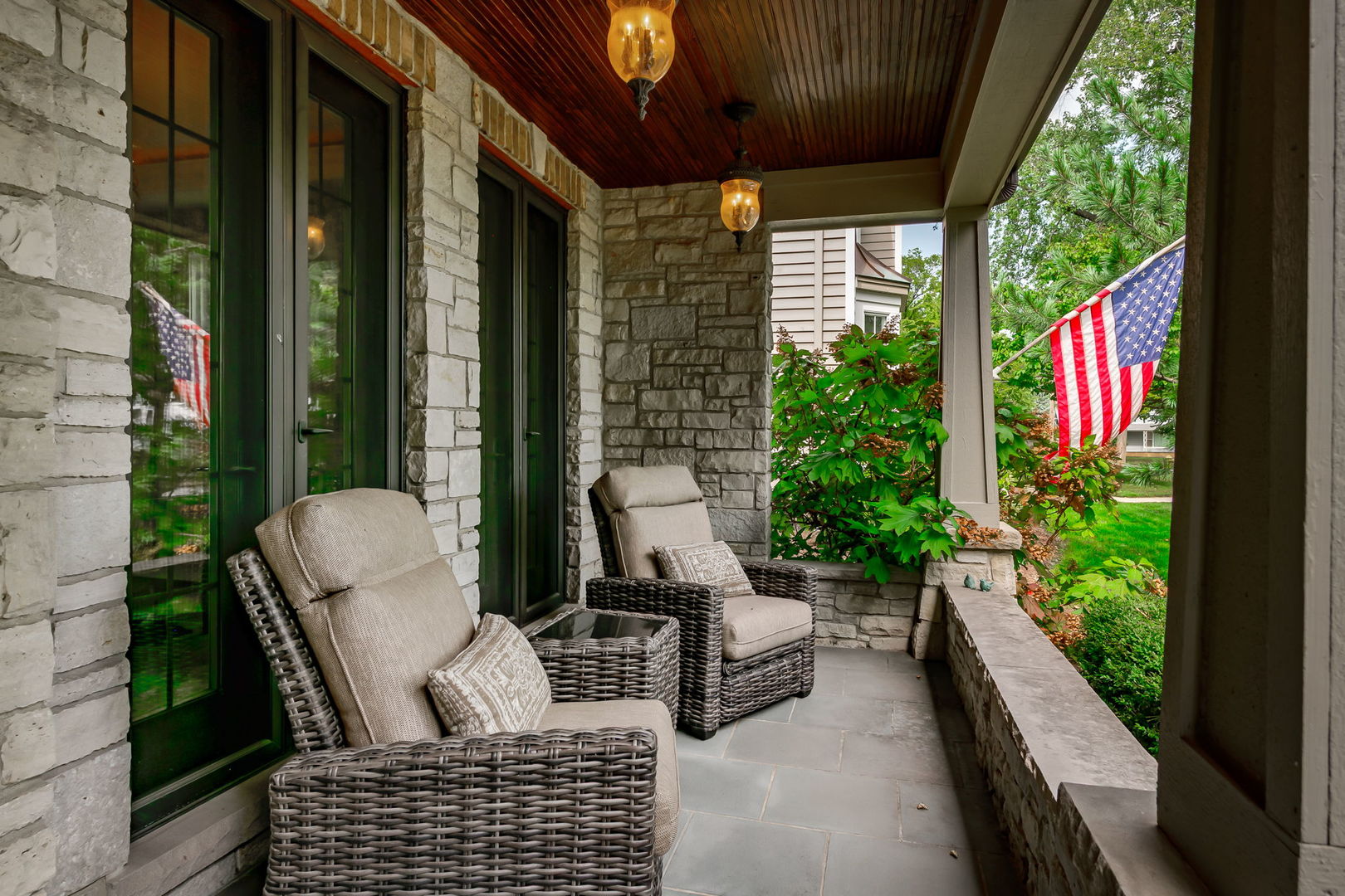Fall in love with this enchanting brick and stone English Tudor, where timeless elegance meets modern luxury. From the moment you arrive, you’ll be charmed by the beautifully landscaped yard and welcoming front porch-perfect for morning coffee and soaking in the neighborhood’s serene charm. Step inside to a thoughtfully curated interior featuring soaring ceilings, exquisite millwork, and impeccable finishes throughout. The main level boasts a separate formal dining room with French doors that open to a lovely front veranda, a cozy sitting room, and a designer powder room. The heart of the home is the modern white kitchen, outfitted with high-end Sub-Zero and Wolf stainless steel appliances, granite countertops, and a stylish backsplash. Nestled between the kitchen and dining room, a sleek butler’s pantry offers custom cabinetry, a mini wine fridge, and additional prep space. The sunlit family room is a true showstopper, showcasing a striking stone fireplace, wood beam coffered ceiling, and an effortless flow to the rest of the home-perfect for both everyday living and entertaining. Just off the kitchen, you’ll find a well-appointed mudroom with a custom bench, hall tree, and a pantry closet. Upstairs, the second level features a convenient laundry closet, four spacious bedrooms, and three full bathrooms, including a serene primary suite. The primary retreat impresses with a tray ceiling, spa-like bath featuring separate vanities, a soaking tub, large walk-in shower, and a generous walk-in closet. The second bedroom enjoys its own ensuite bath, while the third and fourth bedrooms share a Jack & Jill bath with dual vanities and a tub/shower combo. The third floor offers incredible versatility with a spacious flex room-ideal as a guest suite, private office, or playroom-complete with a full bath featuring a skylight and walk-in shower. The fully finished lower level is designed for both relaxation and recreation. Enjoy a cozy stone fireplace surrounded by custom built-ins, a stylish full bar, expansive rec and dining areas, a workout room, and a full secondary laundry room with utility sink, side-by-side washer/dryer, and custom cabinetry. Step outside and prepare to be wowed. The newly designed patio includes a gourmet outdoor kitchen with a built-in grilling station, beverage fridge, honed black granite countertops, deck lighting, fire pit and a motorized awning for added comfort. The fully fenced backyard offers privacy and tranquility on a quiet, tree-lined street. With four levels of beautifully finished living space, this exceptional home is a rare opportunity-offering the perfect blend of character, craftsmanship, and comfort. Don’t miss your chance to make it yours!