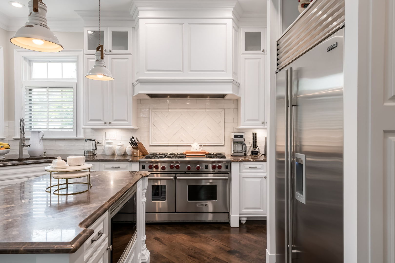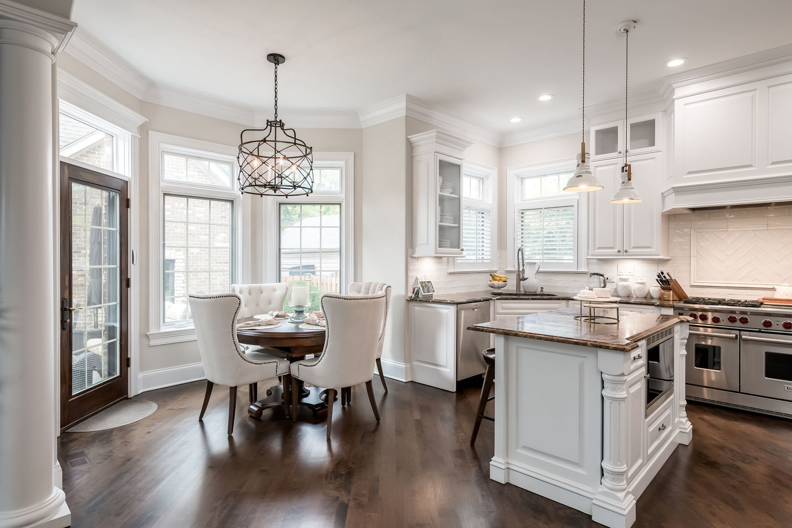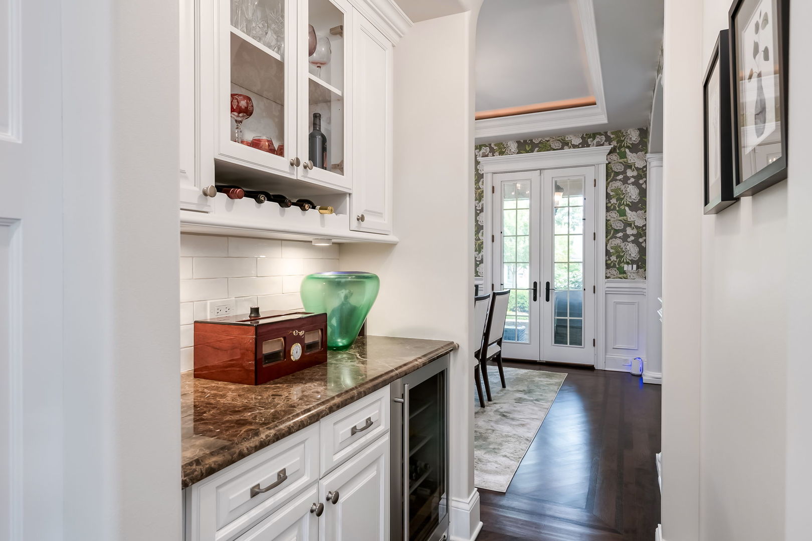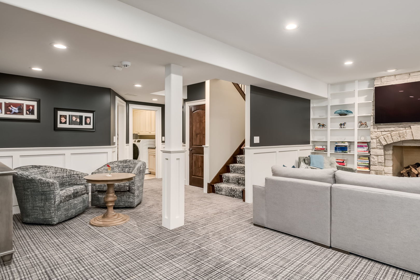 Fall in love with this enchanting brick and stone English Tudor, where timeless elegance meets modern luxury. From the moment you arrive, you’ll be charmed by the beautifully landscaped yard and welcoming front porch-perfect for morning coffee and soaking in the neighborhood’s serene charm. Step inside to a thoughtfully curated interior featuring soaring ceilings, exquisite millwork, and impeccable finishes throughout. The main level boasts a separate formal dining room with French doors that open to a lovely front veranda, a cozy sitting room, and a designer powder room. The heart of the home is the modern white kitchen, outfitted with high-end Sub-Zero and Wolf stainless steel appliances, granite countertops, and a stylish backsplash. Nestled between the kitchen and dining room, a sleek butler’s pantry offers custom cabinetry, a mini wine fridge, and additional prep space. The sunlit family room is a true showstopper, showcasing a striking stone fireplace, wood beam coffered ceiling, and an effortless flow to the rest of the home-perfect for both everyday living and entertaining. Just off the kitchen, you’ll find a well-appointed mudroom with a custom bench, hall tree, and a pantry closet. Upstairs, the second level features a convenient laundry closet, four spacious bedrooms, and three full bathrooms, including a serene primary suite. The primary retreat impresses with a tray ceiling, spa-like bath featuring separate vanities, a soaking tub, large walk-in shower, and a generous walk-in closet. The second bedroom enjoys its own ensuite bath, while the third and fourth bedrooms share a Jack & Jill bath with dual vanities and a tub/shower combo. The third floor offers incredible versatility with a spacious flex room-ideal as a guest suite, private office, or playroom-complete with a full bath featuring a skylight and walk-in shower. The fully finished lower level is designed for both relaxation and recreation. Enjoy a cozy stone fireplace surrounded by custom built-ins, a stylish full bar, expansive rec and dining areas, a workout room, and a full secondary laundry room with utility sink, side-by-side washer/dryer, and custom cabinetry. Step outside and prepare to be wowed. The newly designed patio includes a gourmet outdoor kitchen with a built-in grilling station, beverage fridge, honed black granite countertops, deck lighting, fire pit and a motorized awning for added comfort. The fully fenced backyard offers privacy and tranquility on a quiet, tree-lined street. With four levels of beautifully finished living space, this exceptional home is a rare opportunity-offering the perfect blend of character, craftsmanship, and comfort. Don’t miss your chance to make it yours!