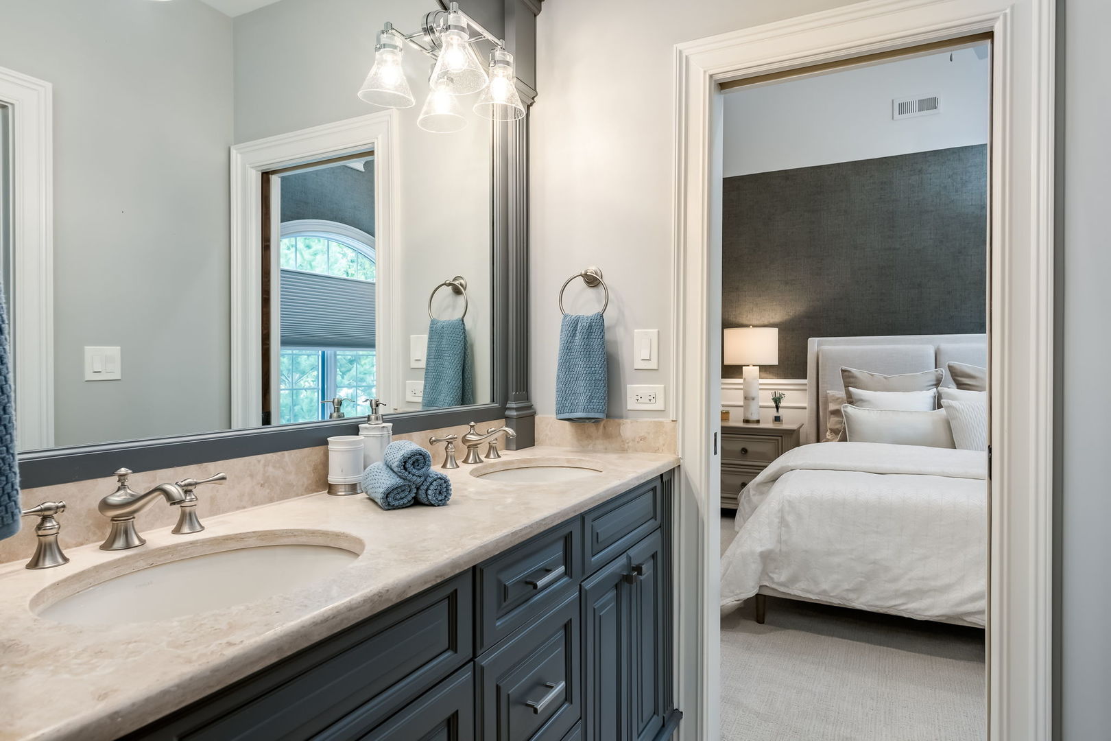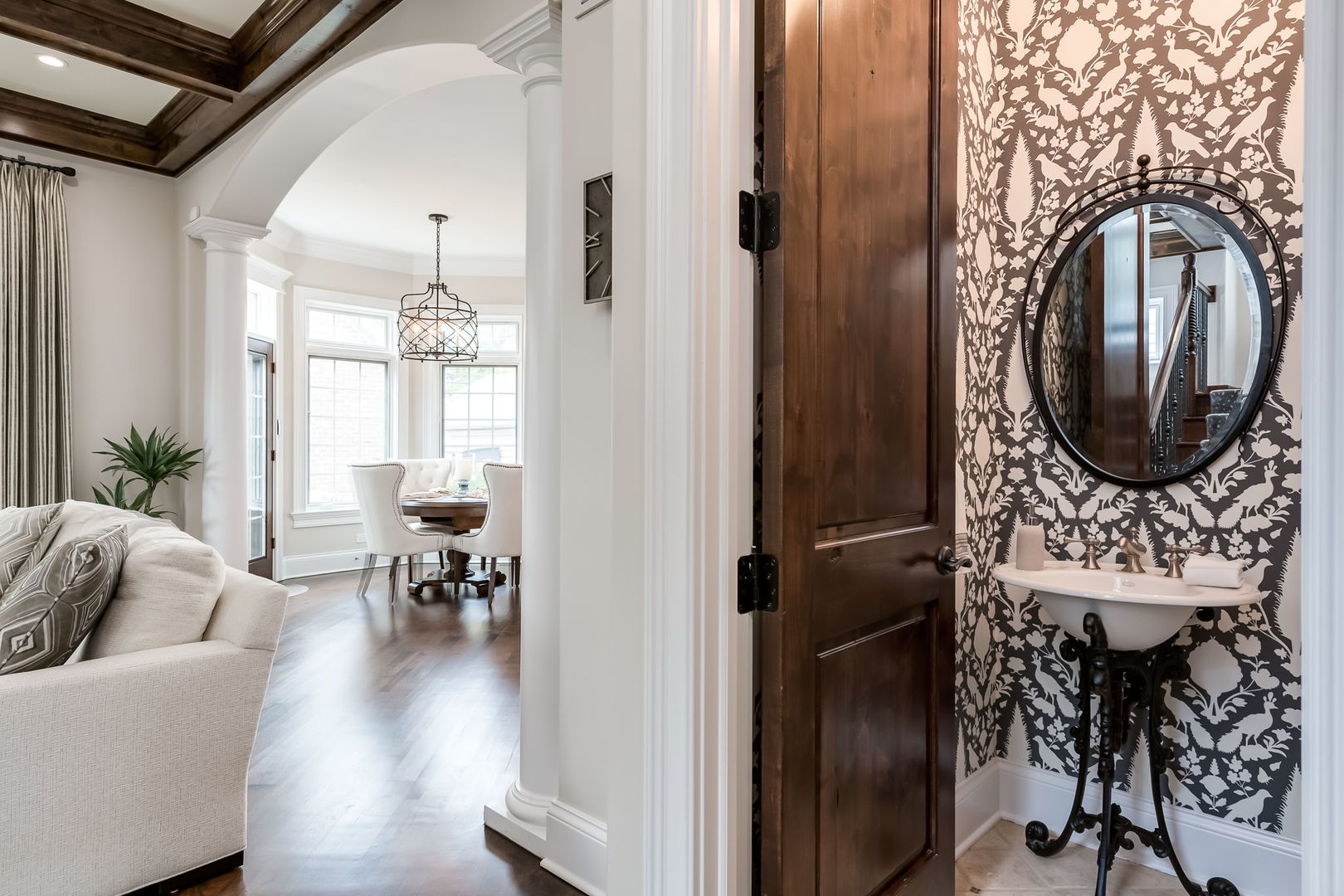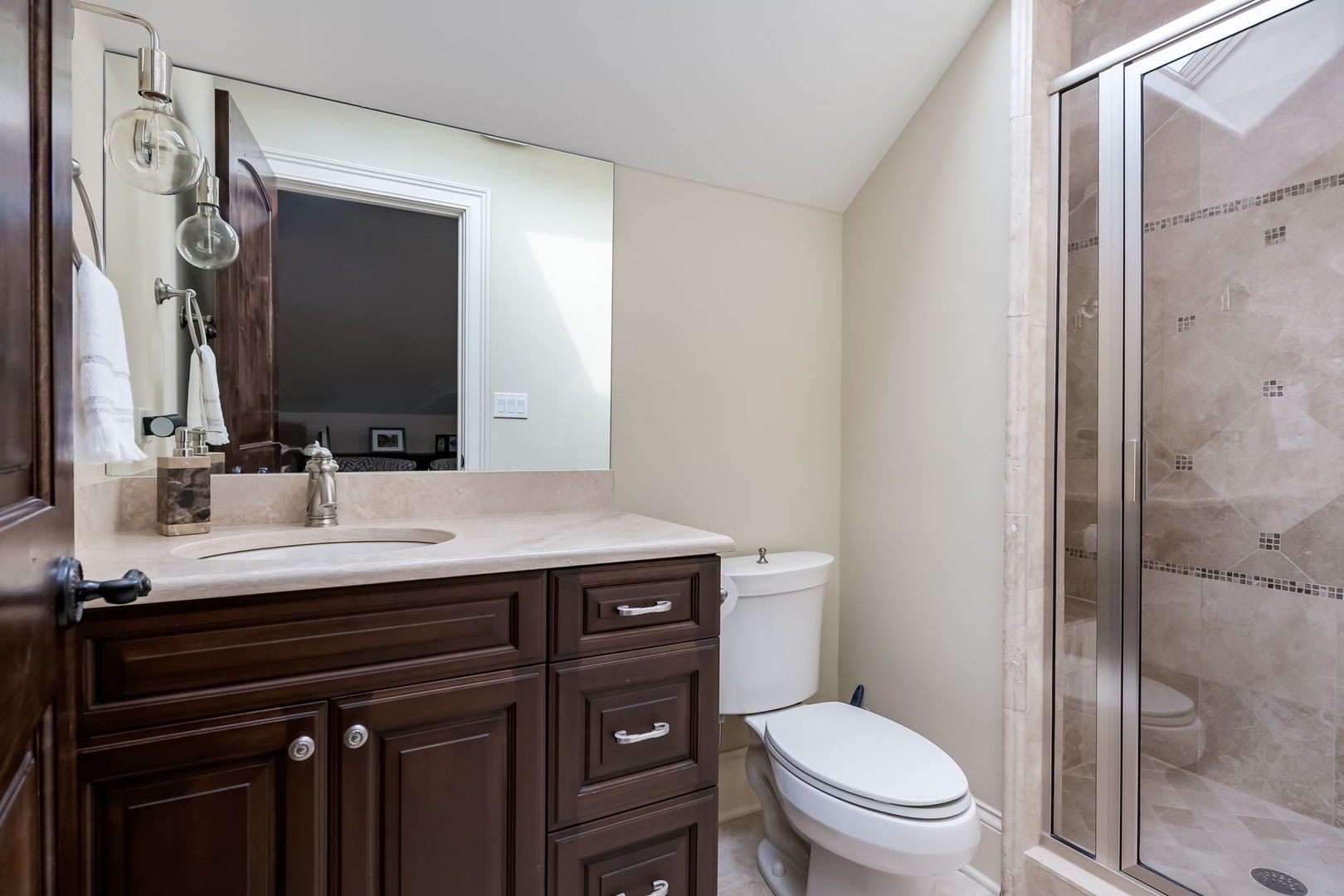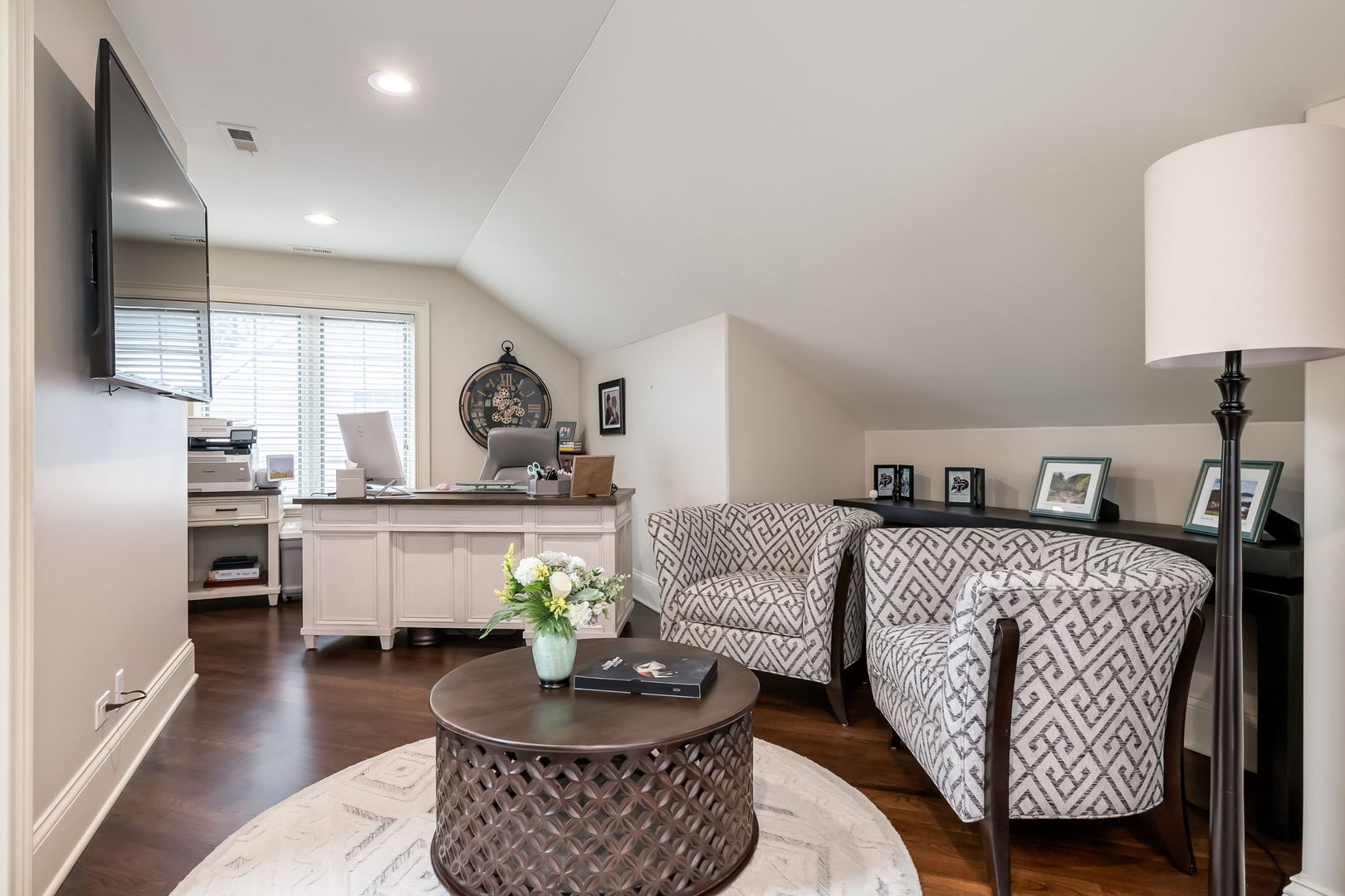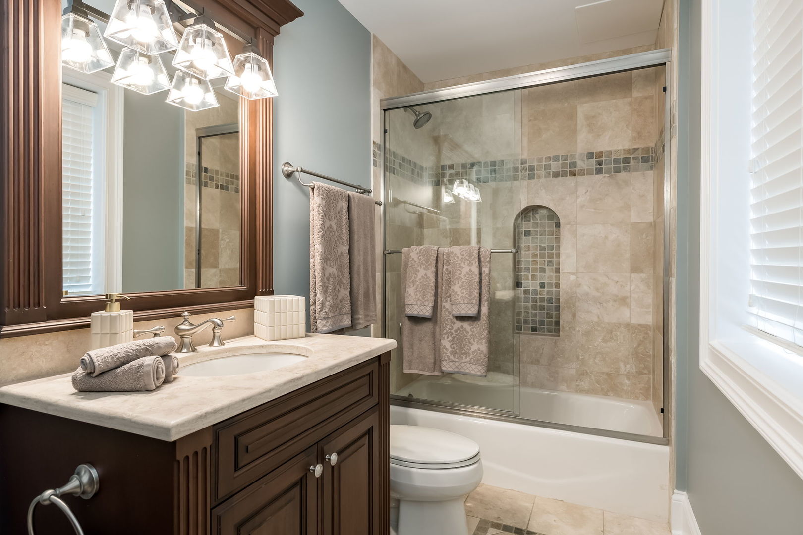 Fall in love with this enchanting brick and stone English Tudor, where timeless elegance meets modern luxury. From the moment you arrive, you’ll be charmed by the beautifully landscaped yard and welcoming front porch-perfect for morning coffee and soaking in the neighborhood’s serene charm. Step inside to a thoughtfully curated interior featuring soaring ceilings, exquisite millwork, and impeccable finishes throughout. The main level boasts a separate formal dining room with French doors that open to a lovely front veranda, a cozy sitting room, and a designer powder room. The heart of the home is the modern white kitchen, outfitted with high-end Sub-Zero and Wolf stainless steel appliances, granite countertops, and a stylish backsplash. Nestled between the kitchen and dining room, a sleek butler’s pantry offers custom cabinetry, a mini wine fridge, and additional prep space. The sunlit family room is a true showstopper, showcasing a striking stone fireplace, wood beam coffered ceiling, and an effortless flow to the rest of the home-perfect for both everyday living and entertaining. Just off the kitchen, you’ll find a well-appointed mudroom with a custom bench, hall tree, and a pantry closet. Upstairs, the second level features a convenient laundry closet, four spacious bedrooms, and three full bathrooms, including a serene primary suite. The primary retreat impresses with a tray ceiling, spa-like bath featuring separate vanities, a soaking tub, large walk-in shower, and a generous walk-in closet. The second bedroom enjoys its own ensuite bath, while the third and fourth bedrooms share a Jack & Jill bath with dual vanities and a tub/shower combo. The third floor offers incredible versatility with a spacious flex room-ideal as a guest suite, private office, or playroom-complete with a full bath featuring a skylight and walk-in shower. The fully finished lower level is designed for both relaxation and recreation. Enjoy a cozy stone fireplace surrounded by custom built-ins, a stylish full bar, expansive rec and dining areas, a workout room, and a full secondary laundry room with utility sink, side-by-side washer/dryer, and custom cabinetry. Step outside and prepare to be wowed. The newly designed patio includes a gourmet outdoor kitchen with a built-in grilling station, beverage fridge, honed black granite countertops, deck lighting, fire pit and a motorized awning for added comfort. The fully fenced backyard offers privacy and tranquility on a quiet, tree-lined street. With four levels of beautifully finished living space, this exceptional home is a rare opportunity-offering the perfect blend of character, craftsmanship, and comfort. Don’t miss your chance to make it yours!