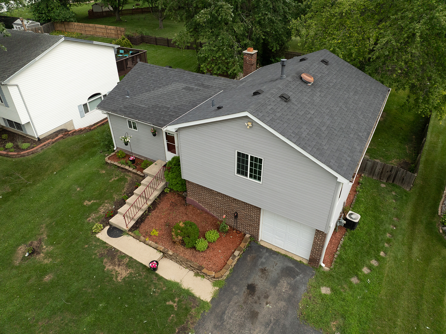 This spacious home offers incredible potential for buyers with vision. The main living areas are bright and welcoming, featuring an open layout, wood-burning fireplace, and skylight. While the kitchen and bathrooms are ready for your personal updates, the home’s strong layout and modest room sizes make it an ideal opportunity to customize to your taste. Three bedrooms and a full bath sit on the second level with new laminate flooring throughout. The lower level includes a bonus room (used as a bedroom) and a second full bath and a fully equipped bar-perfect for related living or a large family room with walkout access to the backyard, patio, and shed. Located close to parks, schools, Pelican Water Park, and major shopping. Important updates already completed include roof, siding, and gutters (2018), plus newer light fixtures and a 2022 washer/dryer.