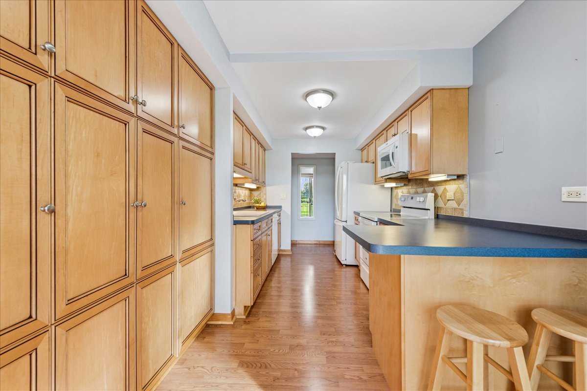 Fantastic Colony Country 1 bedroom condo with amazing views of the golf course. Spacious unit with 950 sf of living space. Foyer opens to dining room and living room with sliders to patio. Kitchen with glazed custom wood cabinetry, white appliances, full wall of cabinetry pantry space and breakfast bar. Bedroom has two walk in closets, vanity with sink and full bath with newly remodeled walk in shower. Move in ready and in pristine condition. Large patio perfect for enjoying the golf course views. Ideal location in building – close to front entry, laundry facilities and elevator to parking garage. Enclosed heated parking garage – Garage space is extra large and close to elevator – space #15. Storage space located on 2nd floor included as well. HOA has indoor and outdoor pools, clubhouse, exercise room and sauna. Don’t miss seeing this one!